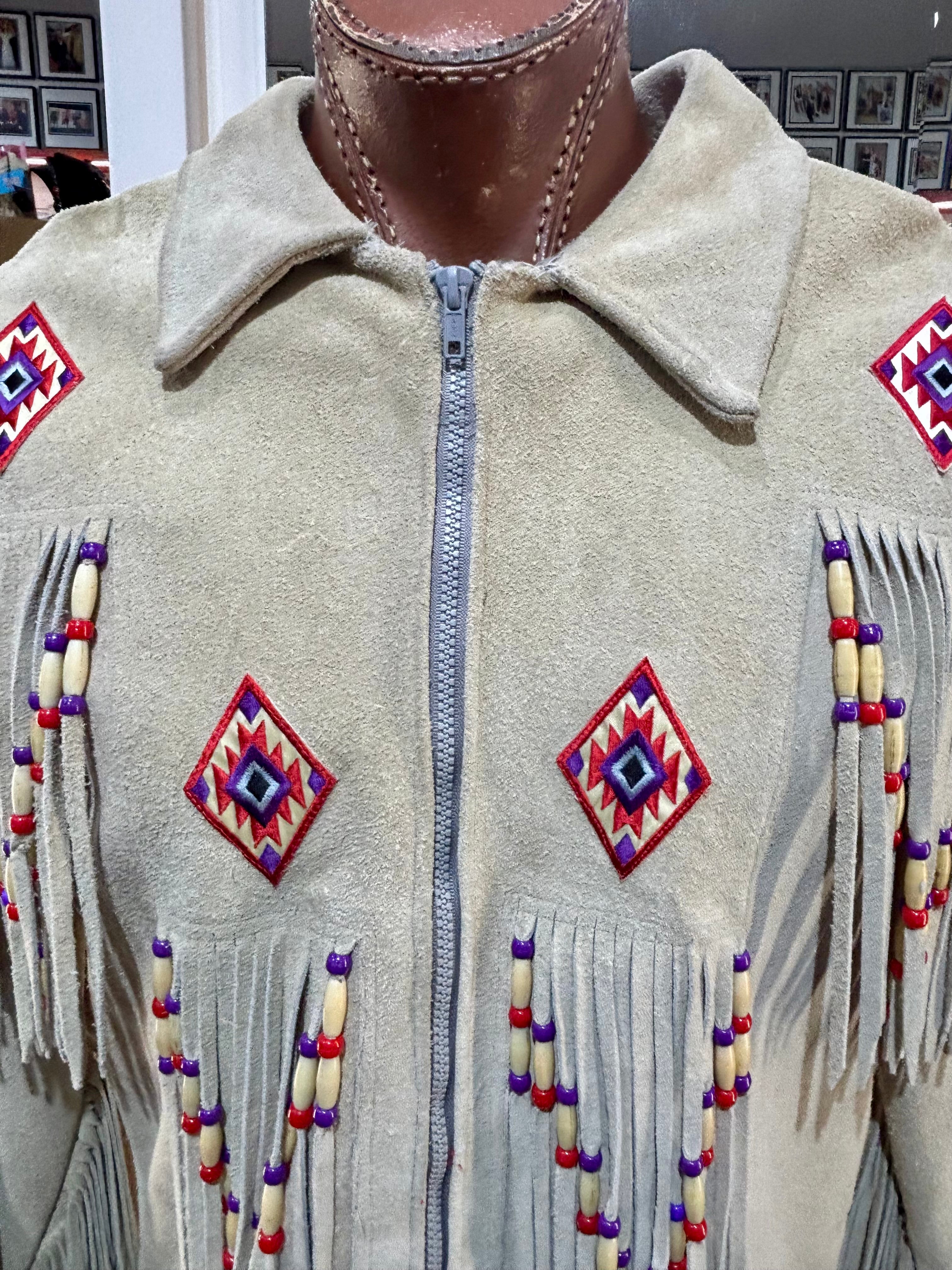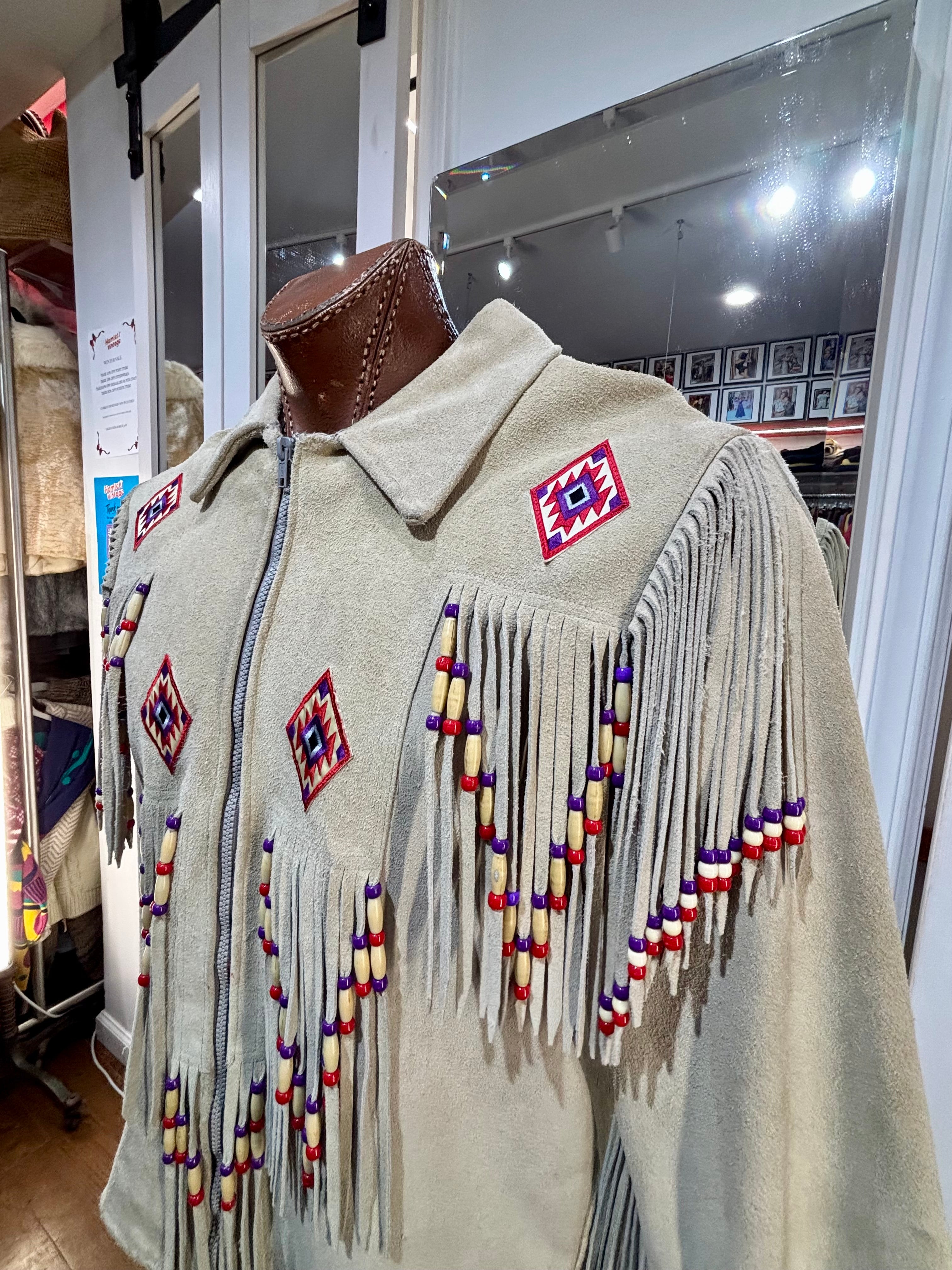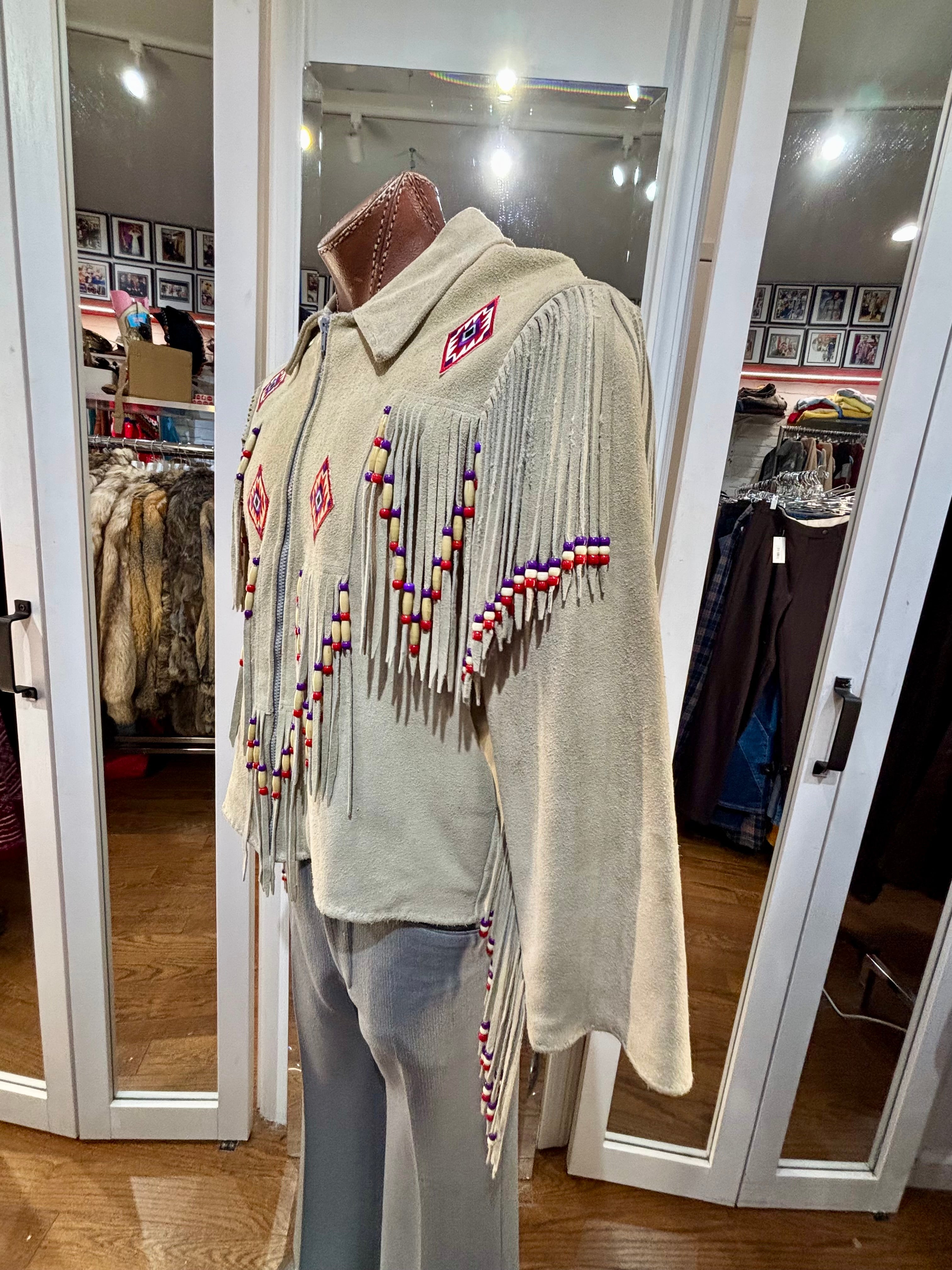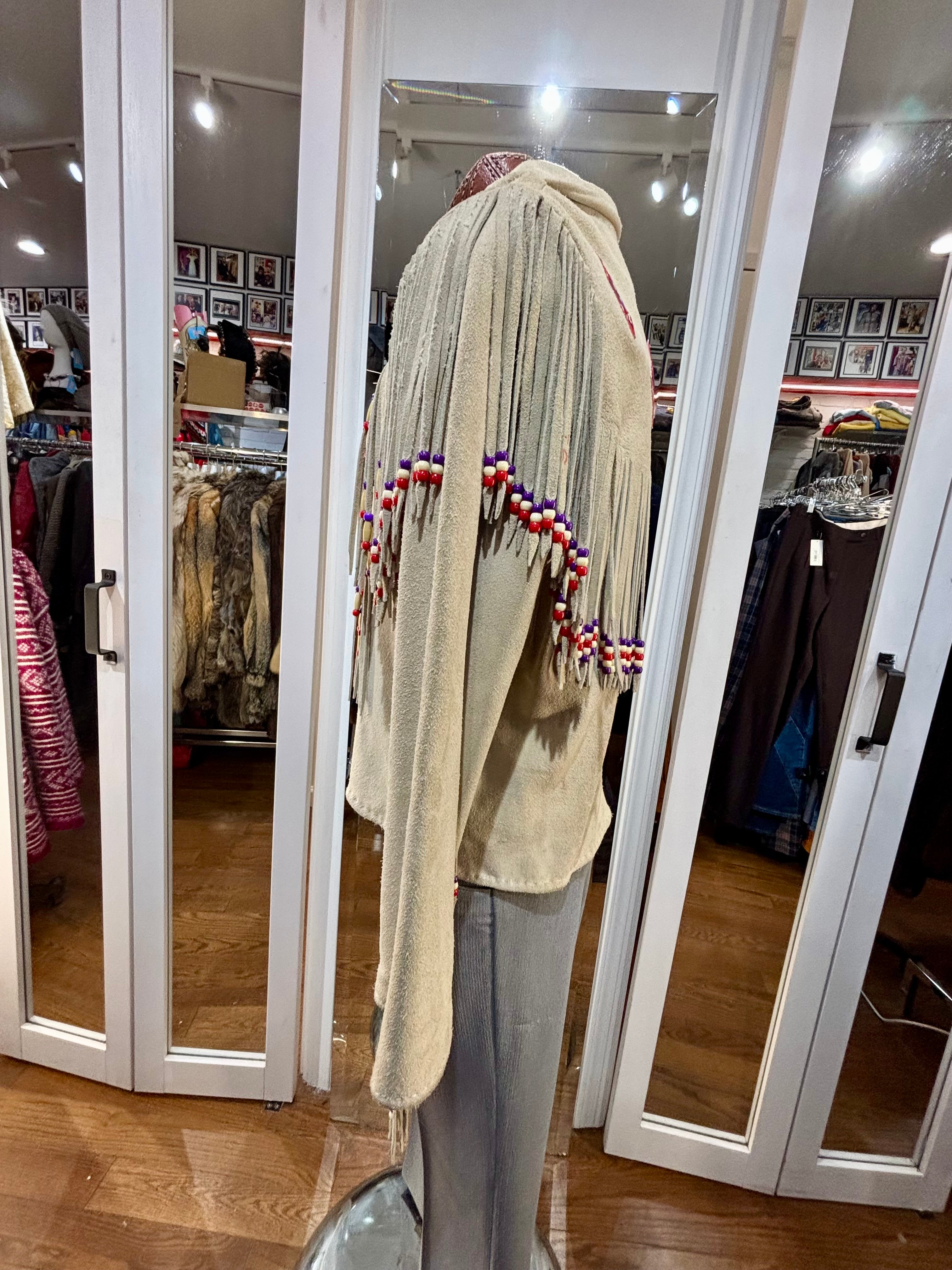 70’s Beige Suede Fringe Zip Short Indigenous Jacket By The Stevie Cee