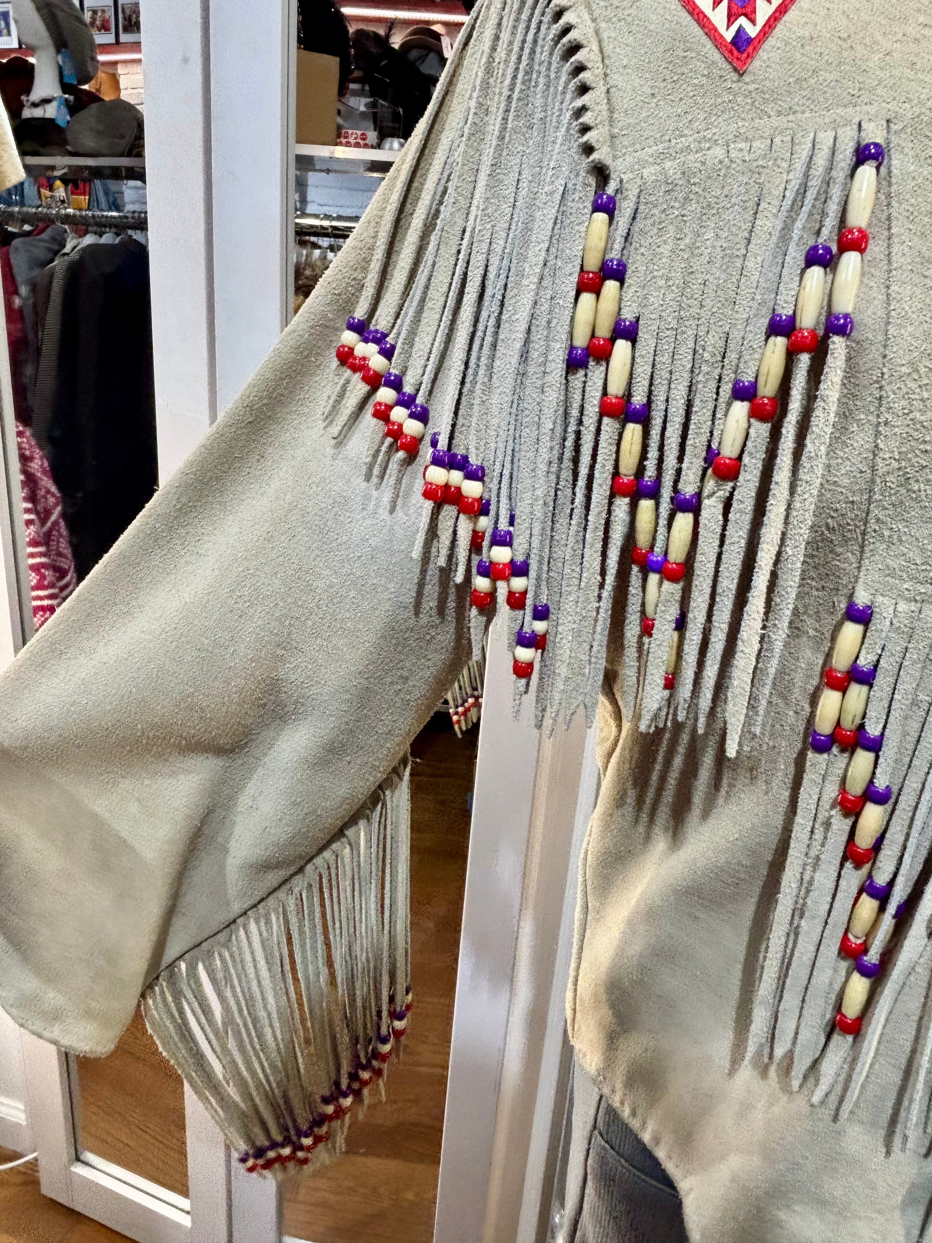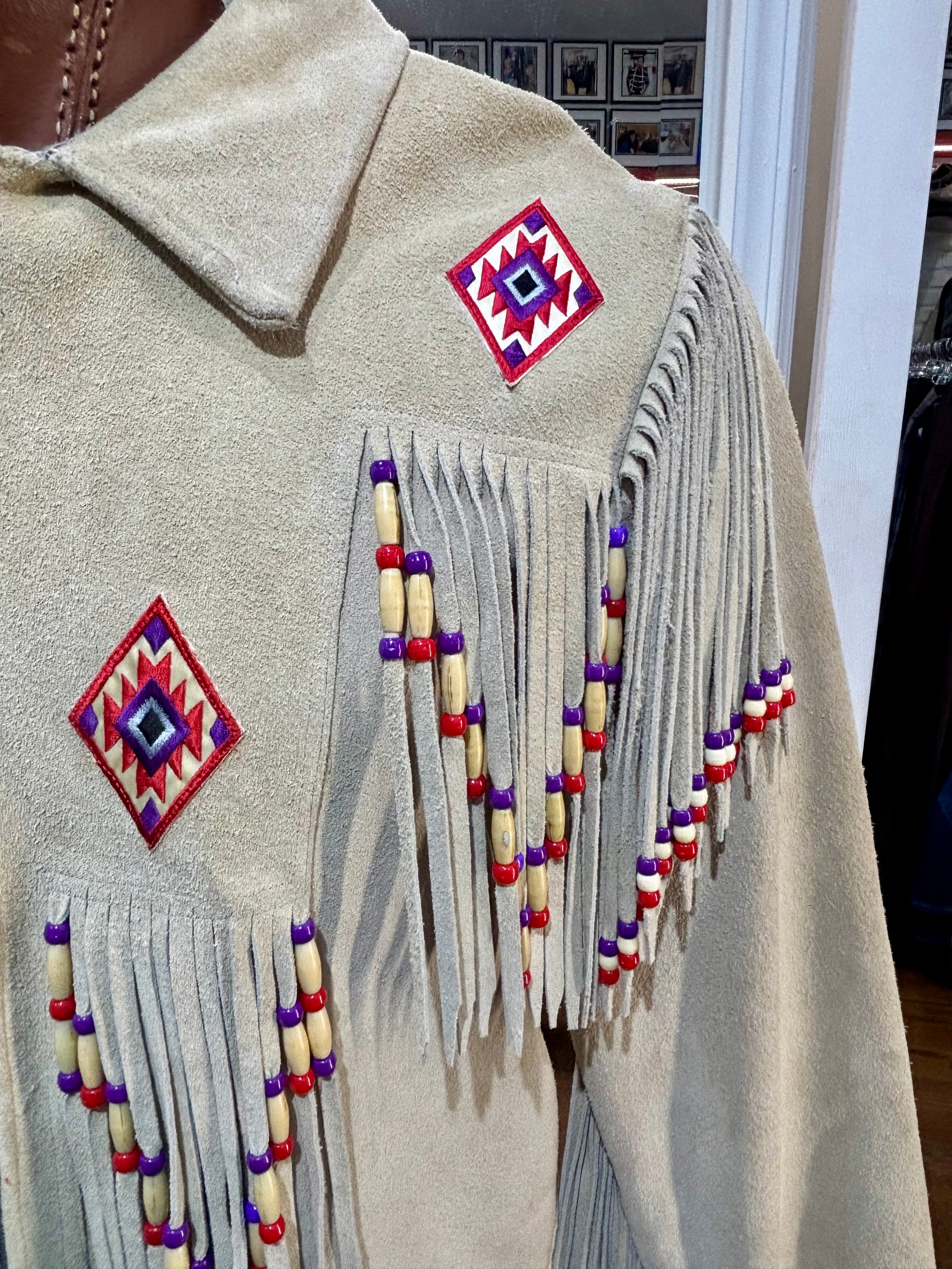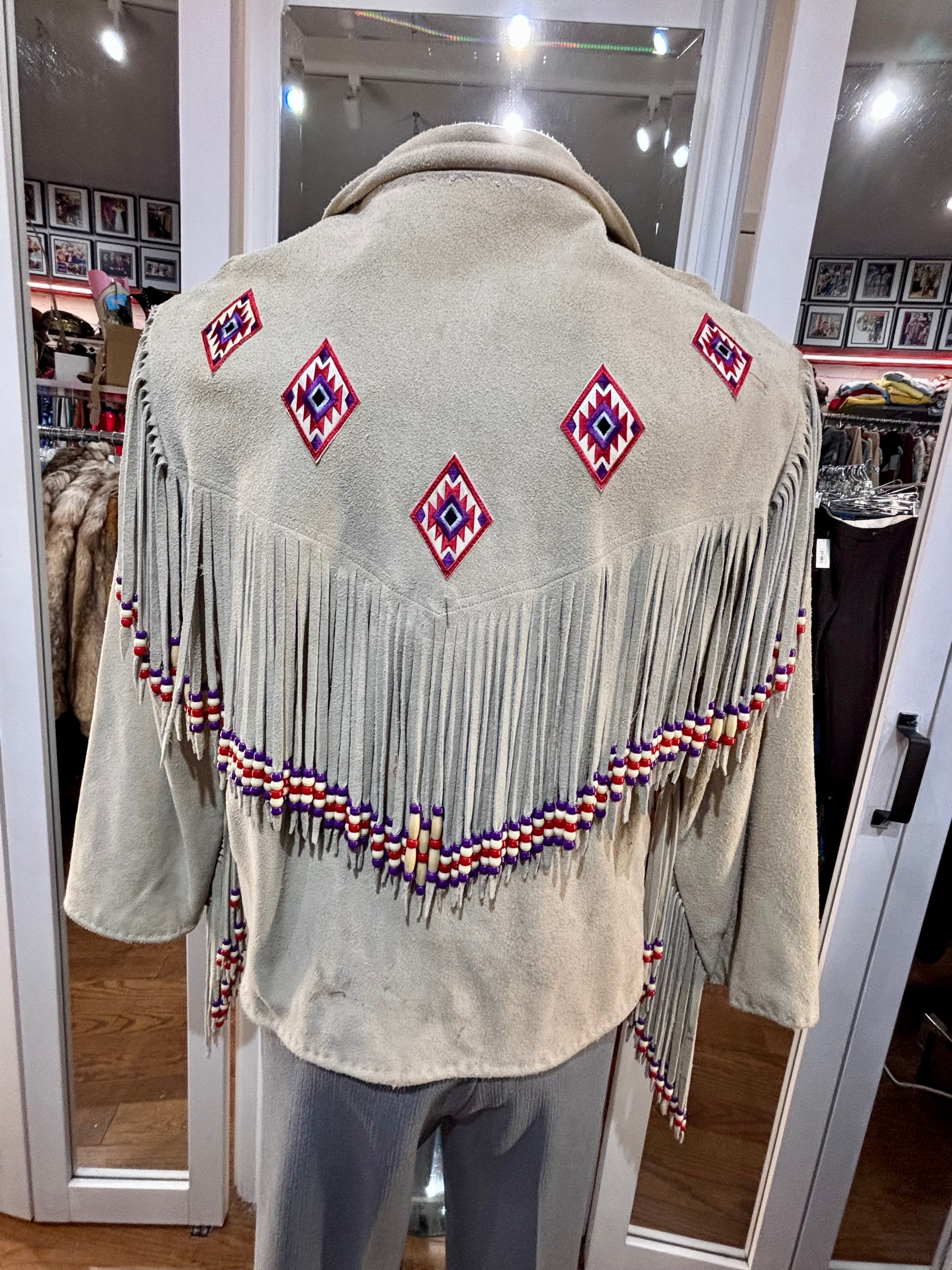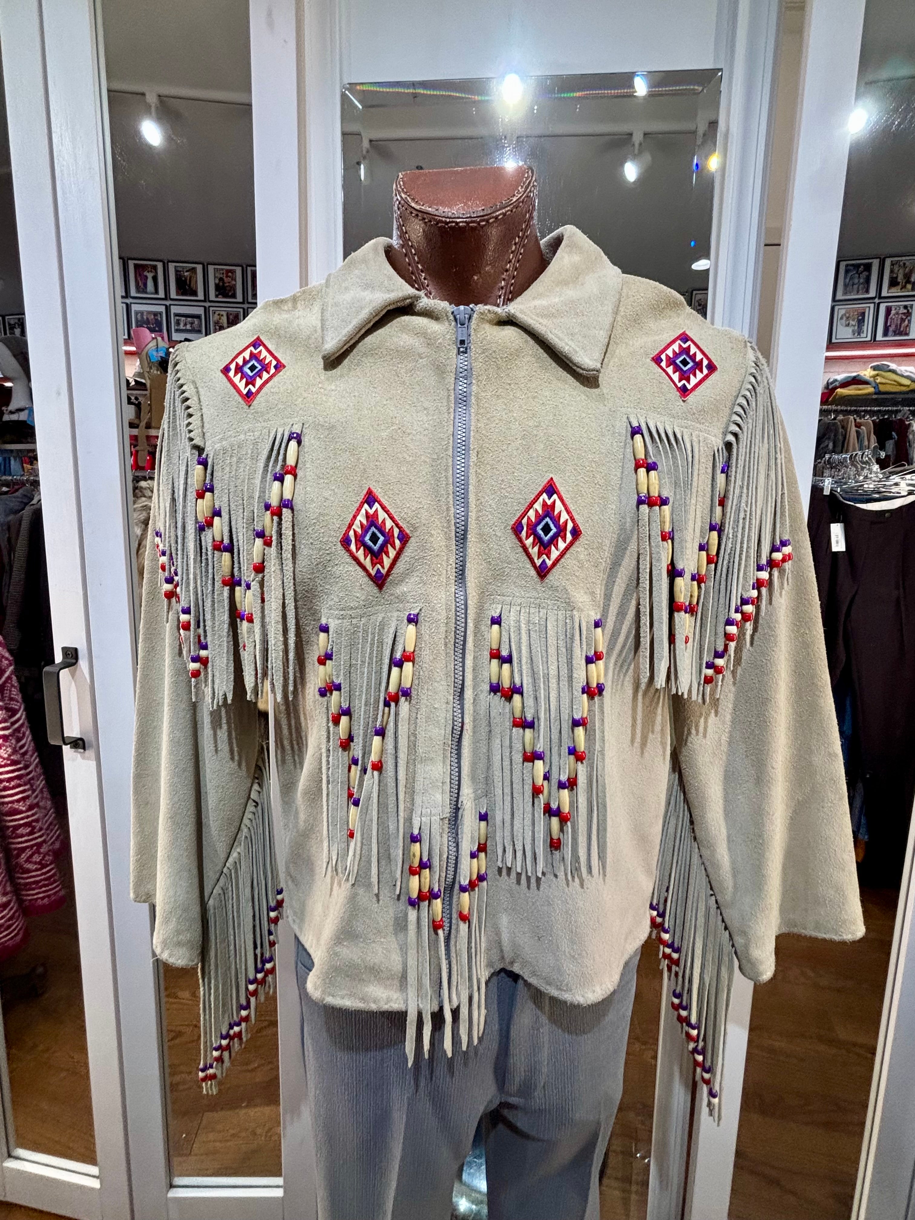 70’s Beige Suede Fringe Zip Short Indigenous Jacket By The Stevie Cee