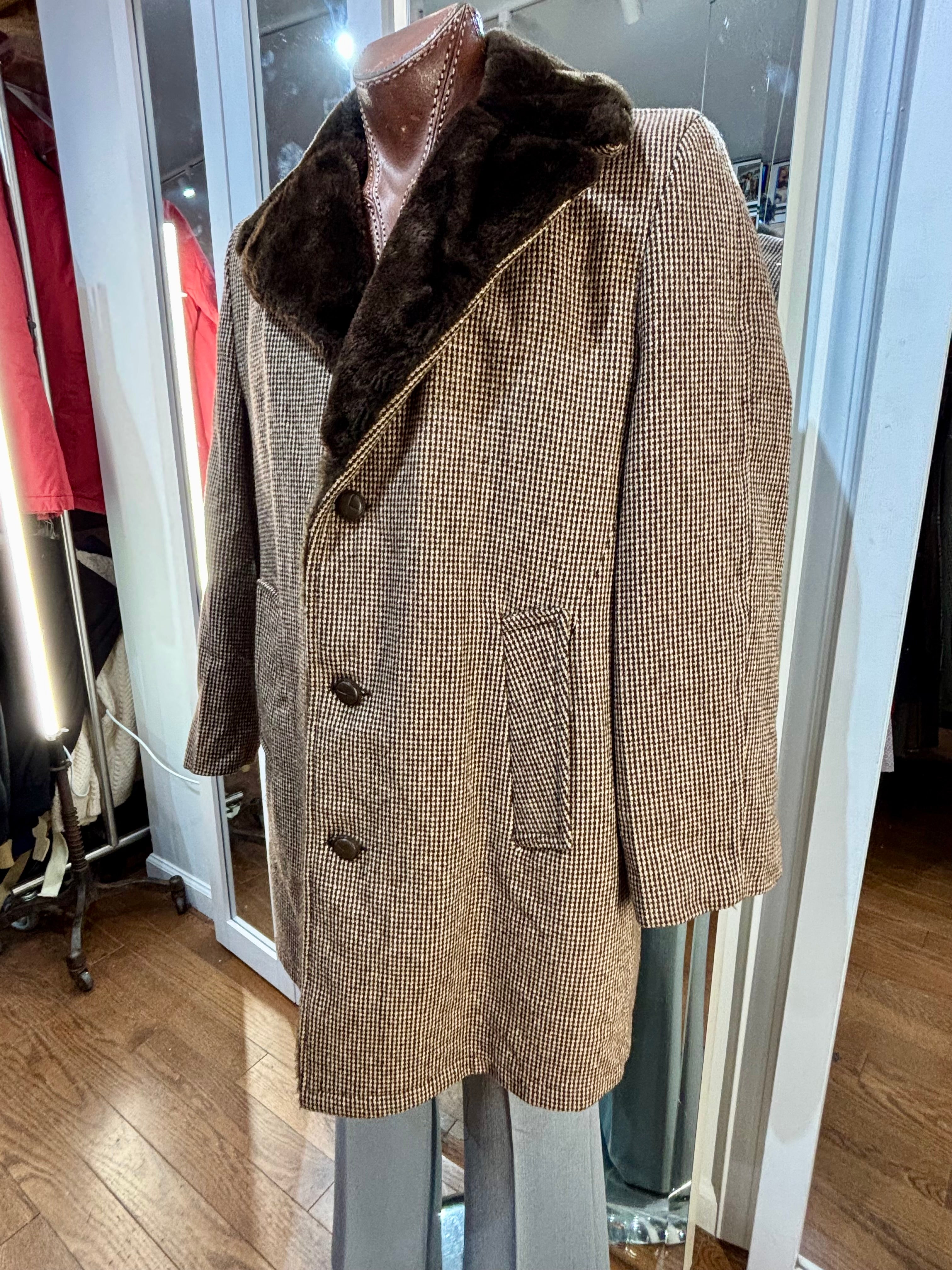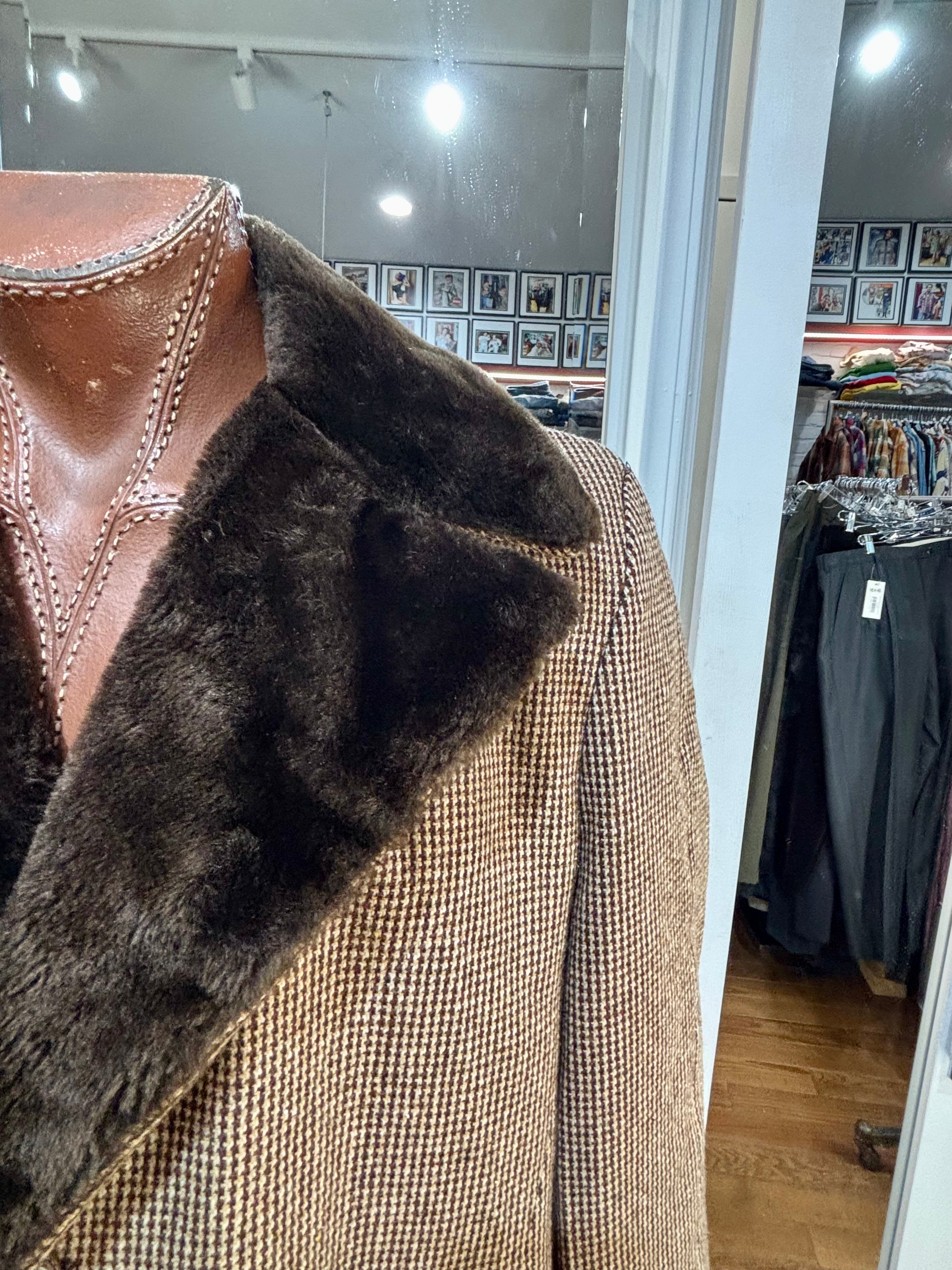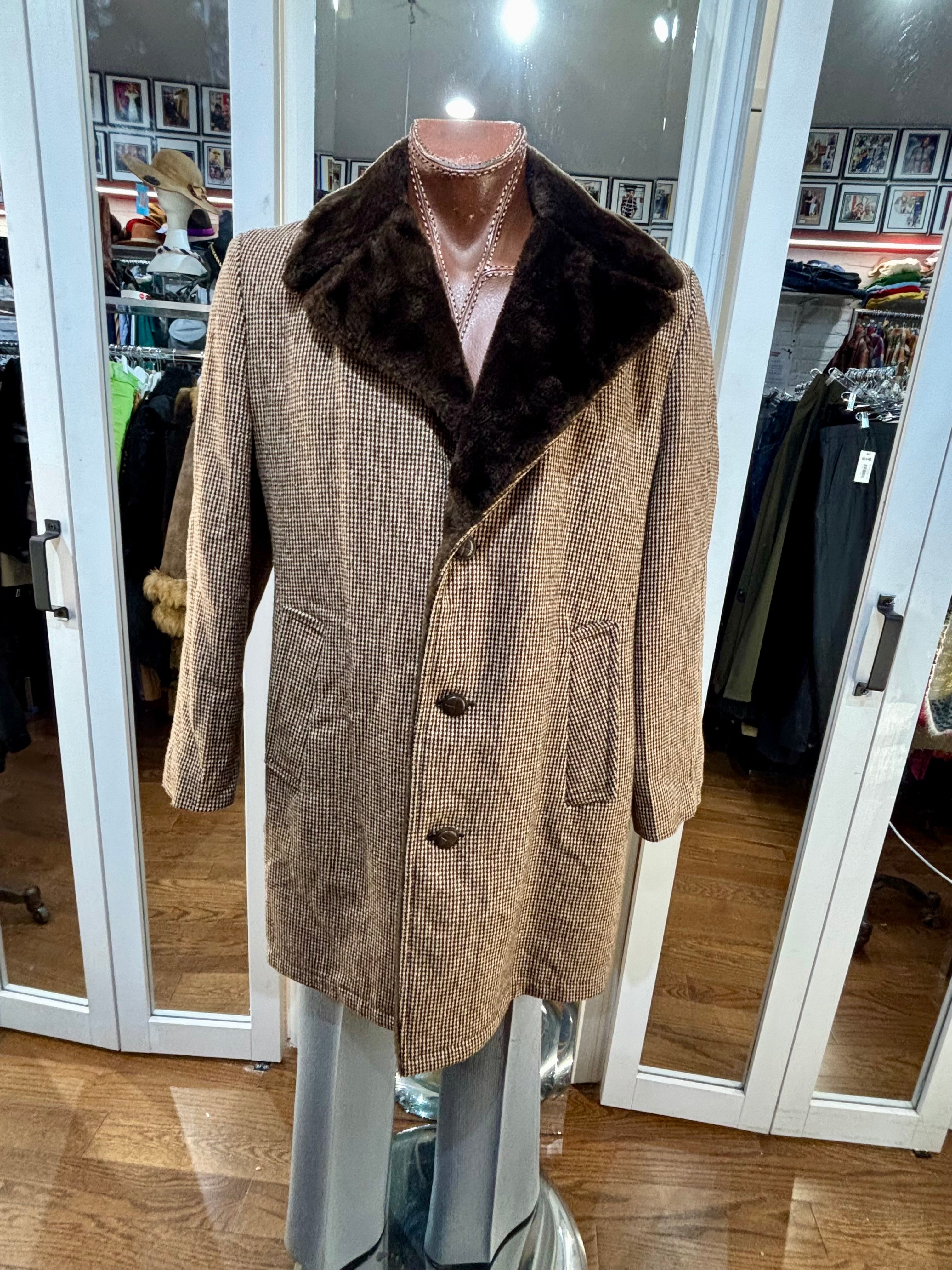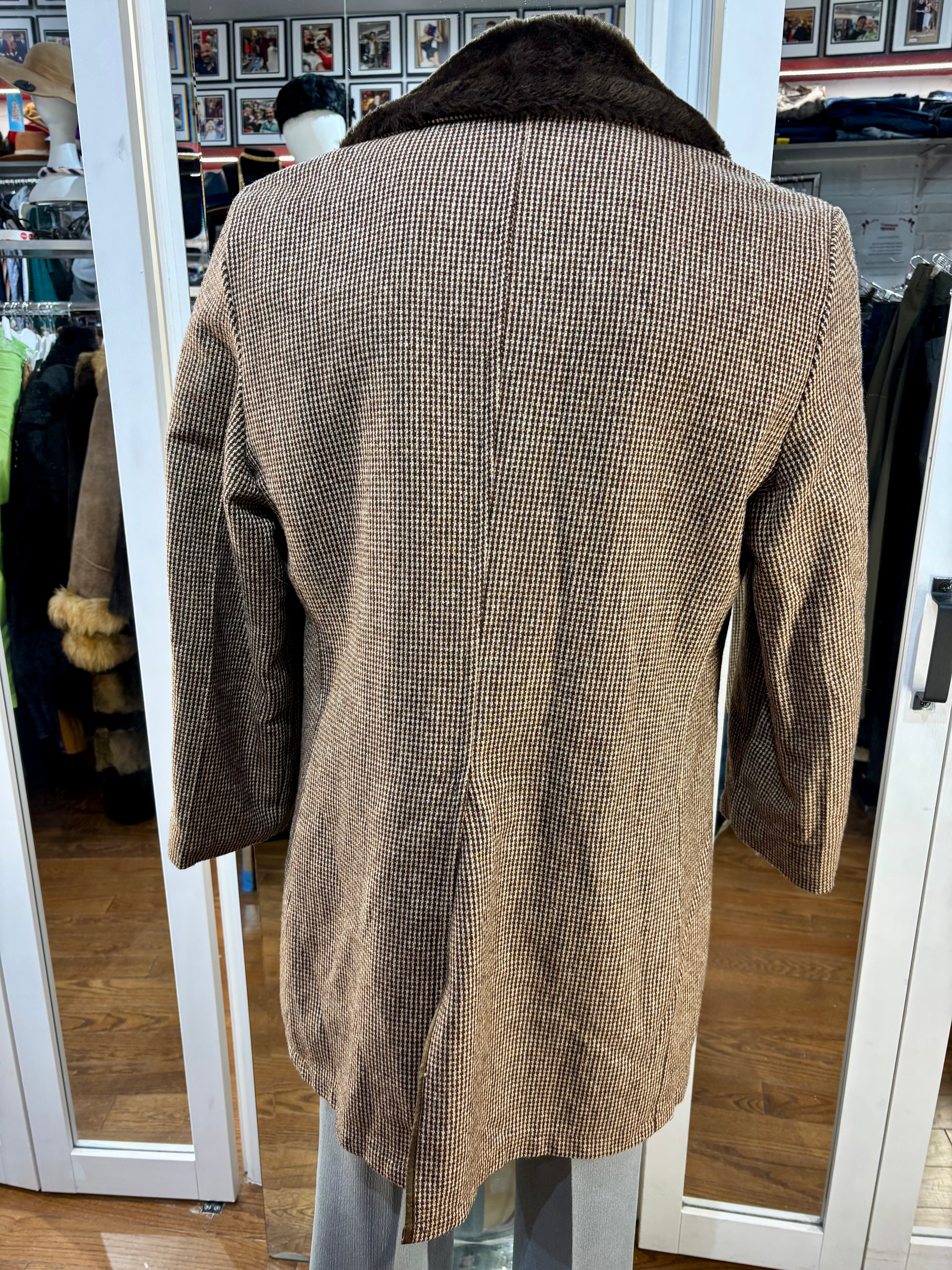 70’s Brown Wool Coat With Faux Fur Collar