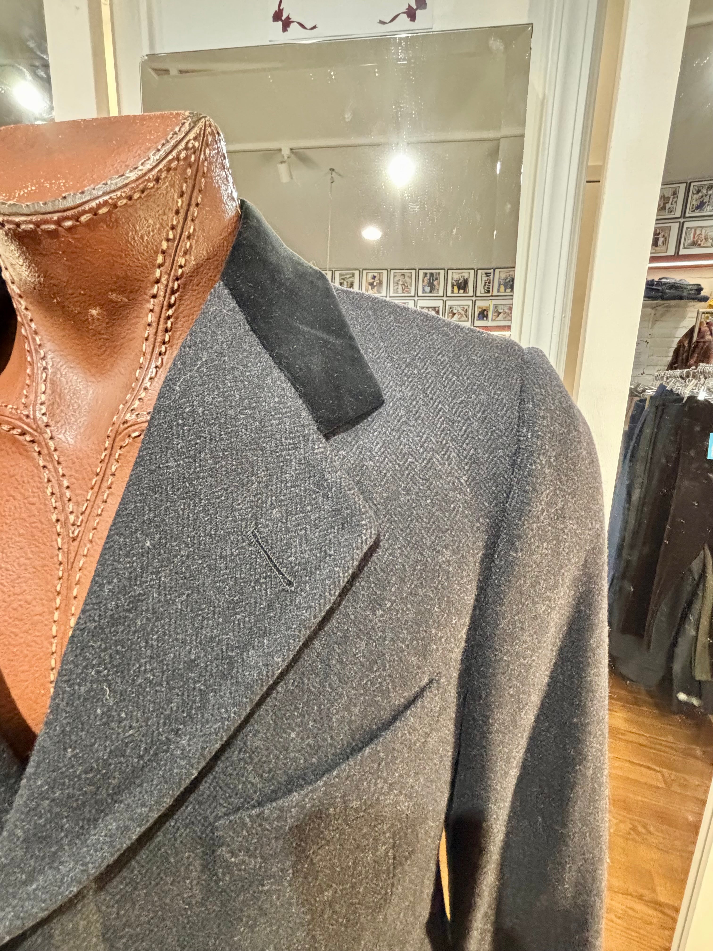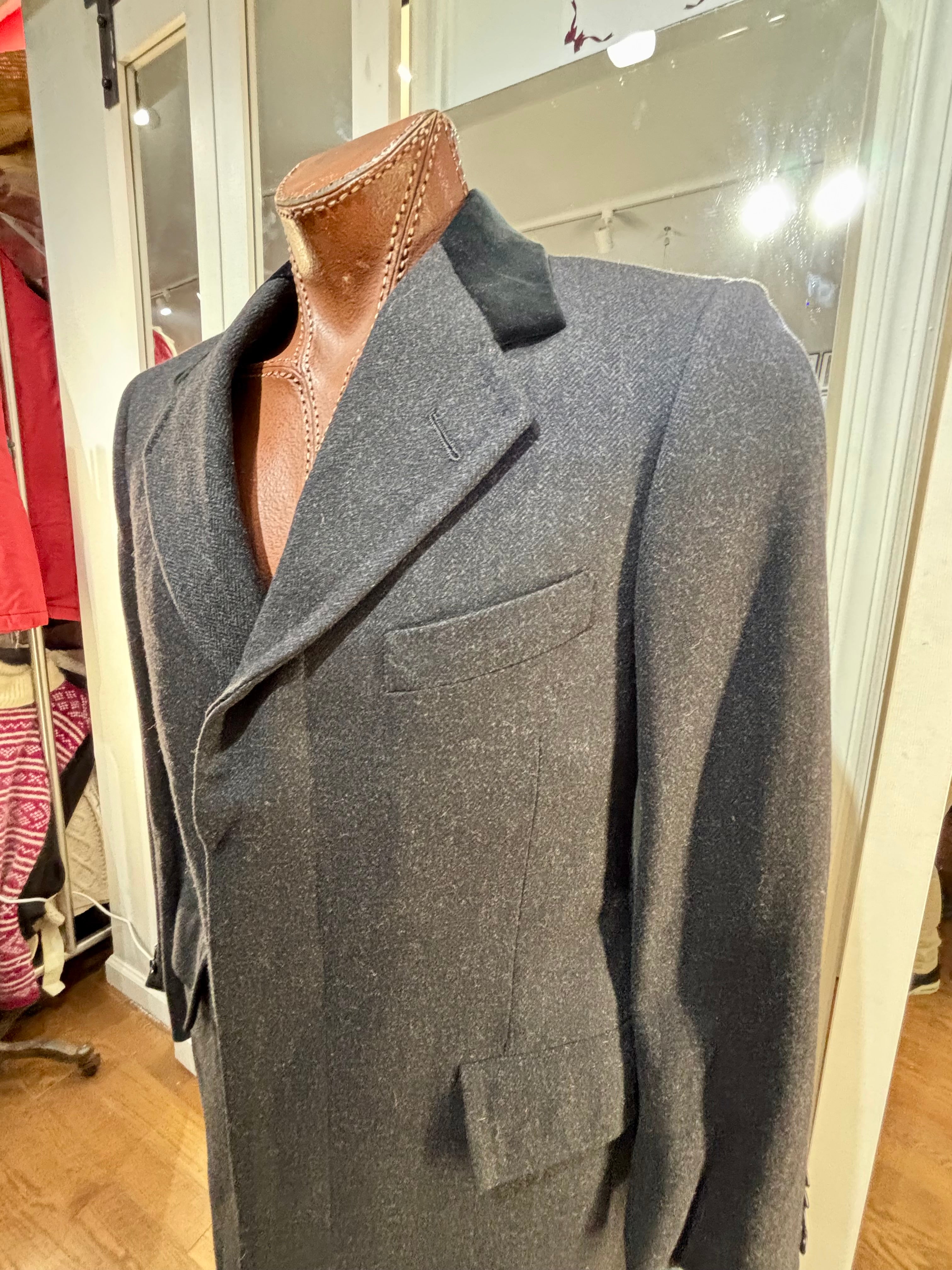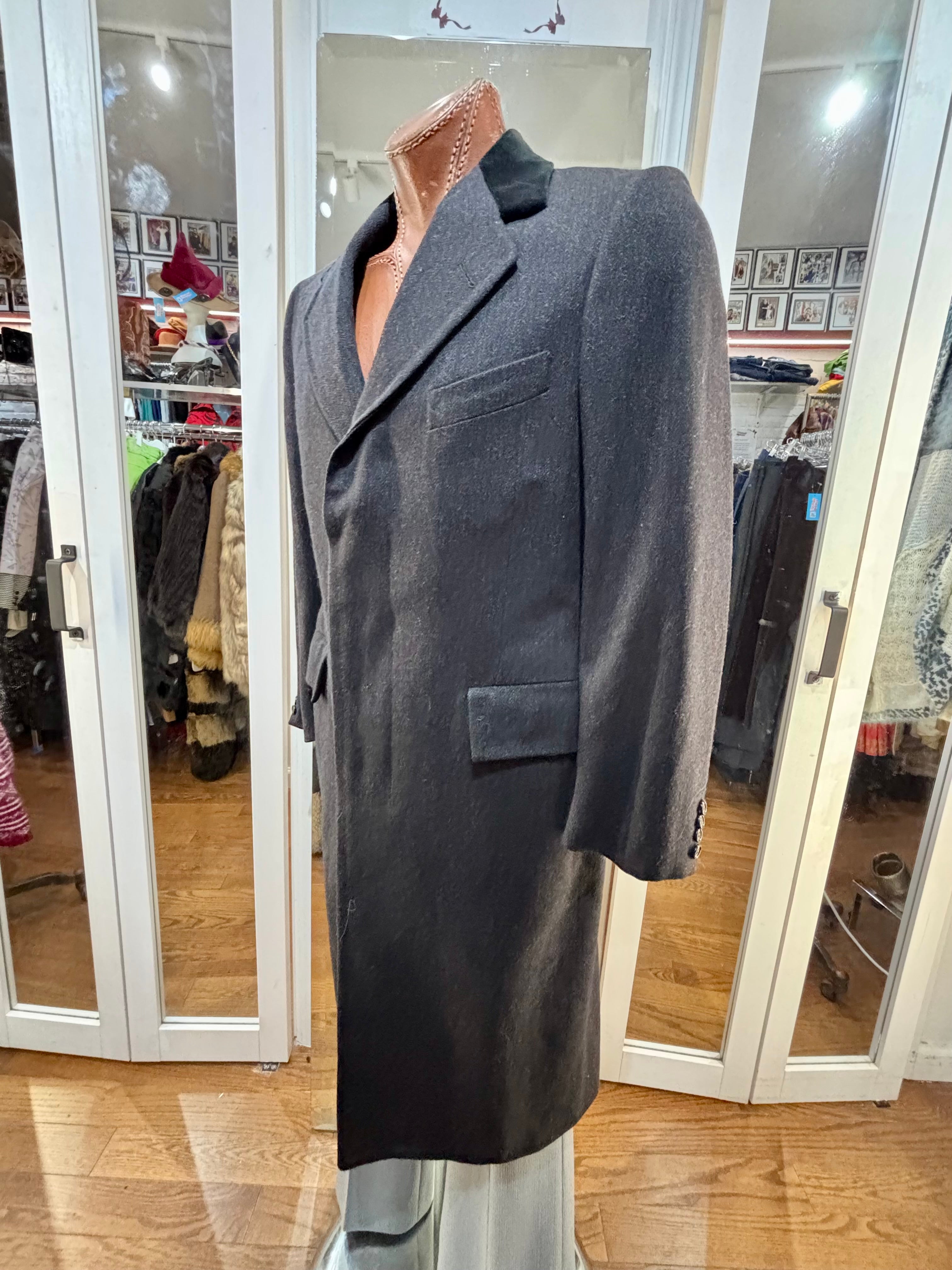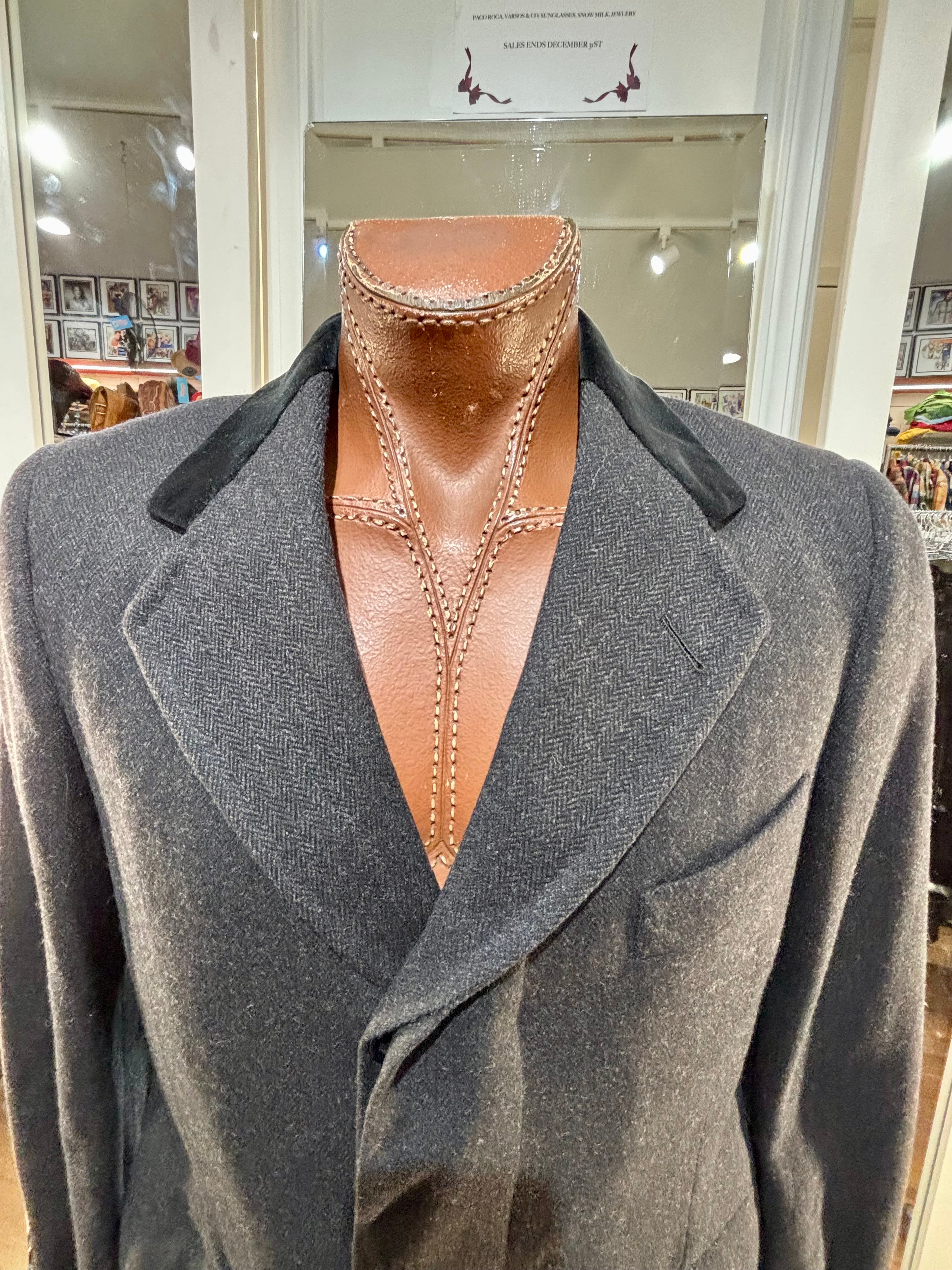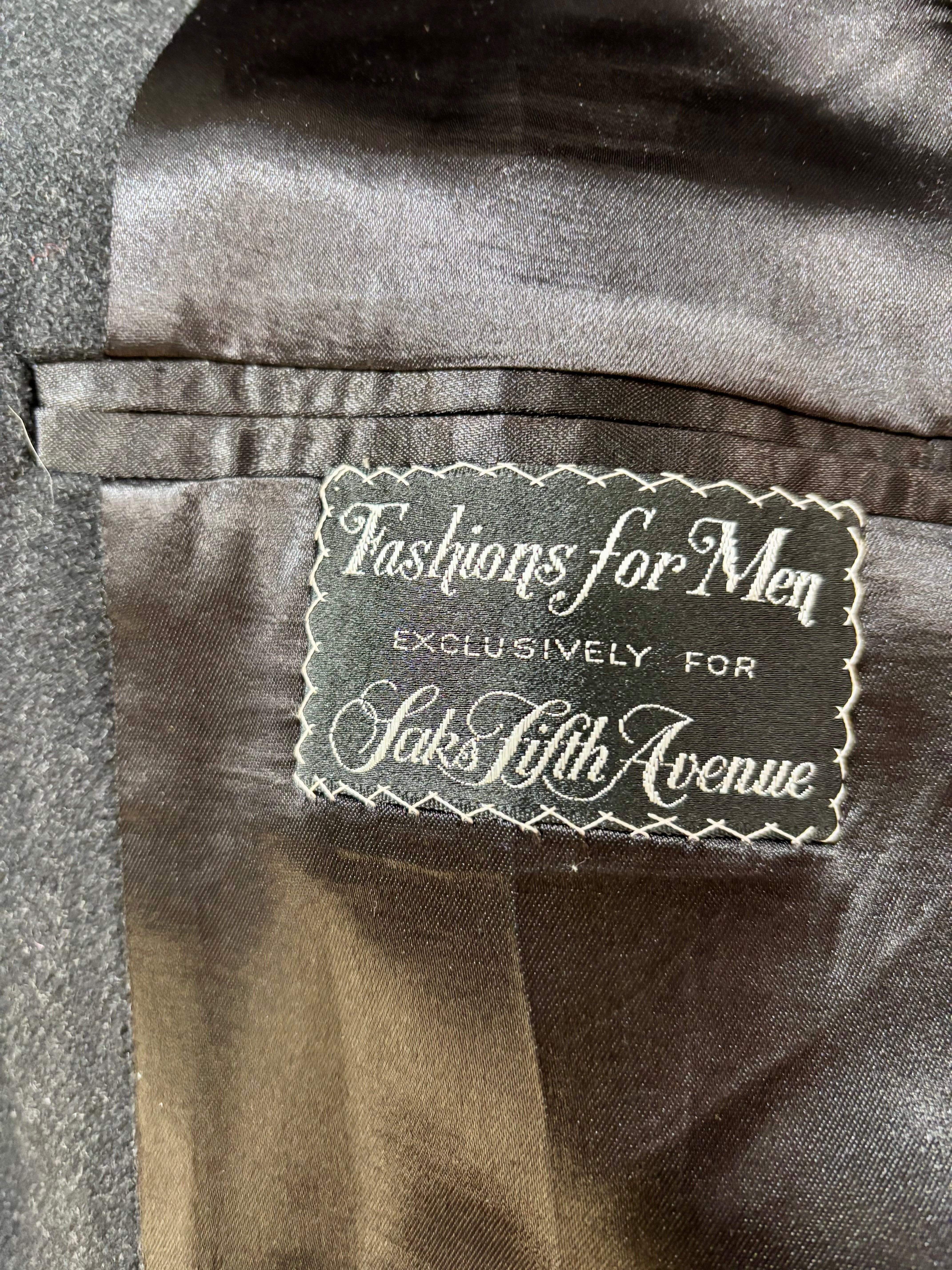 70’s Dark Gray Overcoat With Velvet Trim Collar By Saks Fifth Ave