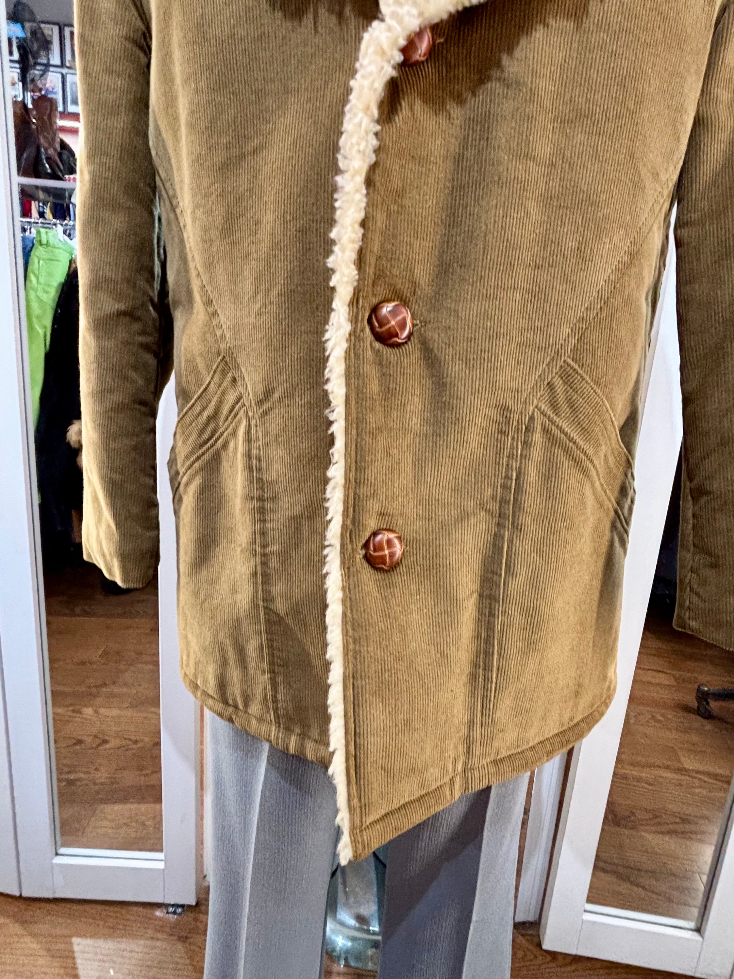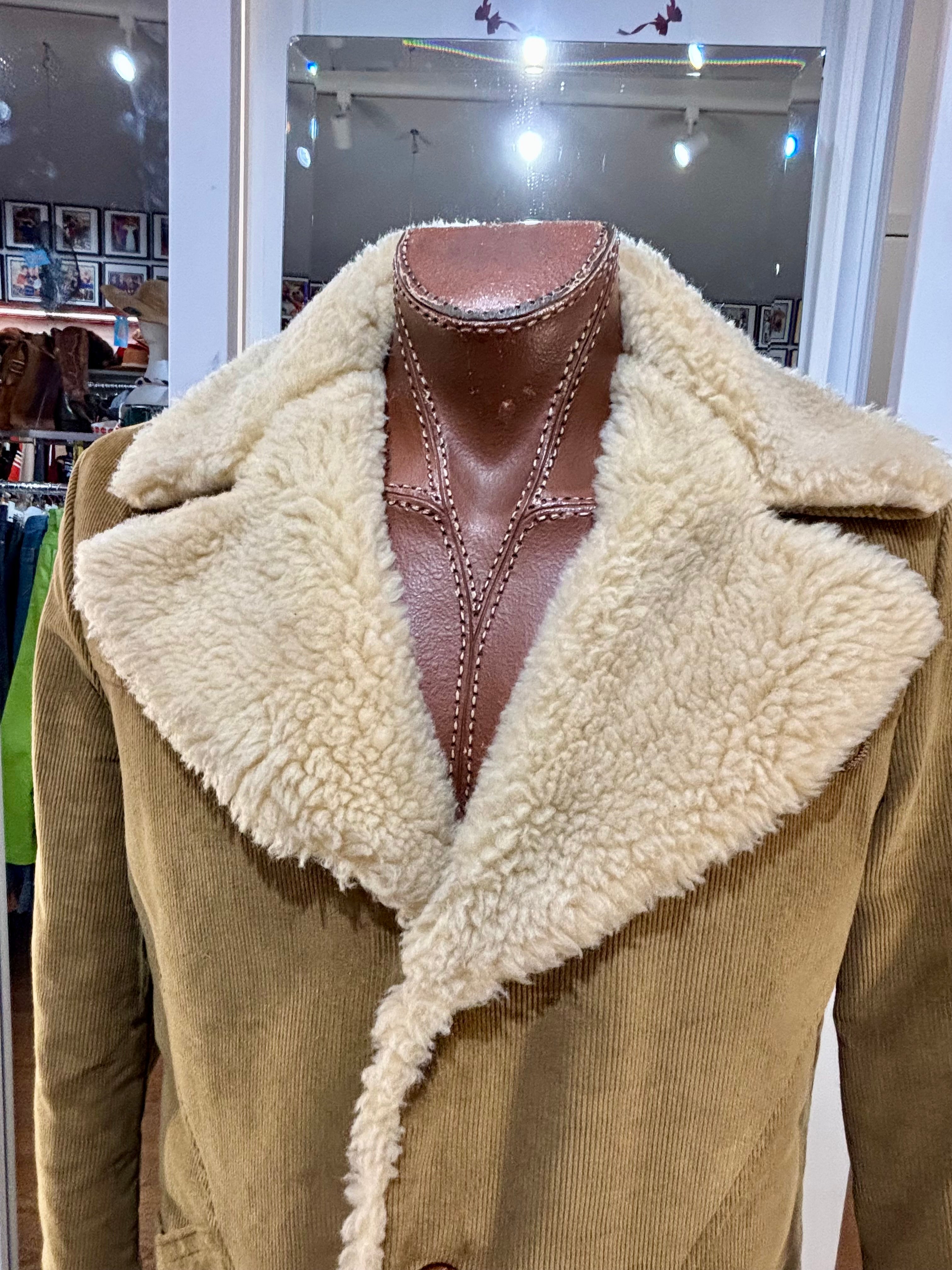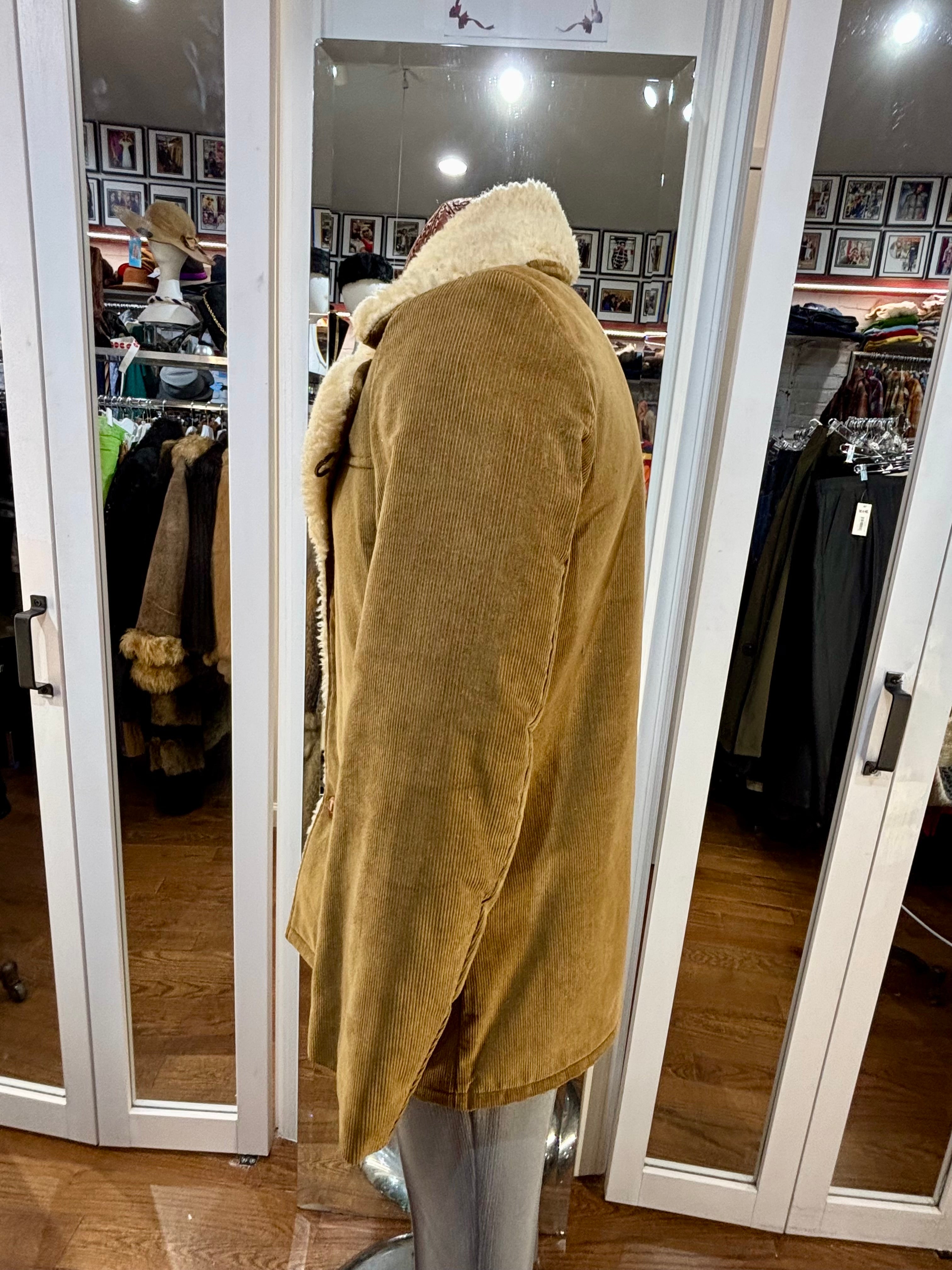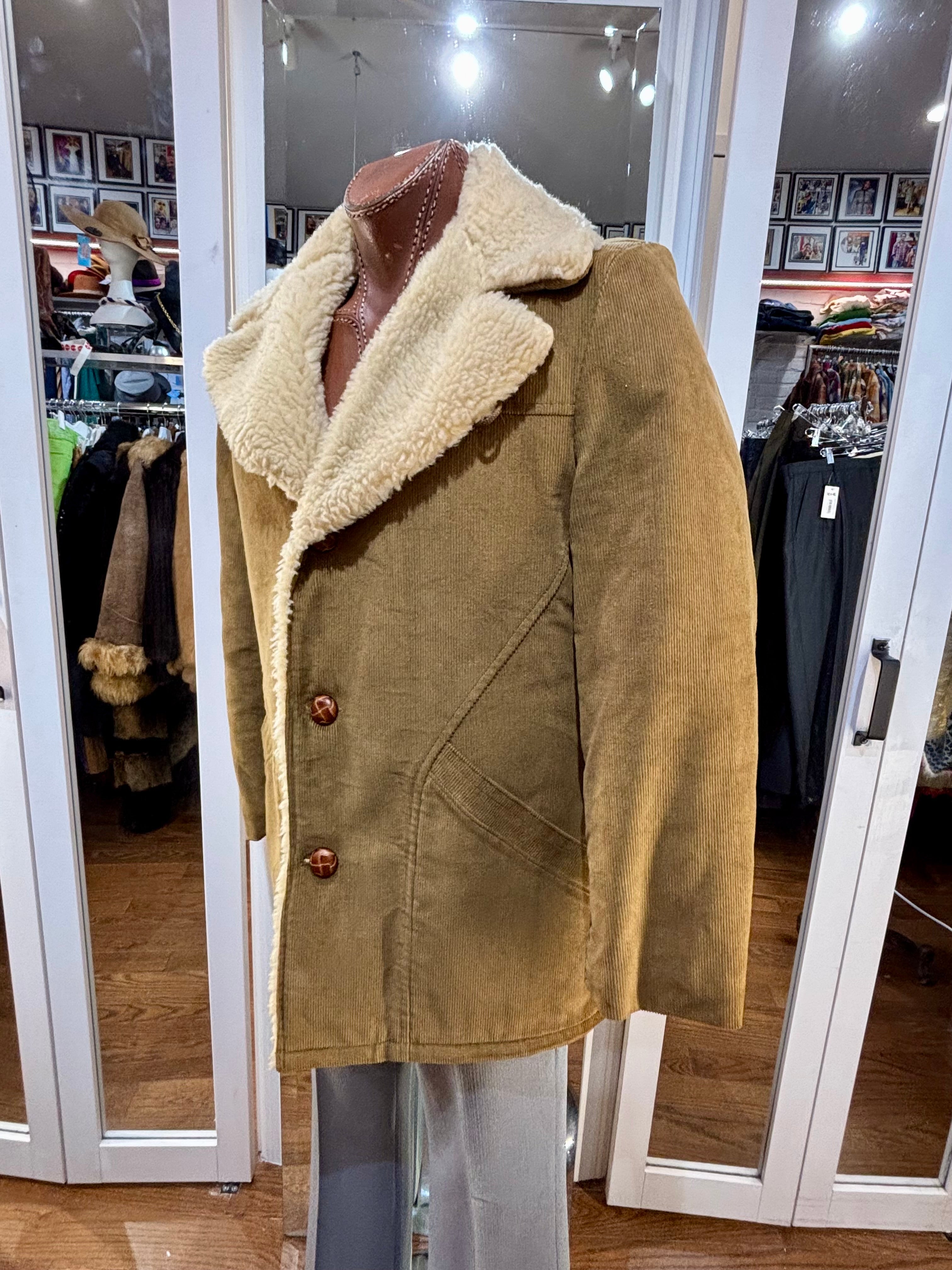 70’s Khaki Corduroy Coat With Faux Shearling By Richman Brothers