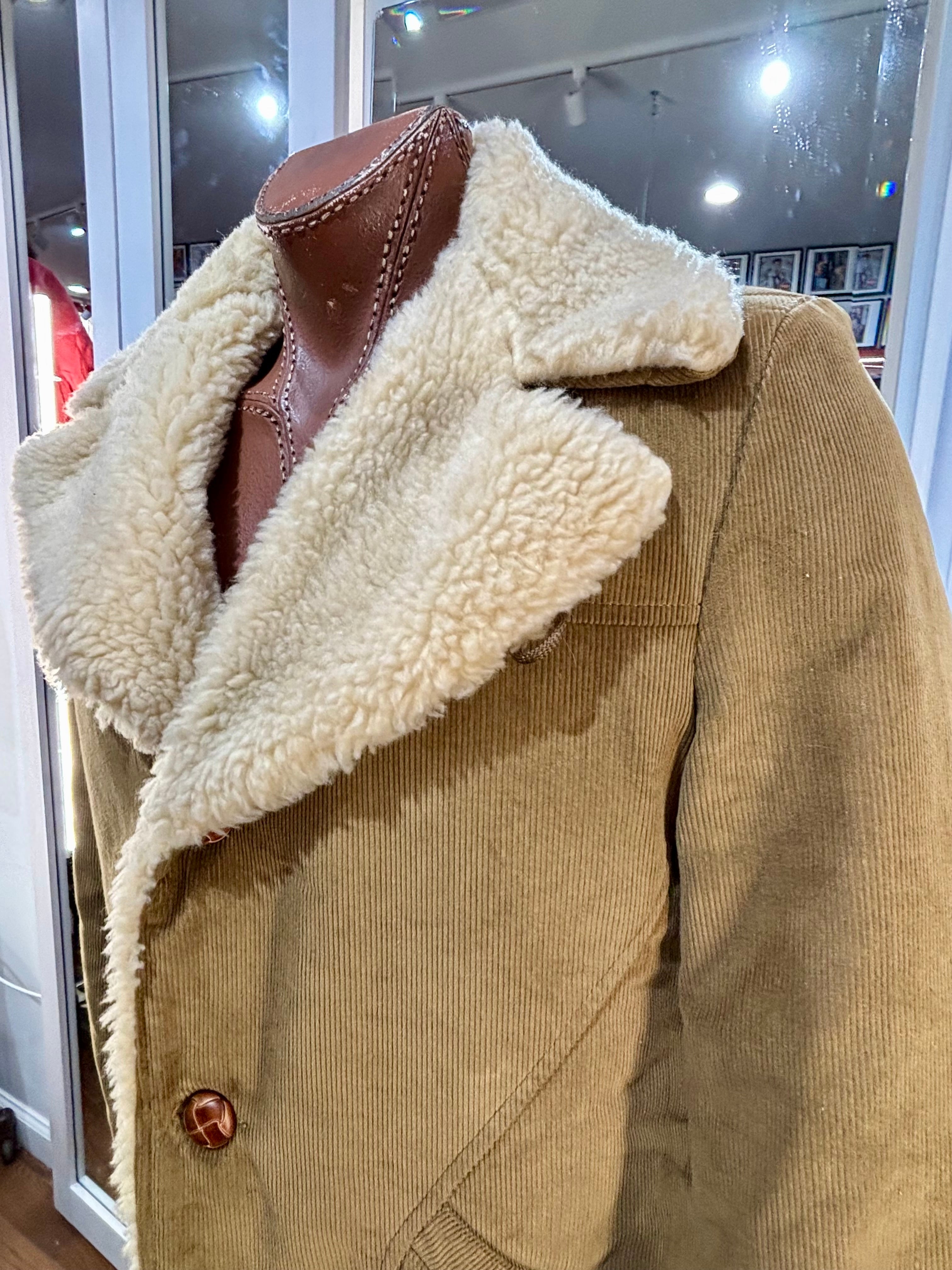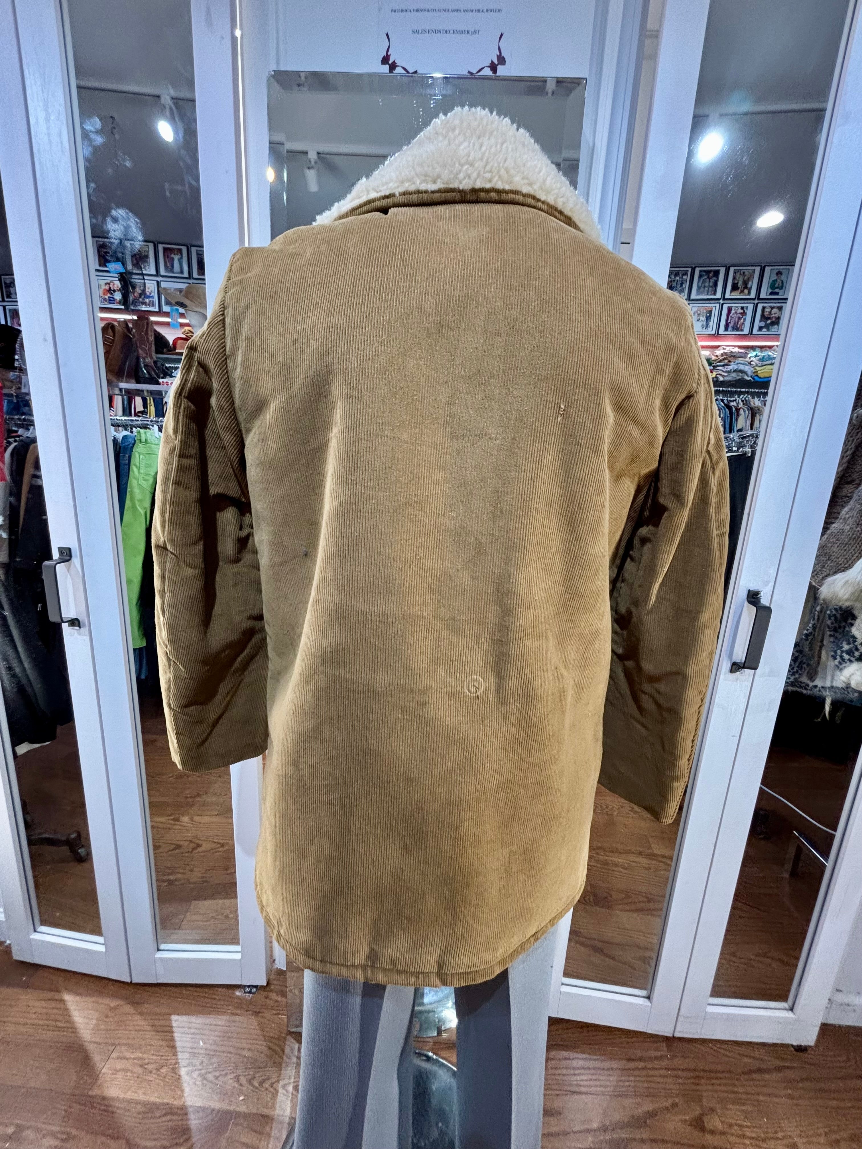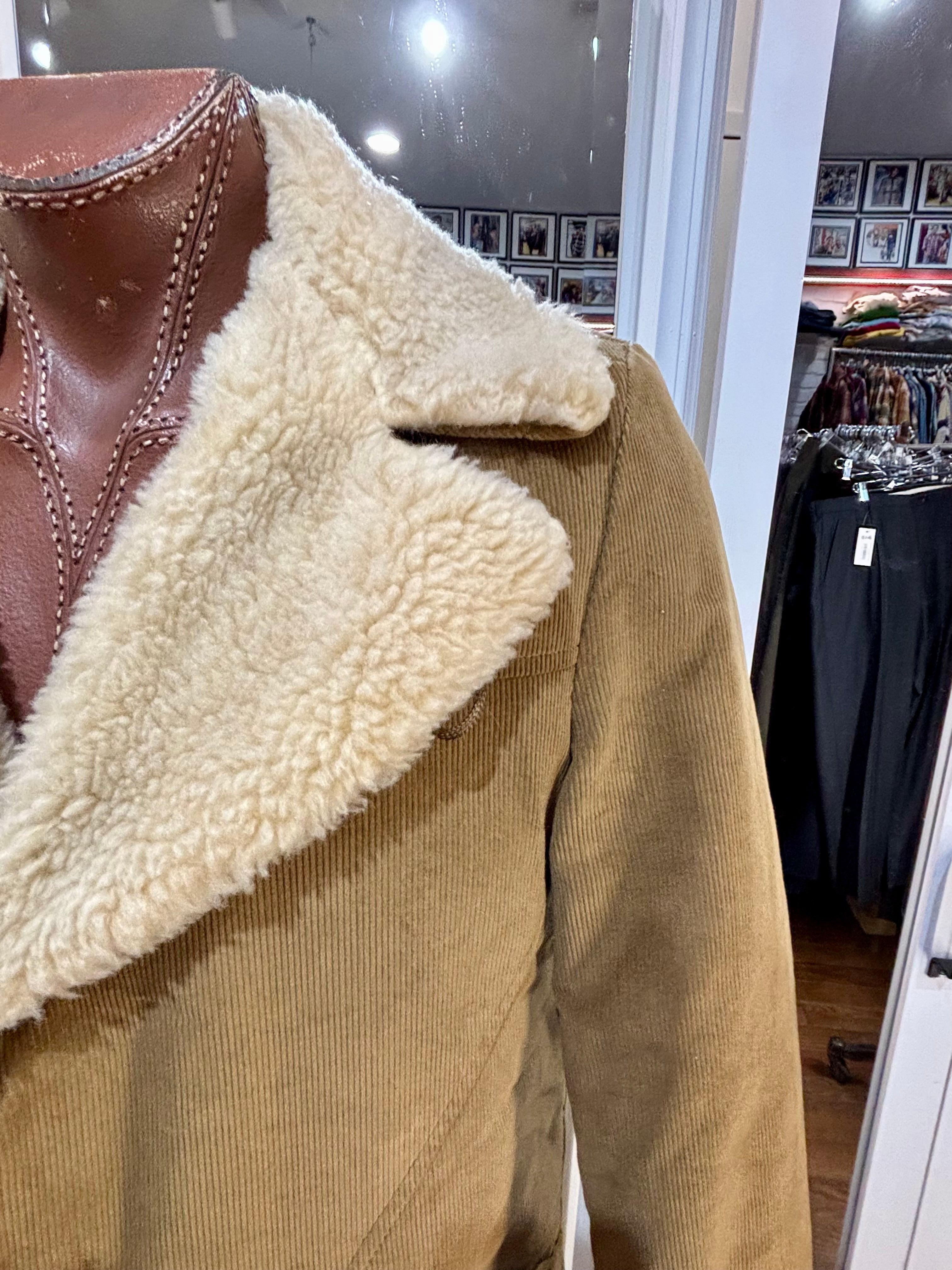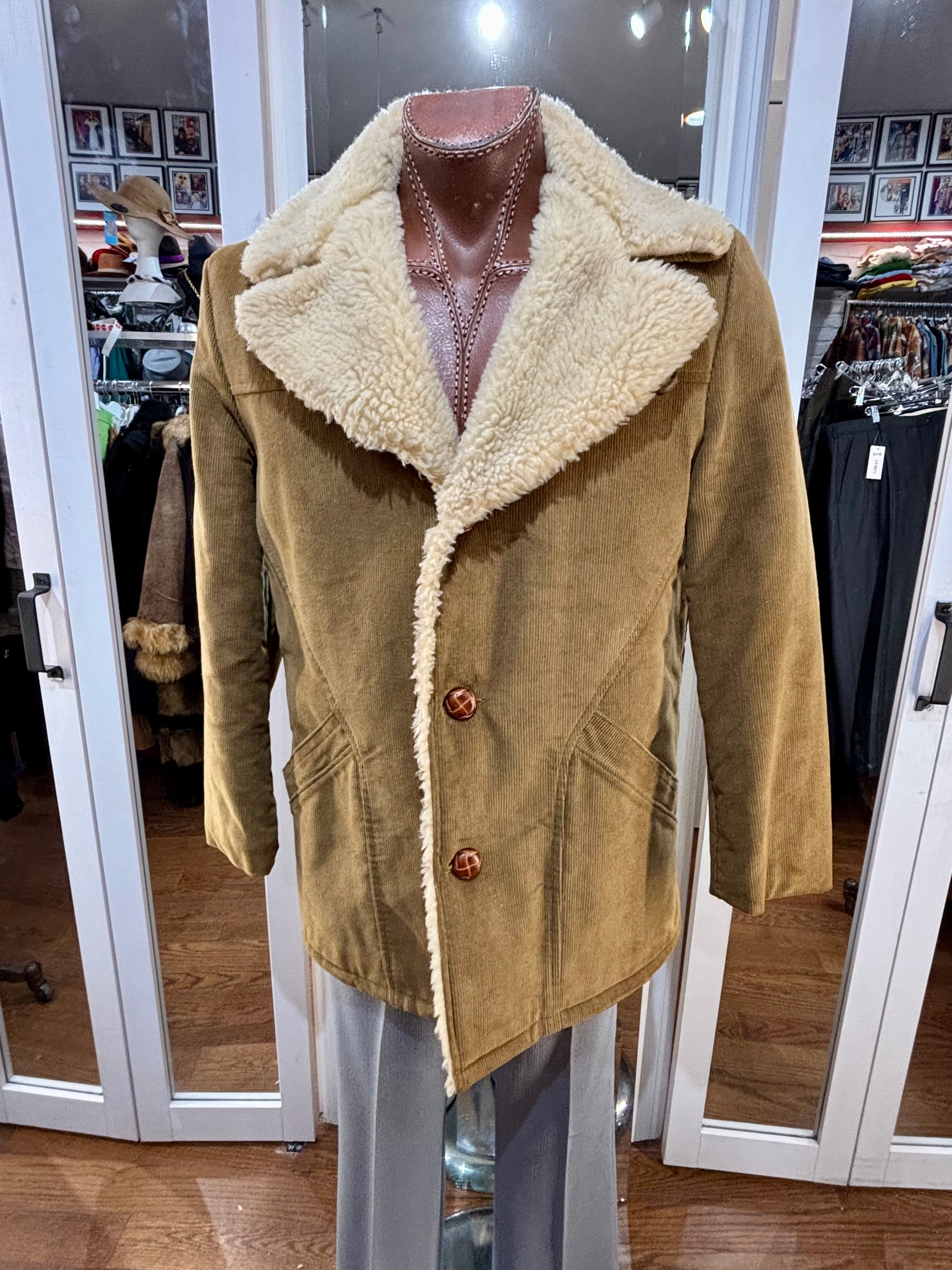 70’s Khaki Corduroy Coat With Faux Shearling By Richman Brothers