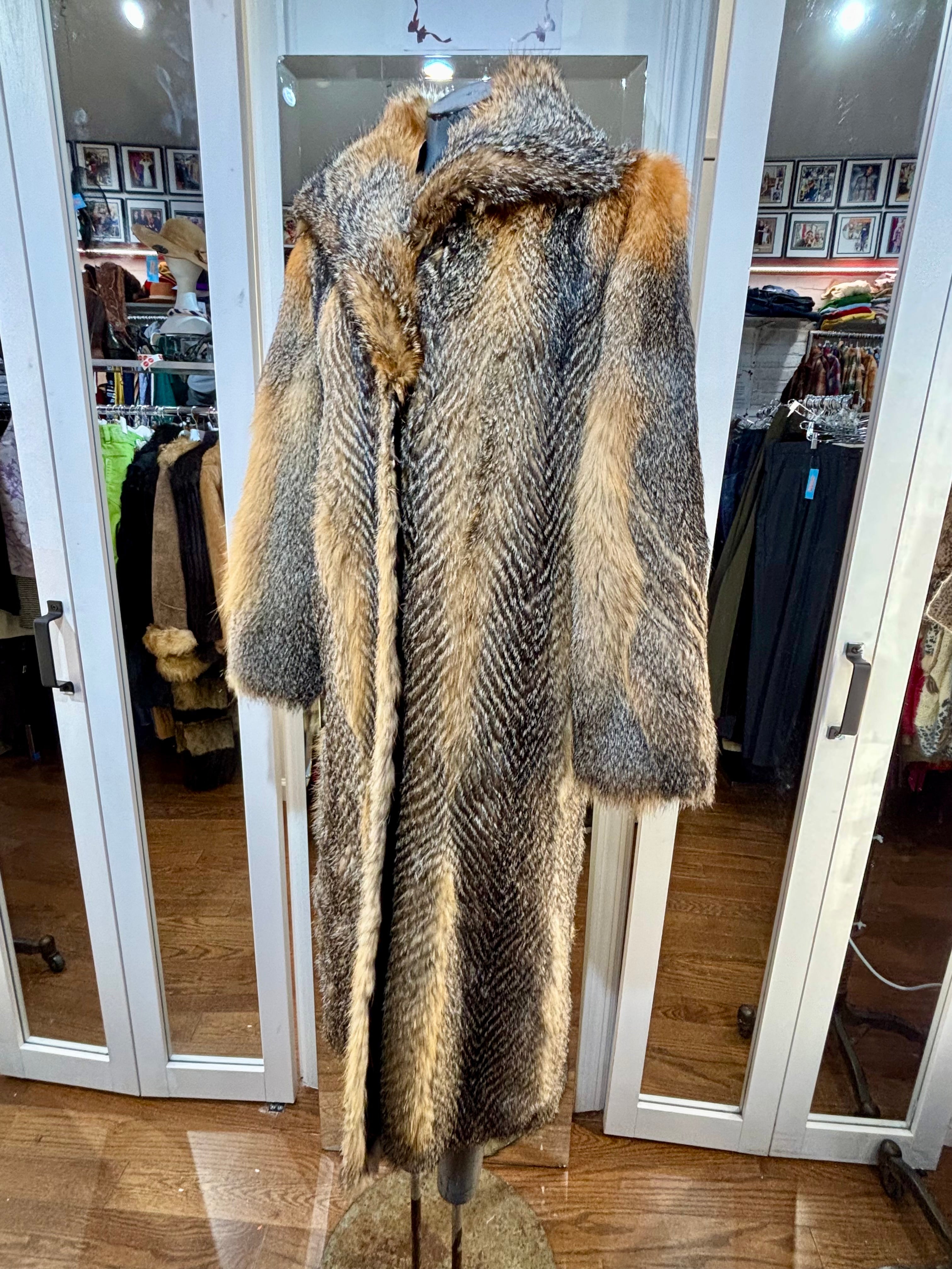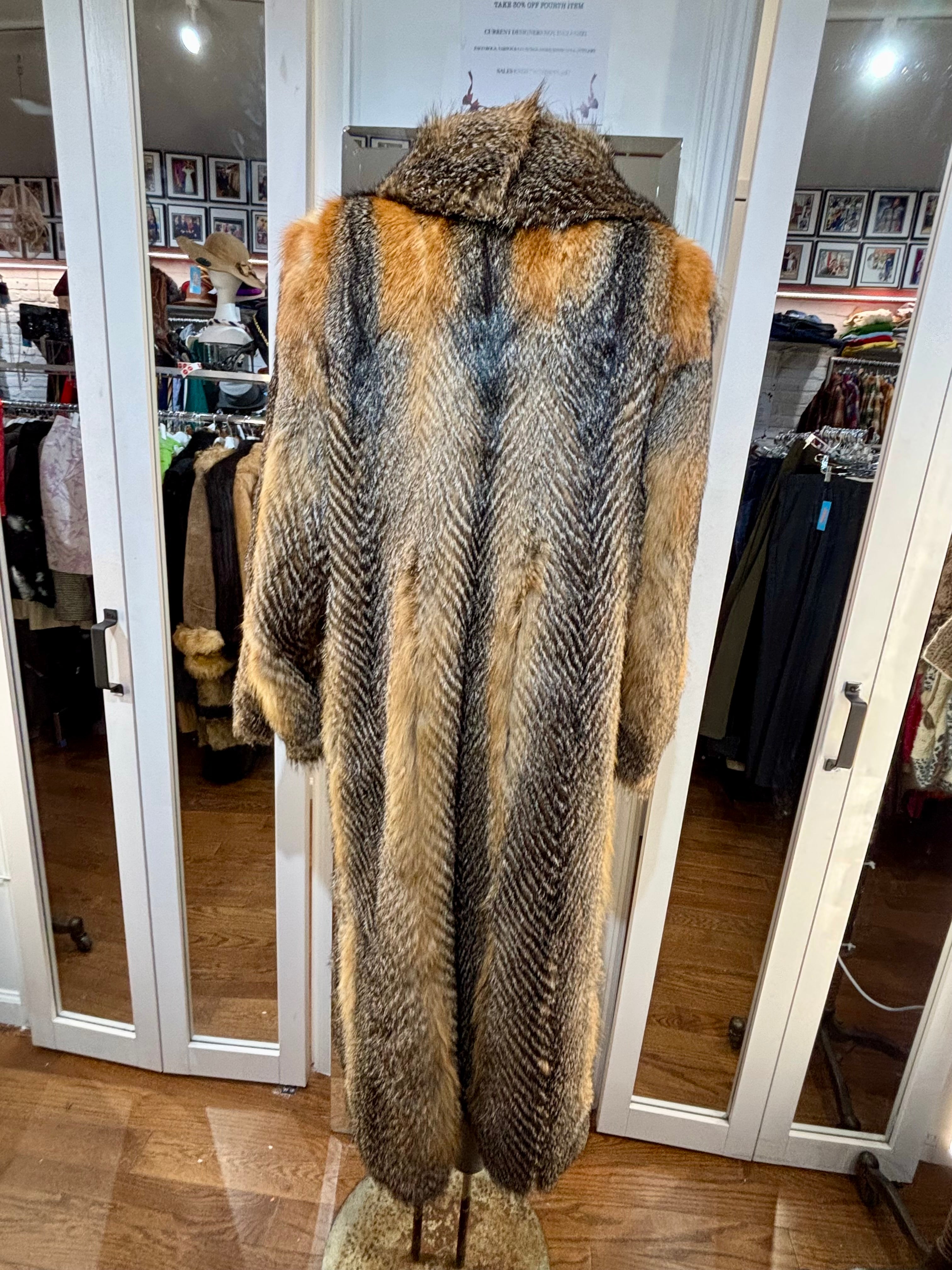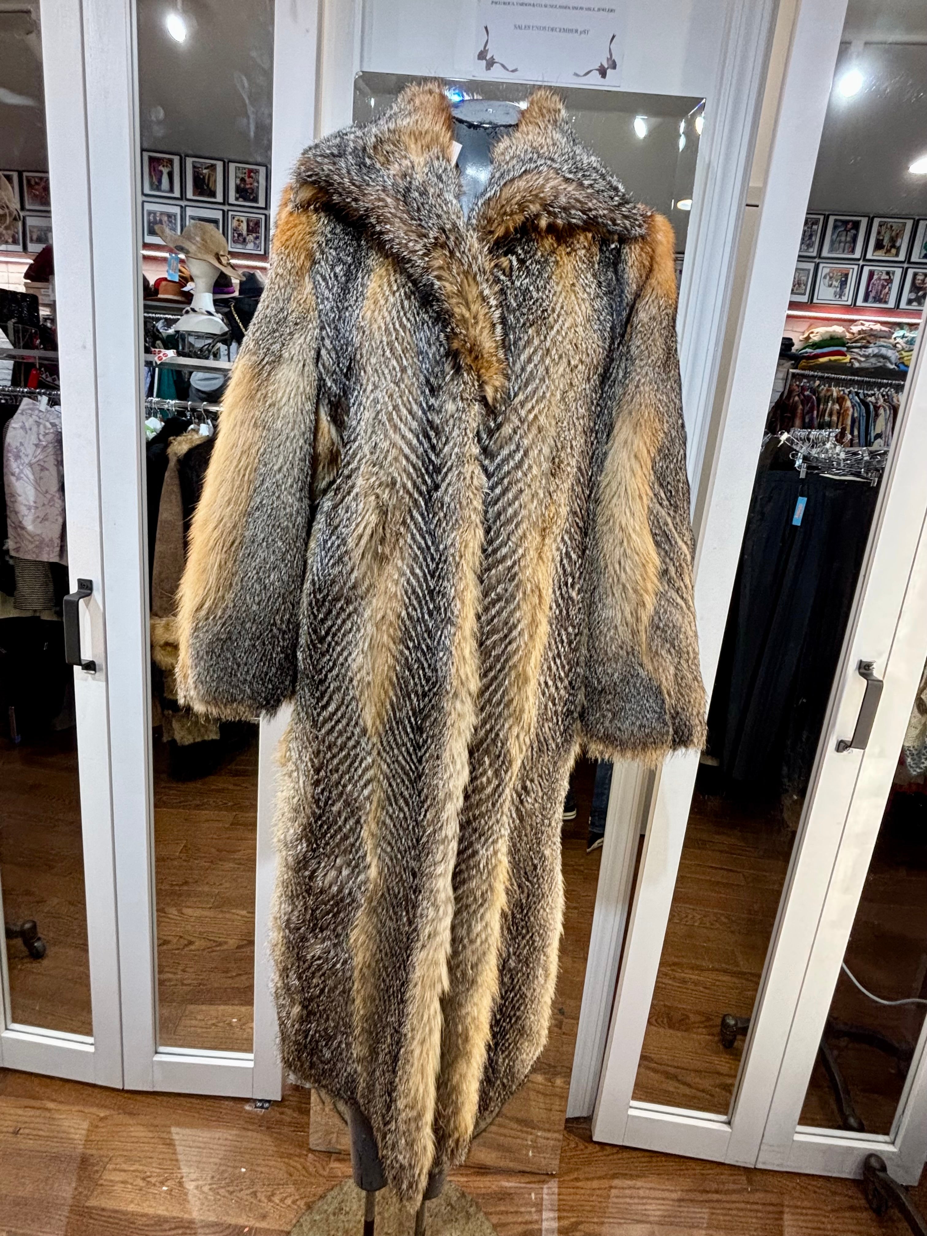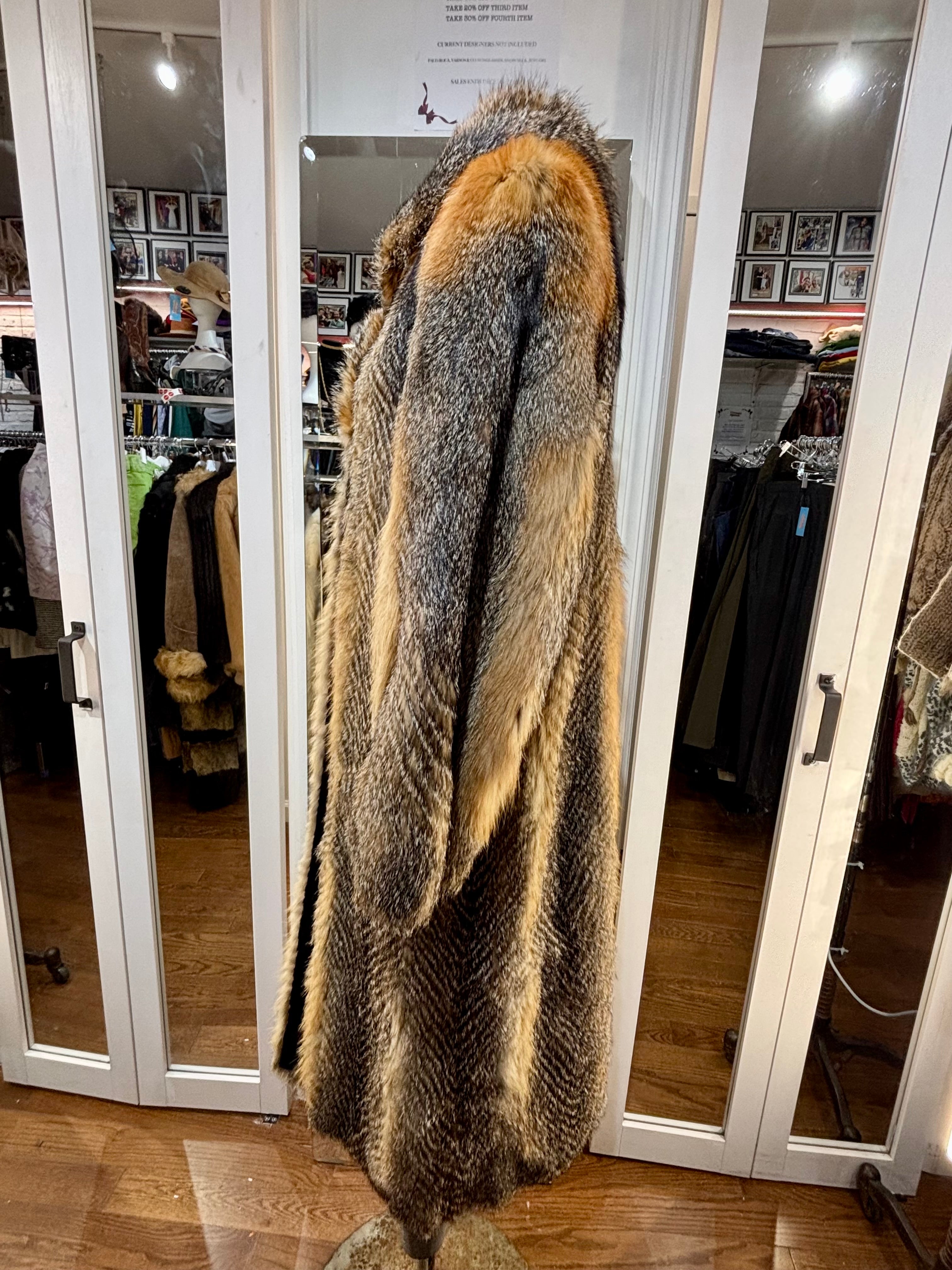 80’s Brown Multicolor Full Length Fox Fur Coat By Boecker