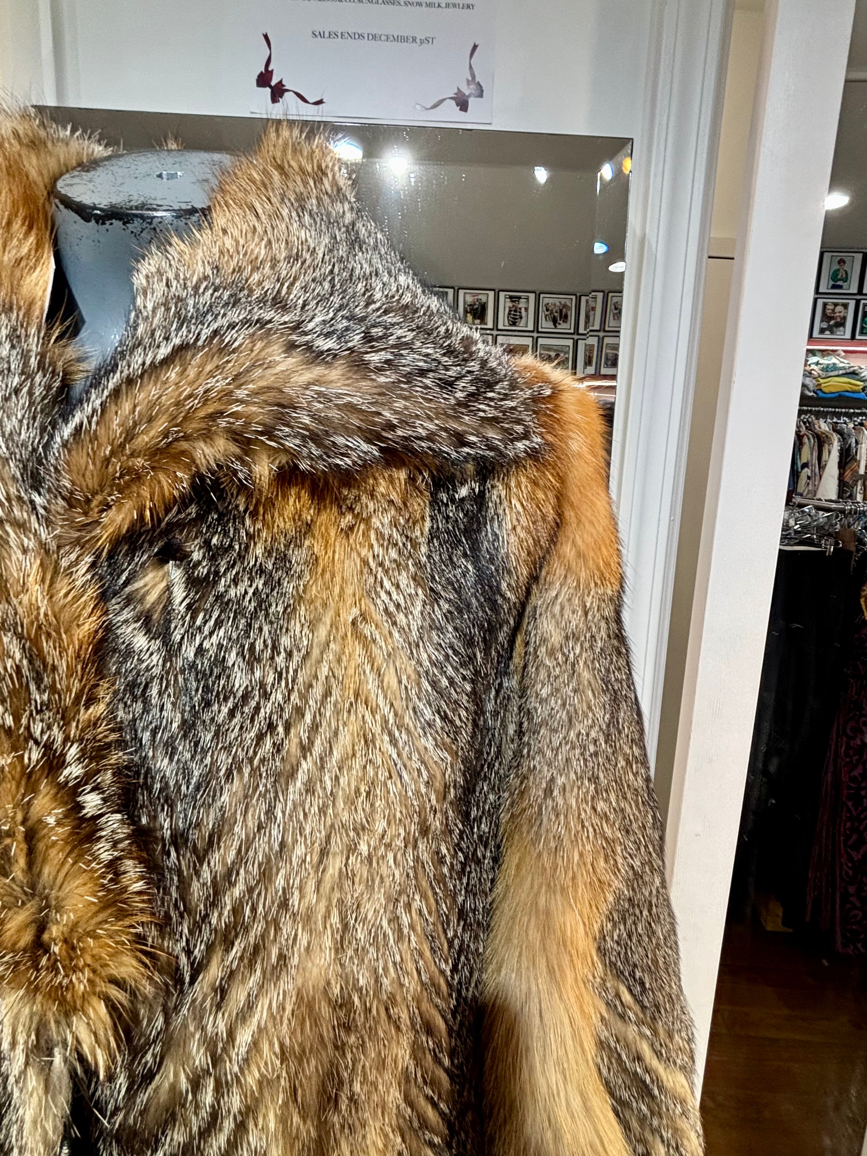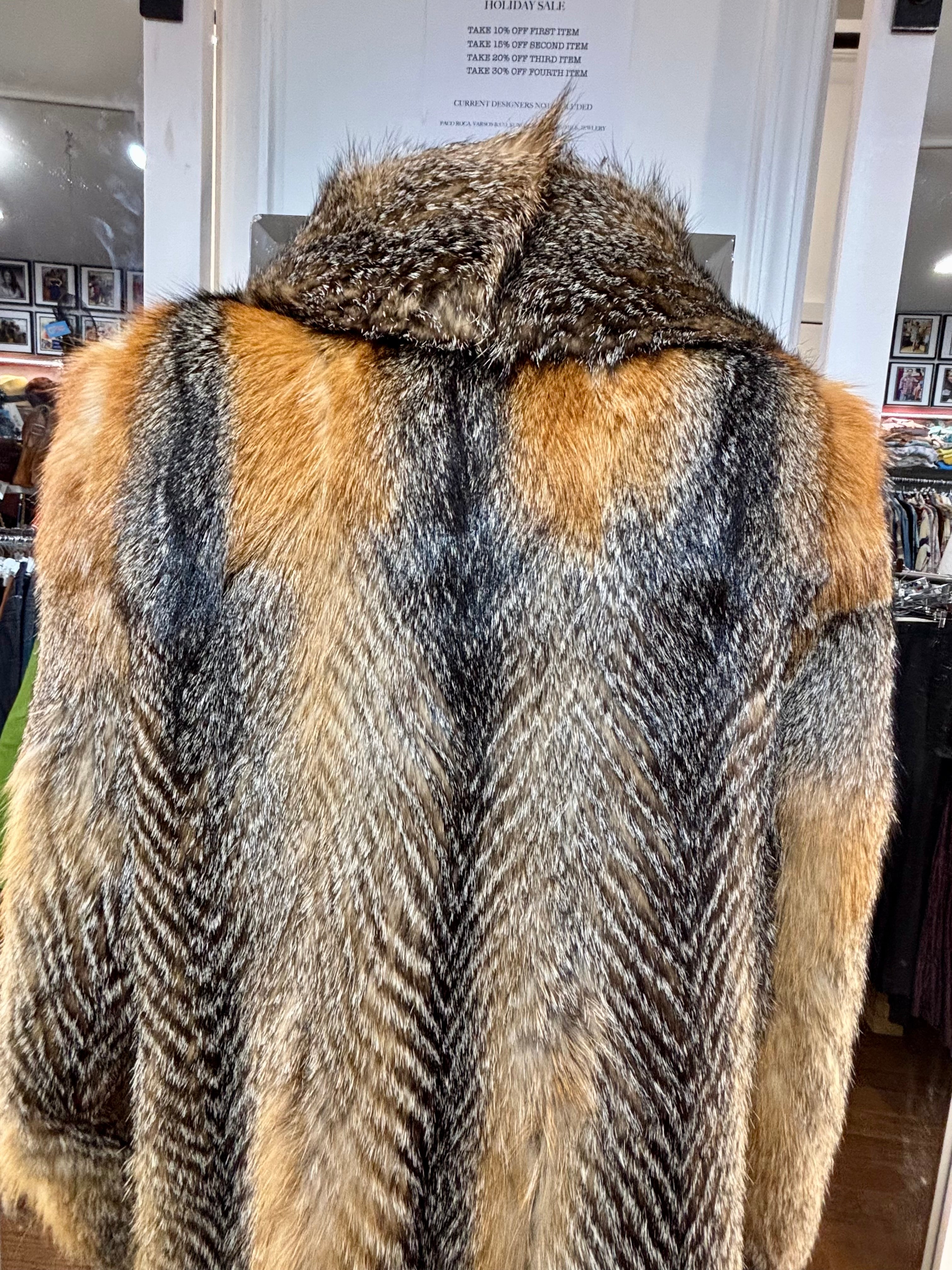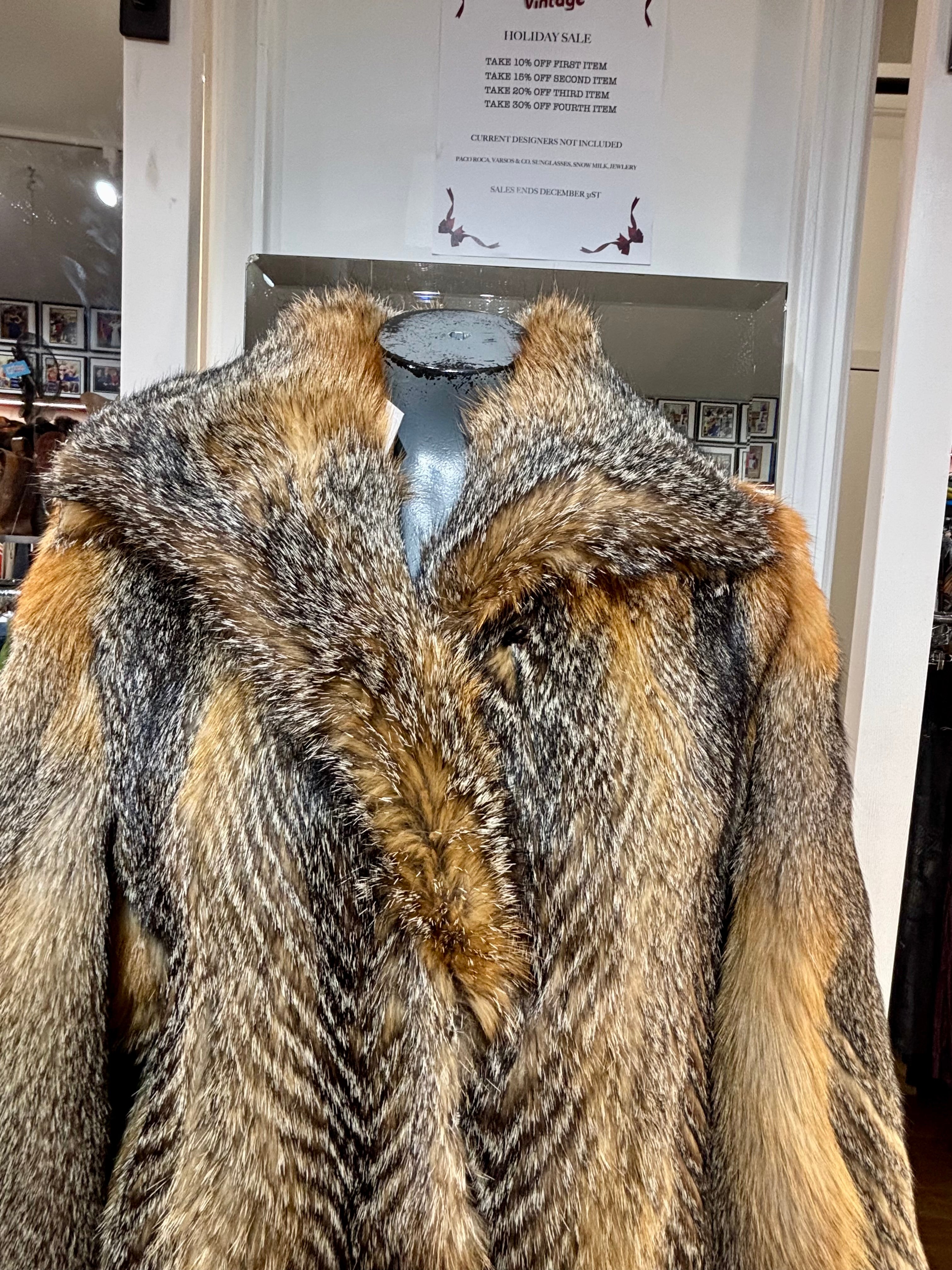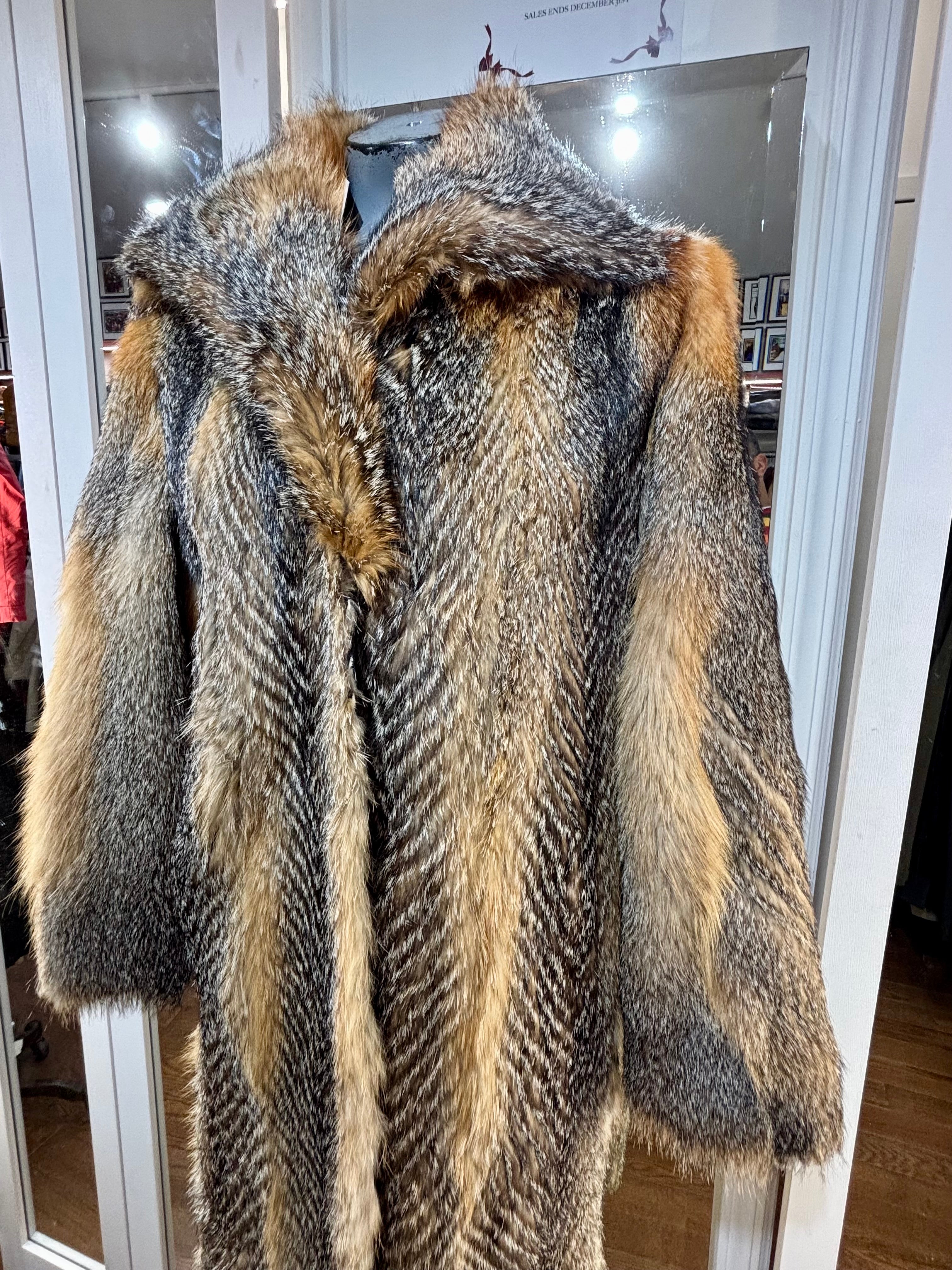 80’s Brown Multicolor Full Length Fox Fur Coat By Boecker