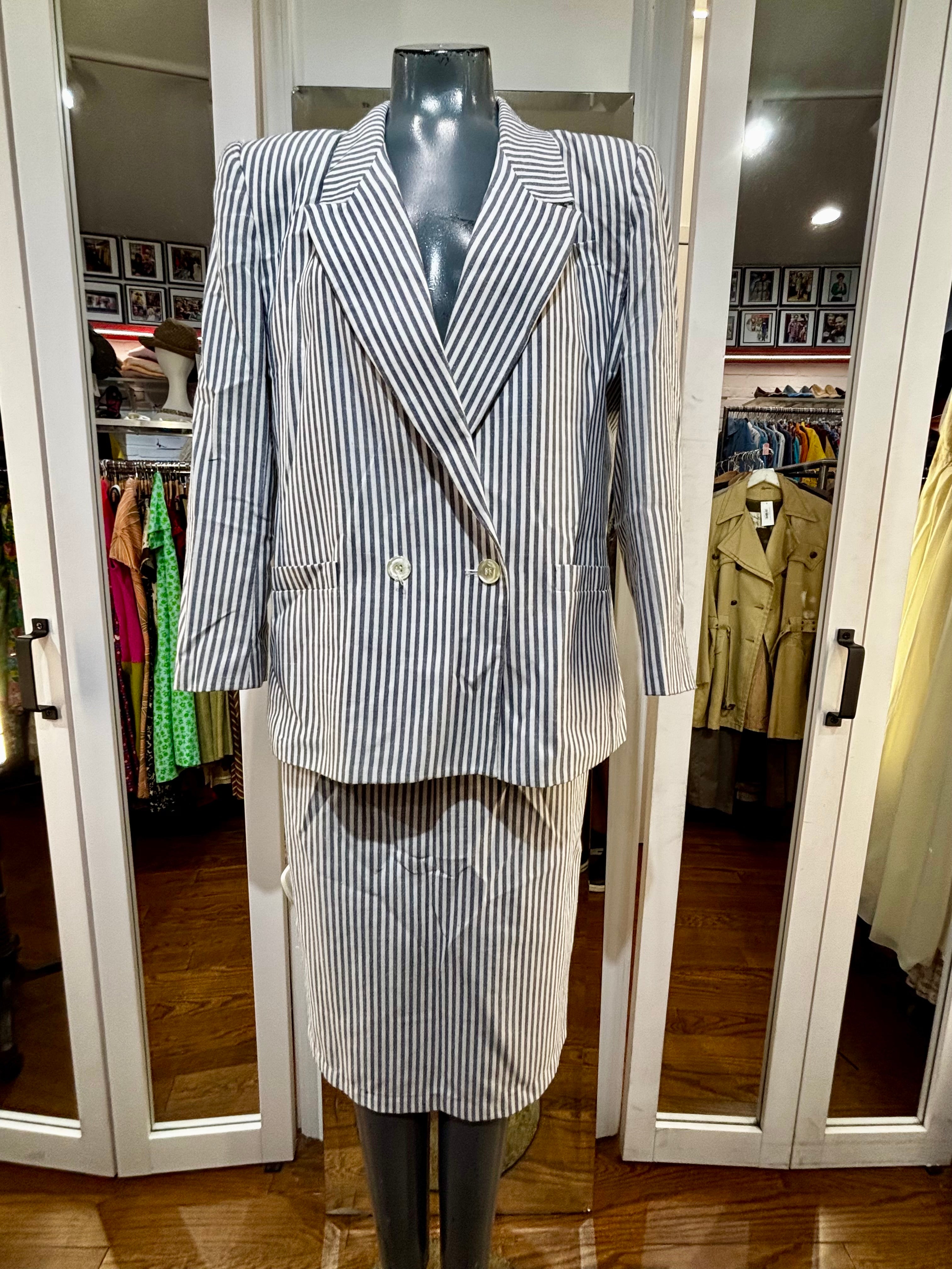80’s Gray & Off White Pinstripes Suit Skirt 2 Piece Set