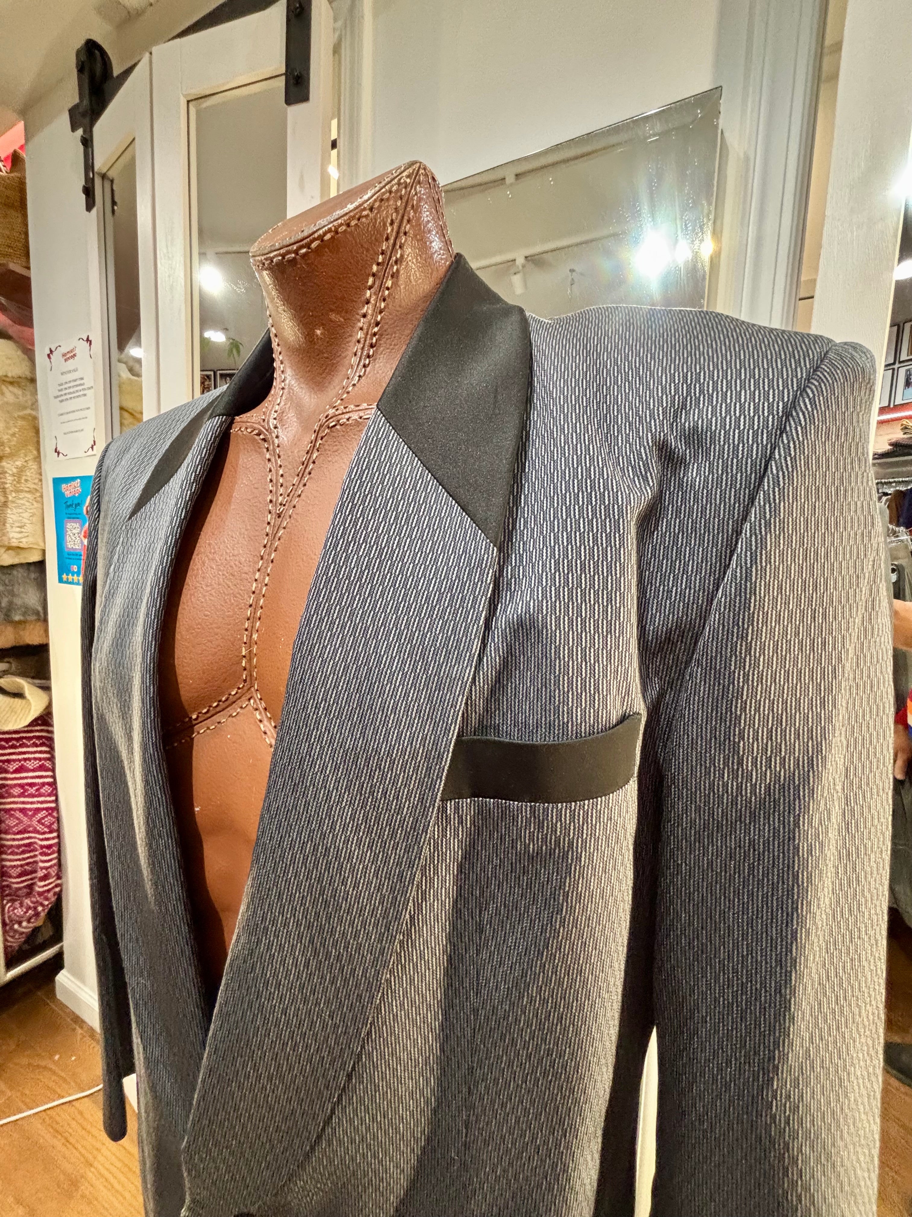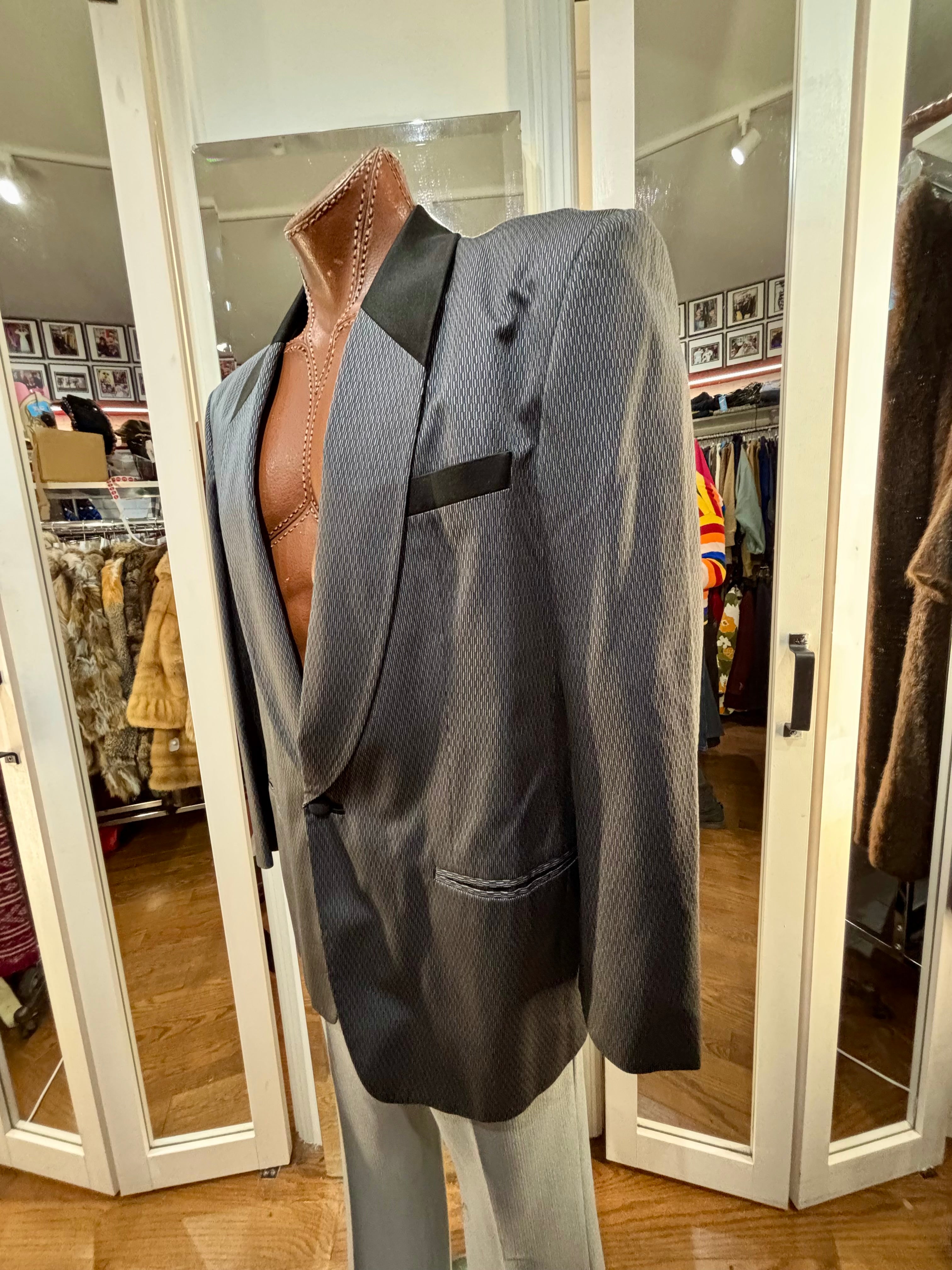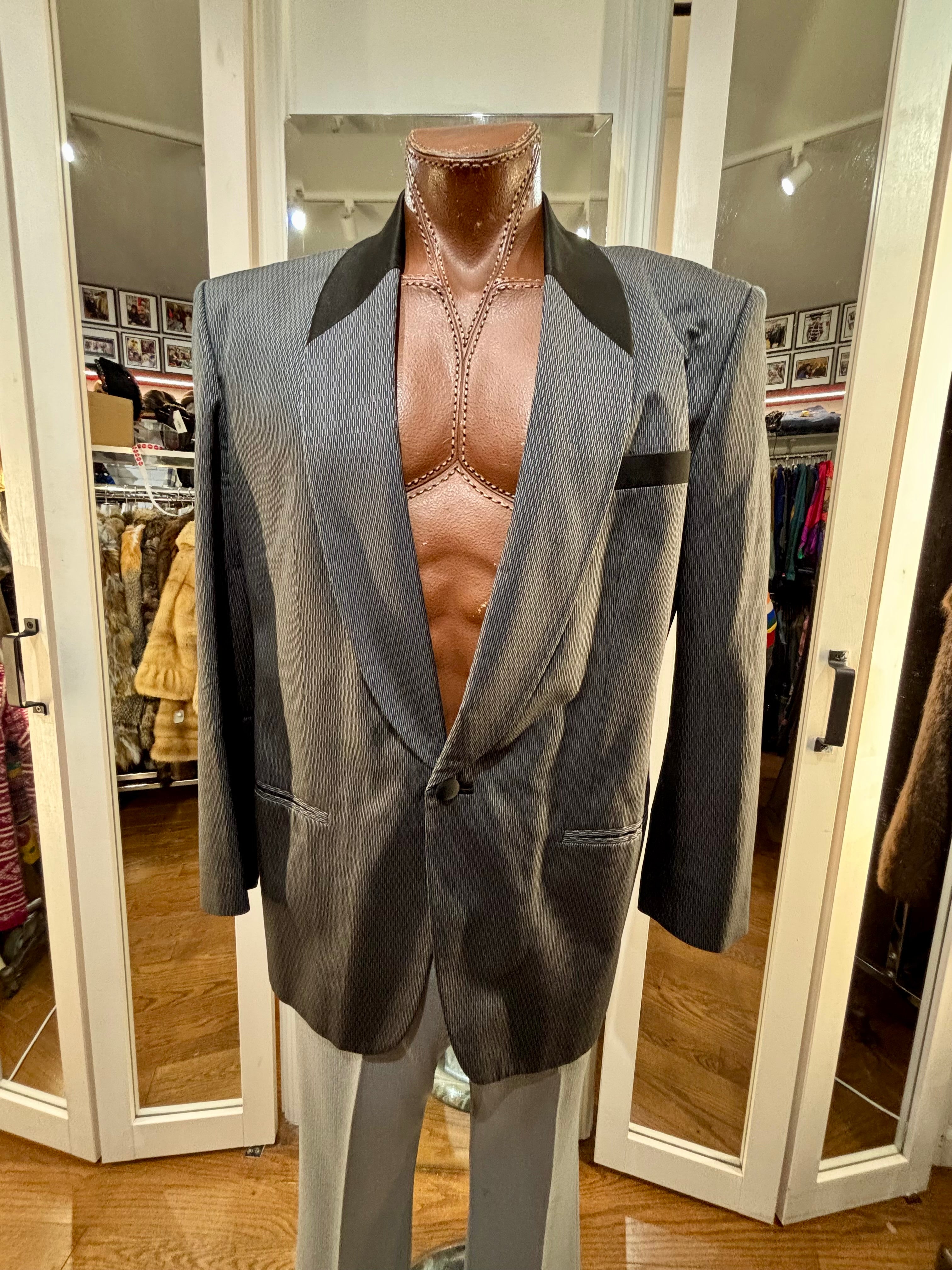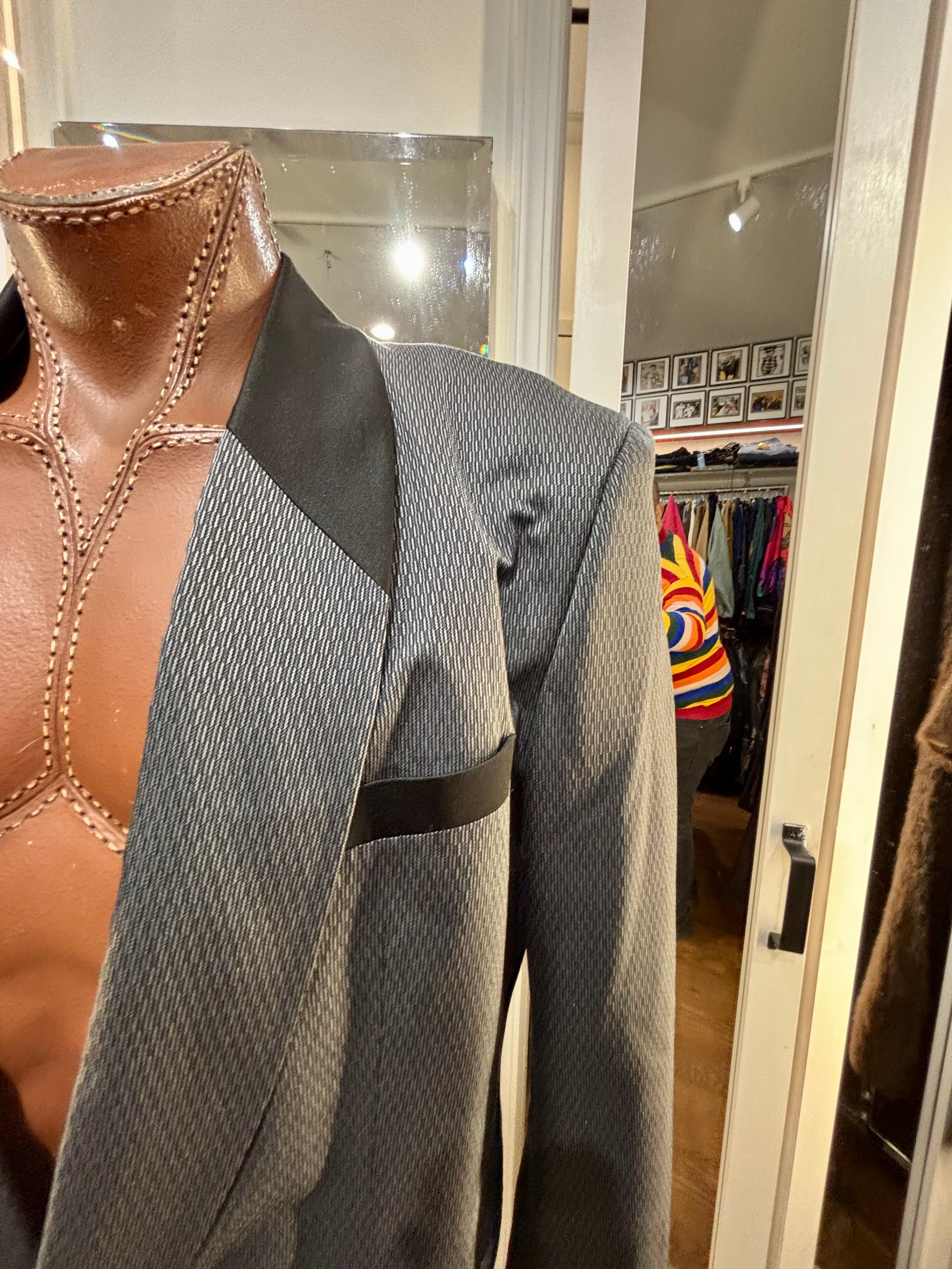 80’s Gray With Black Collar Details Single Breasted Tuxedo Blazer By Missoni