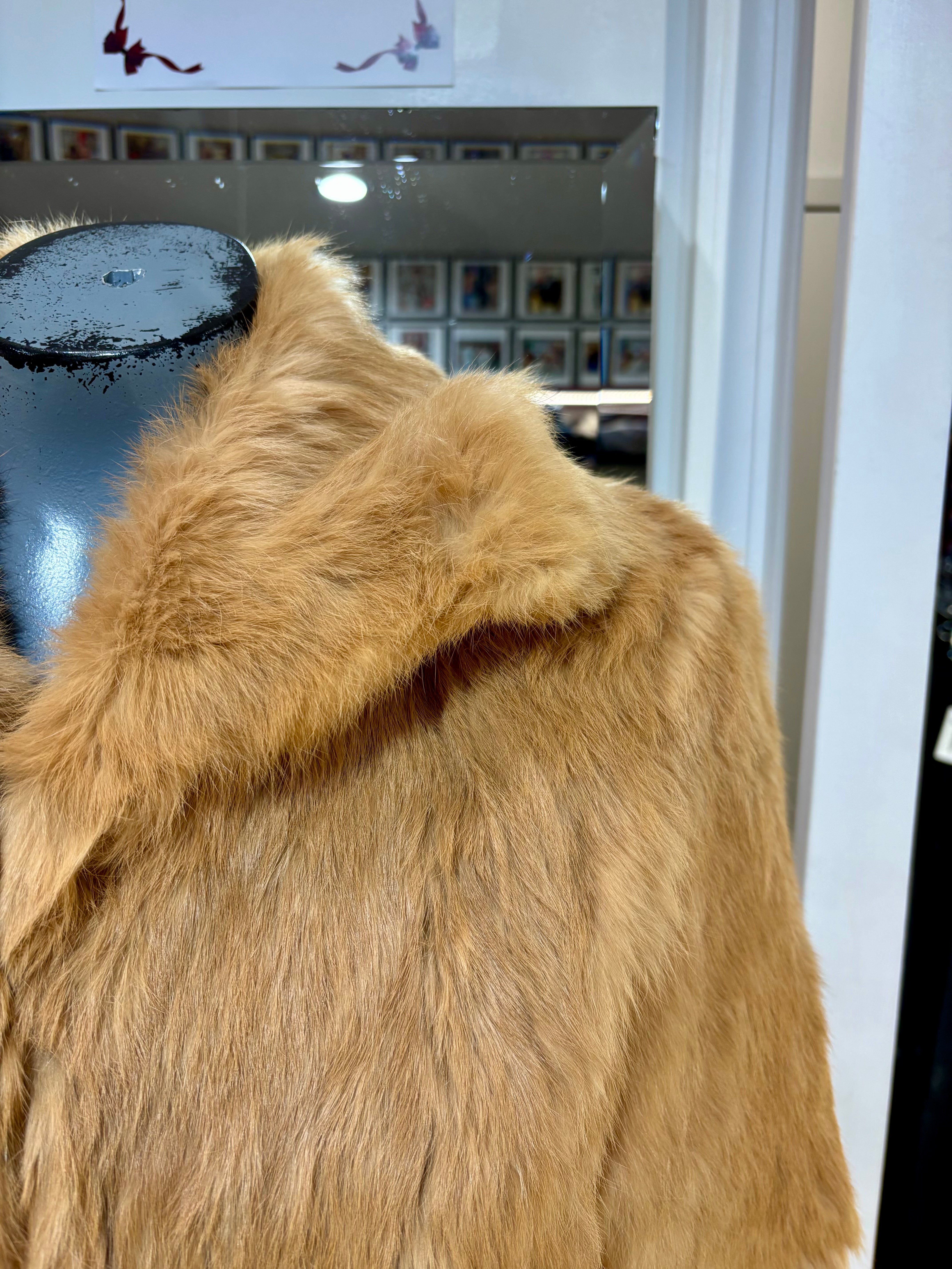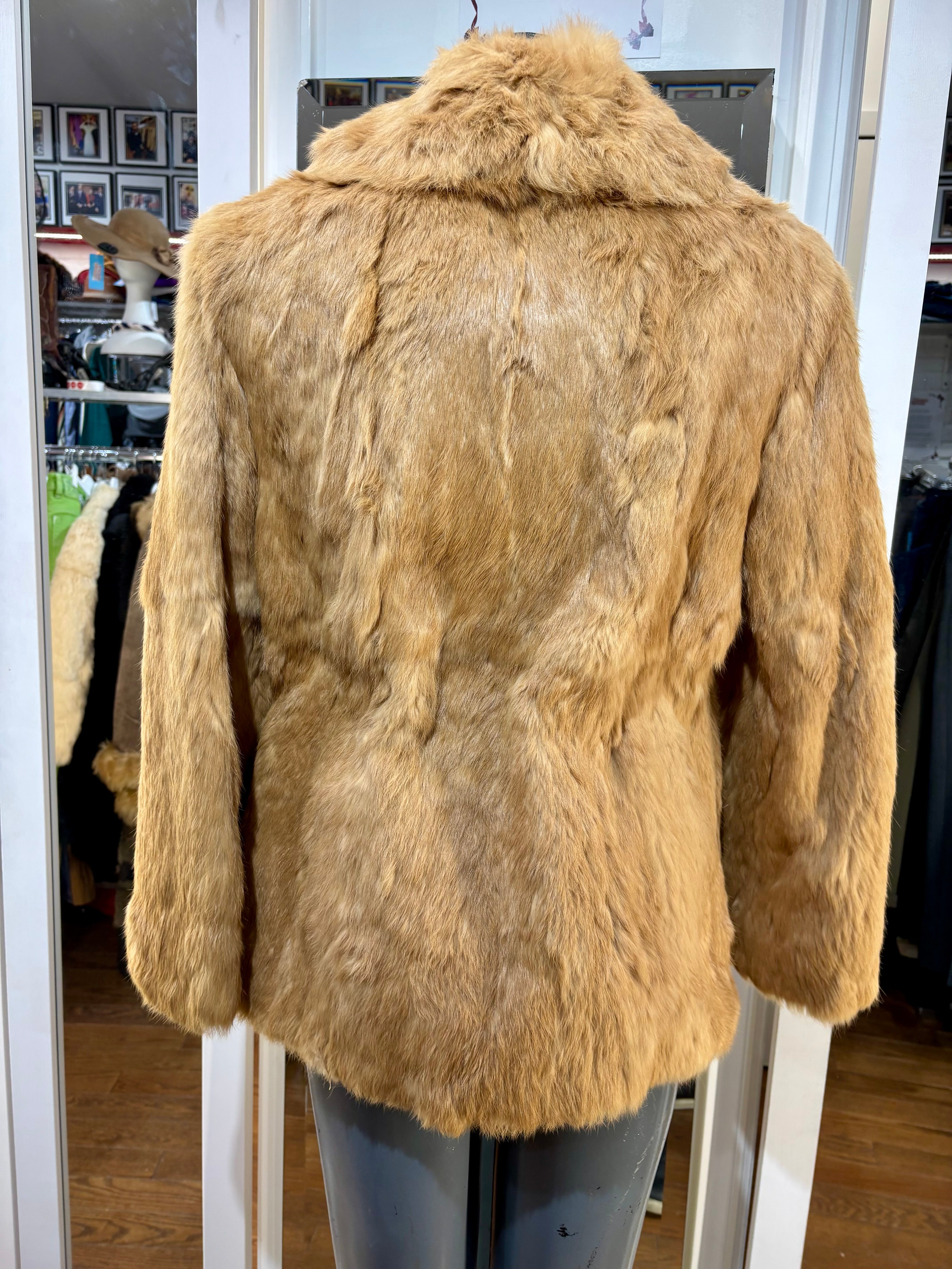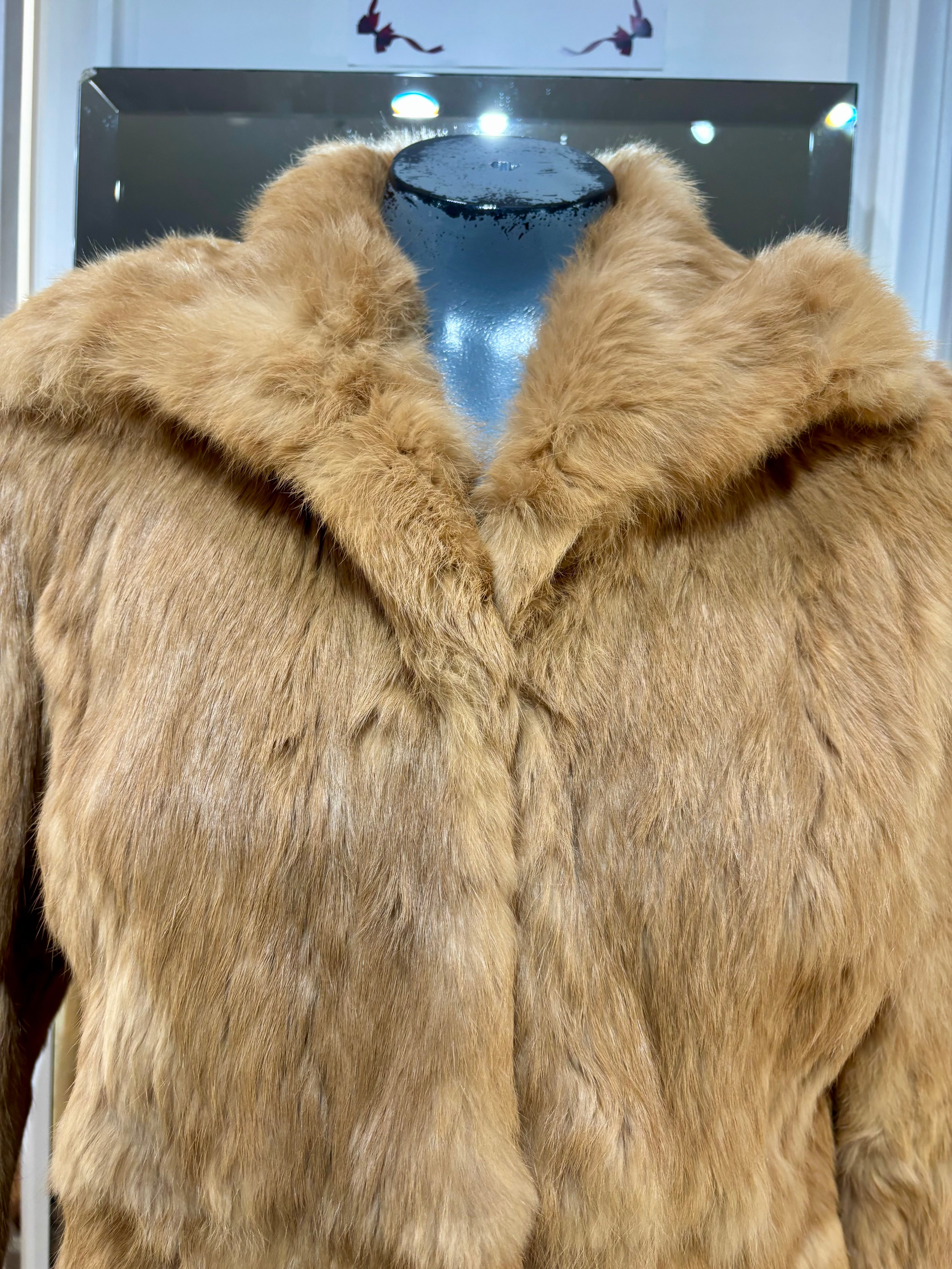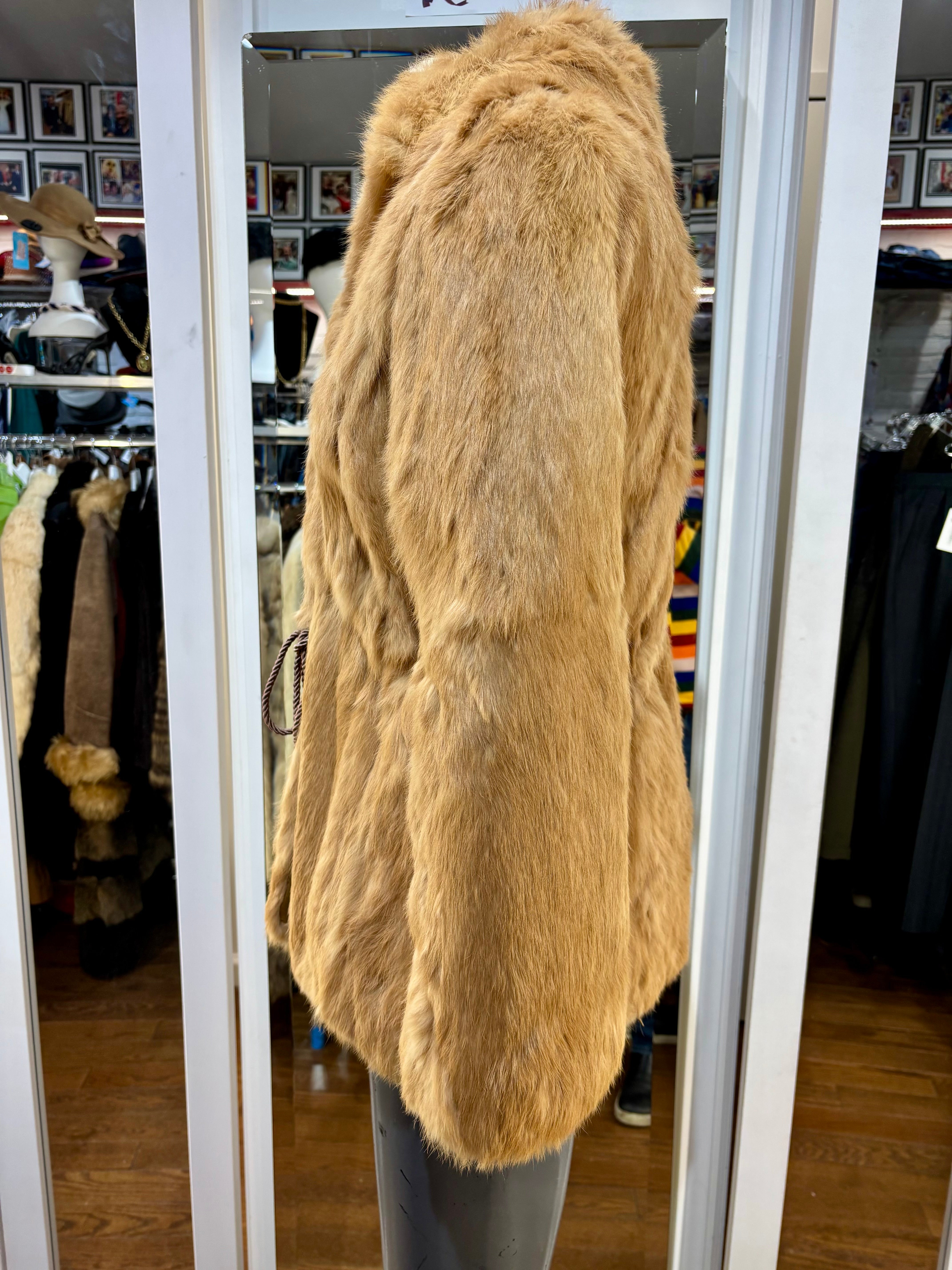 80’s Latte Brown Short Rabbit Fur Coat With String Cinch Belt