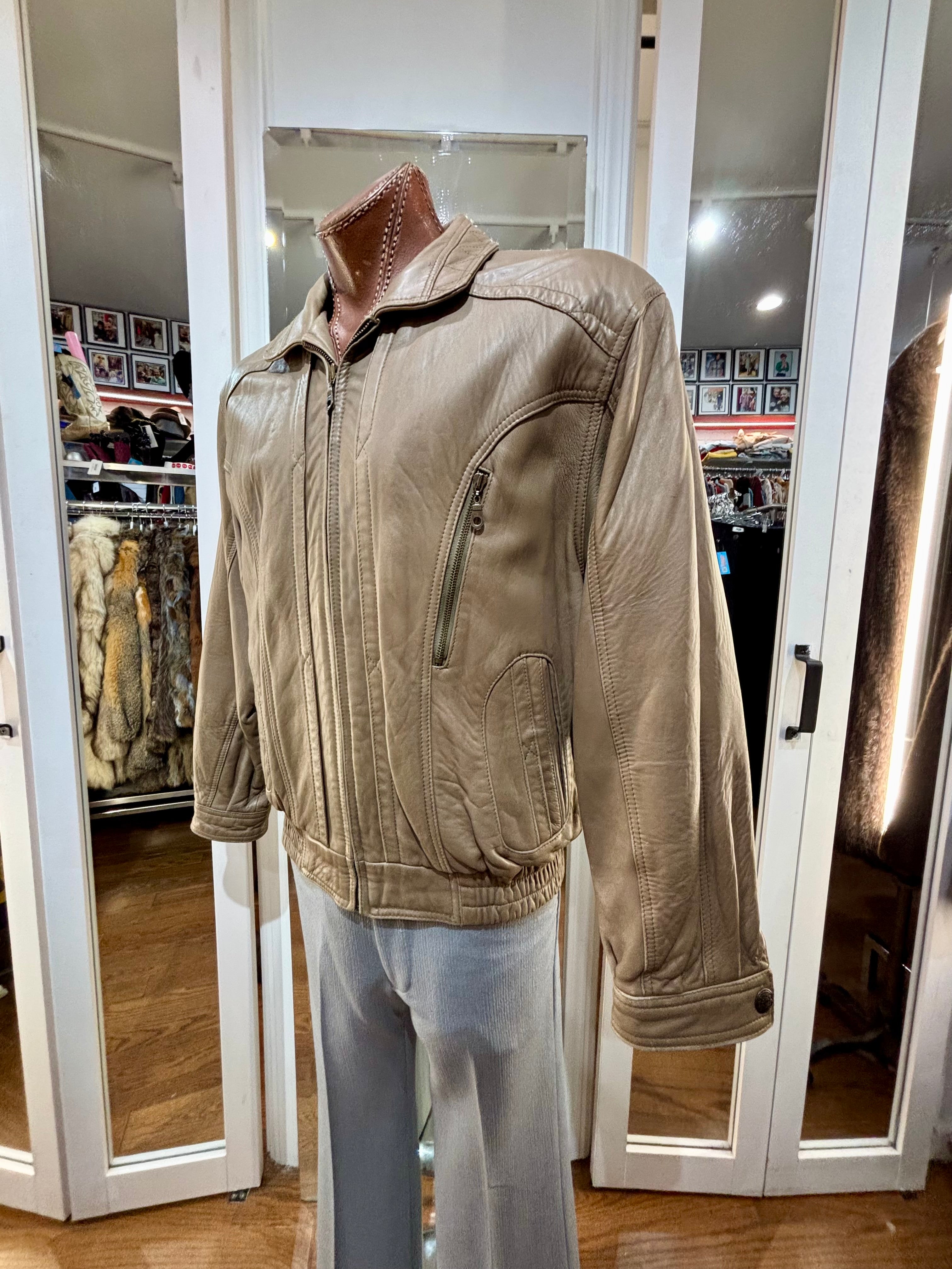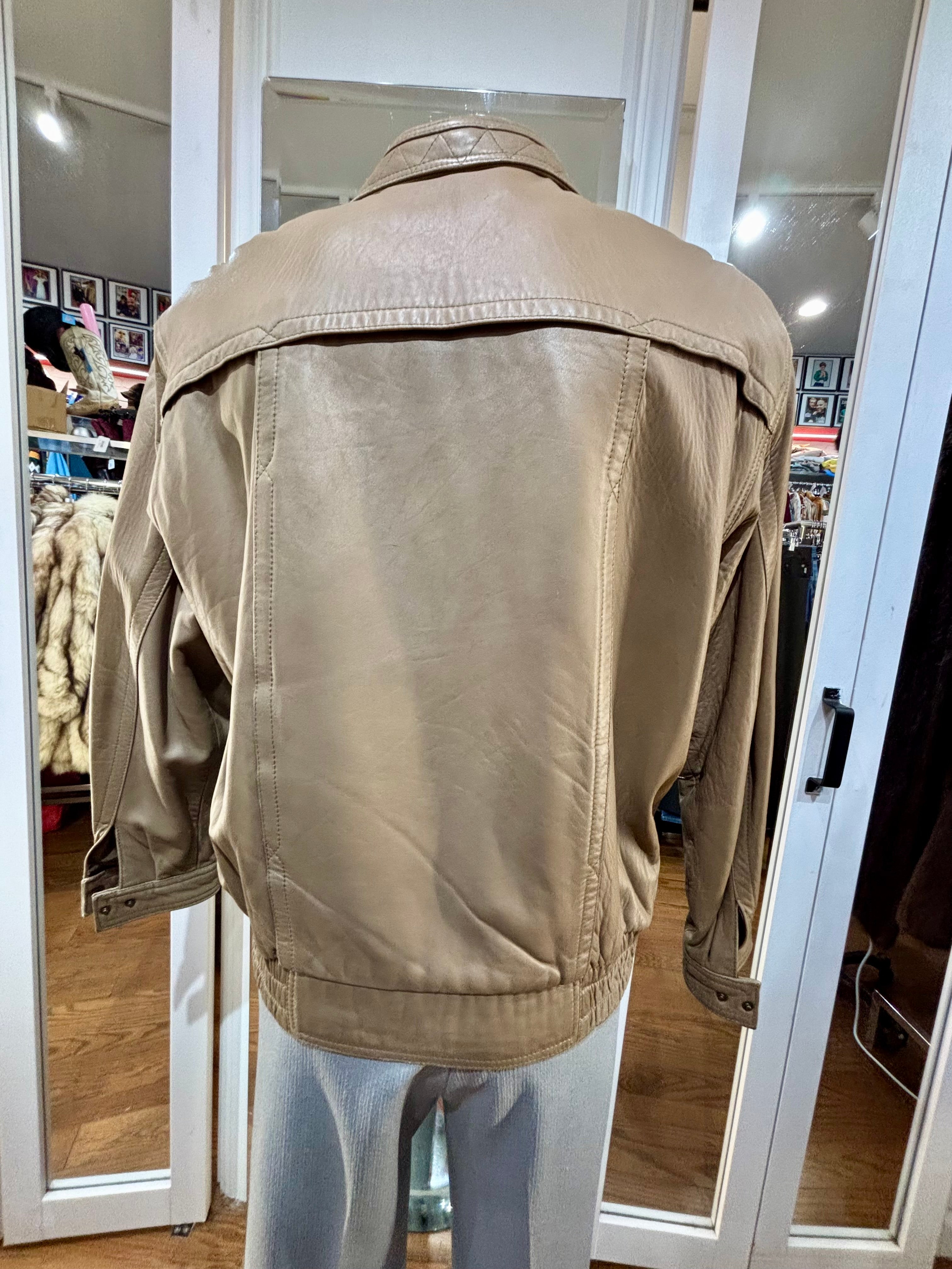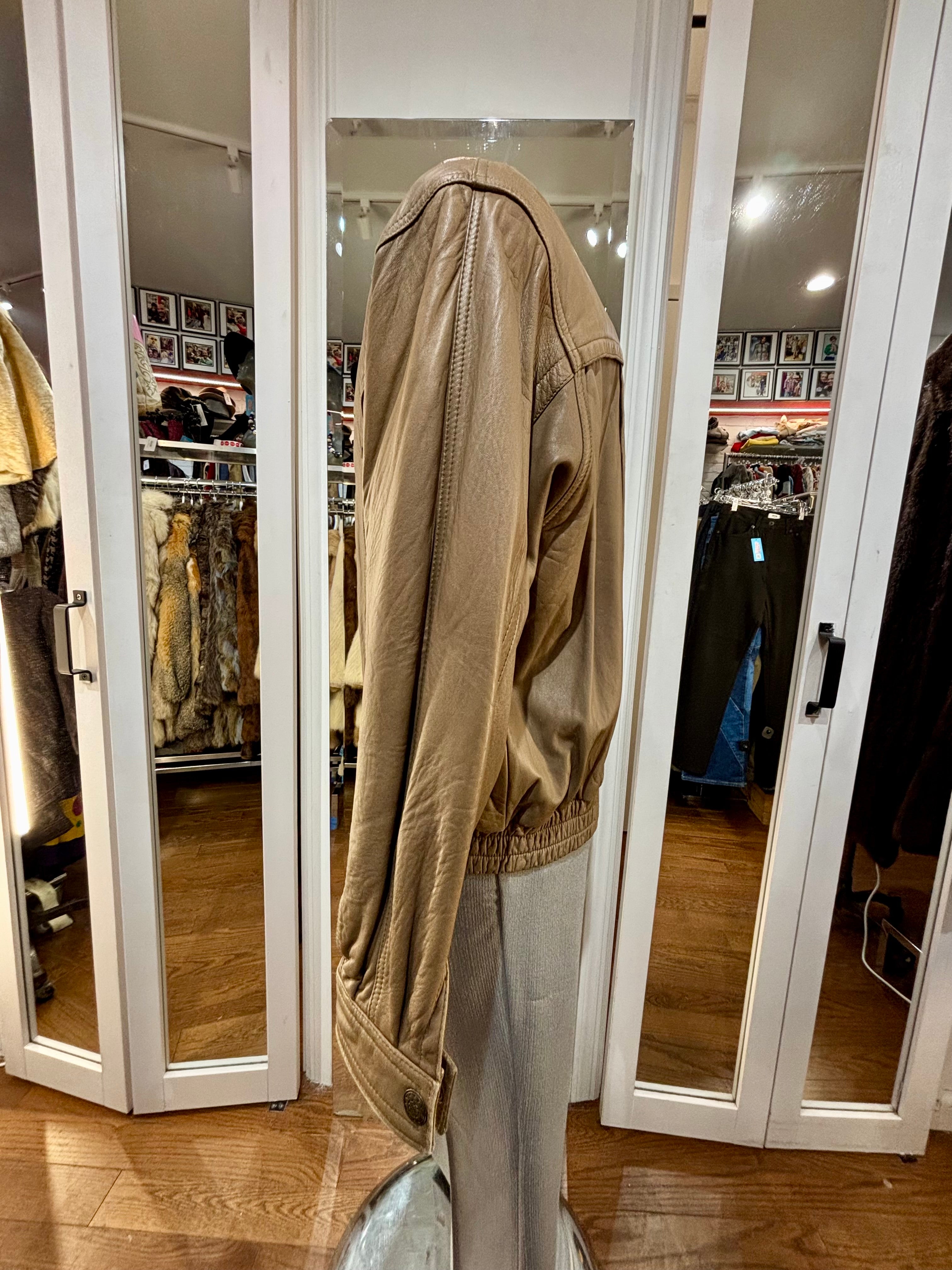 80’s Light Brown Leather Zip Bomber Jacket By Itallio