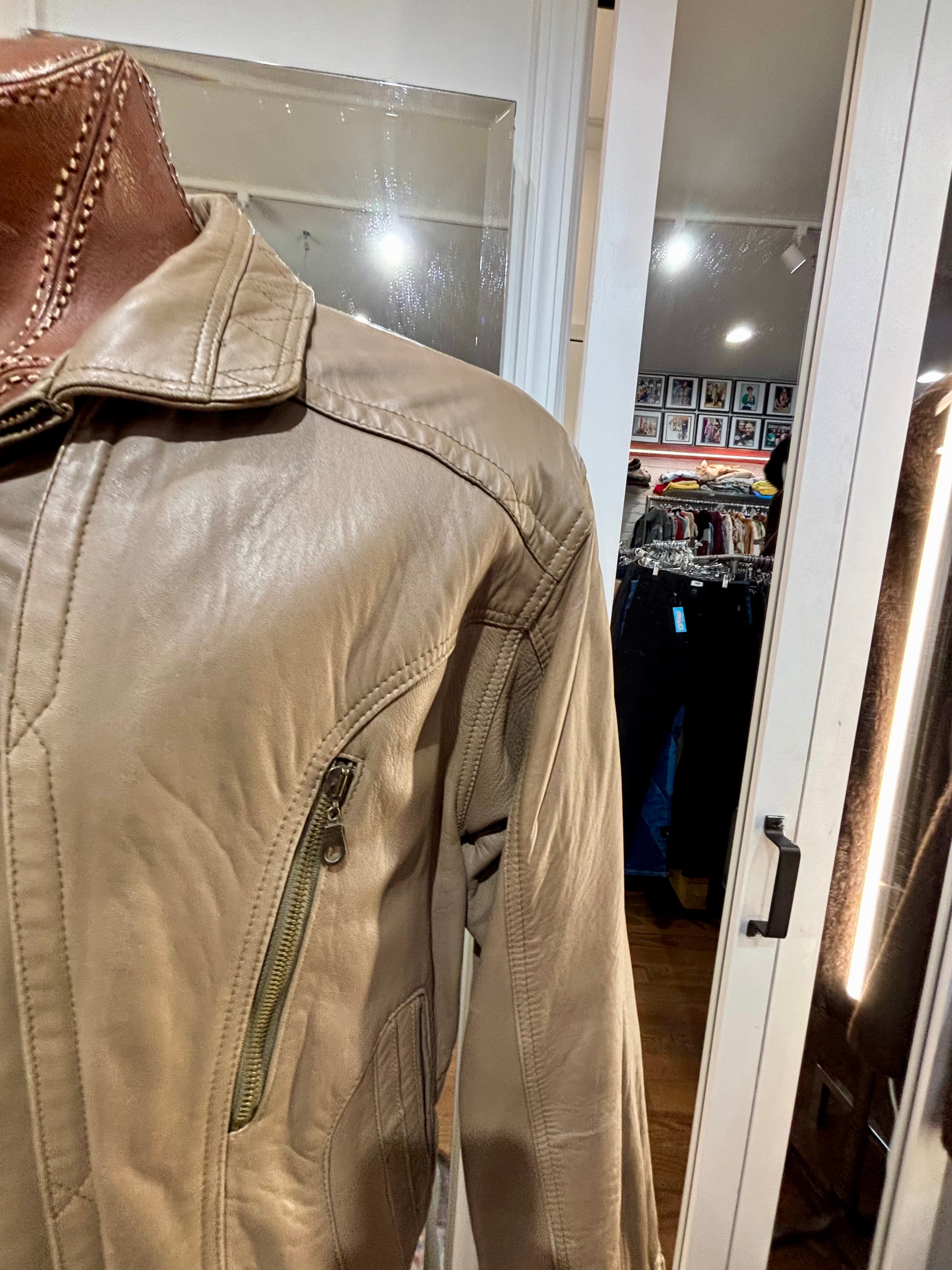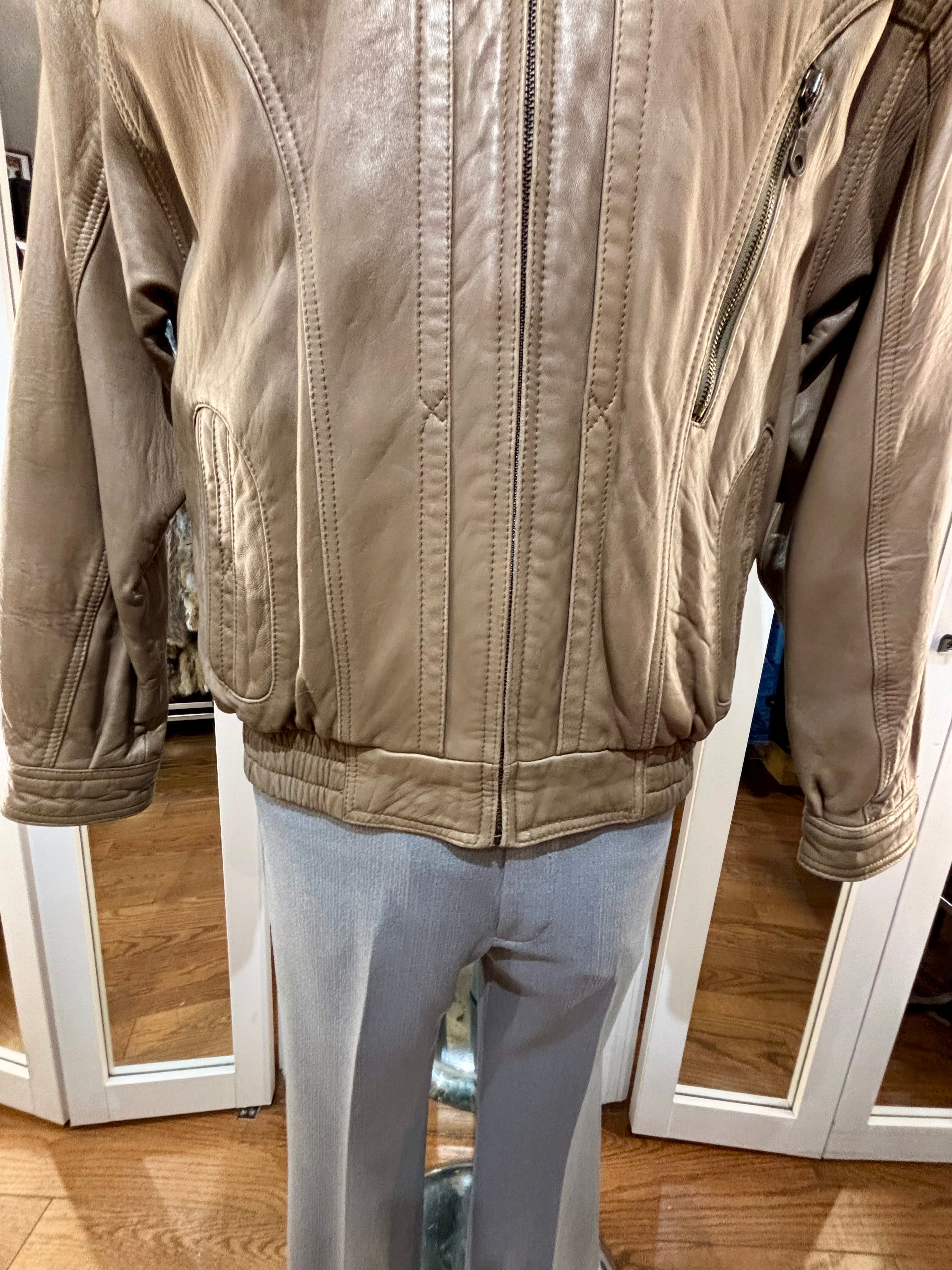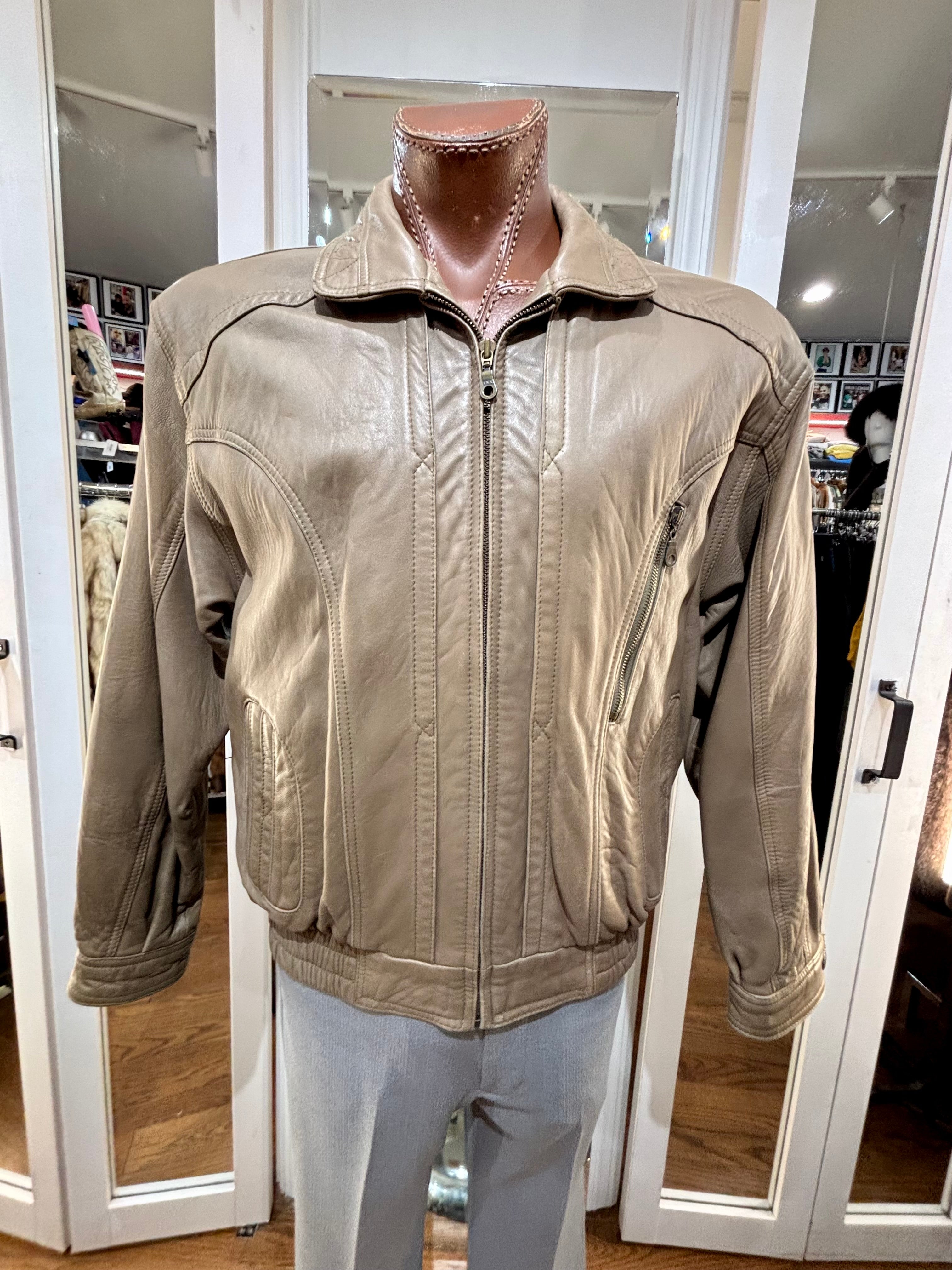 80’s Light Brown Leather Zip Bomber Jacket By Itallio