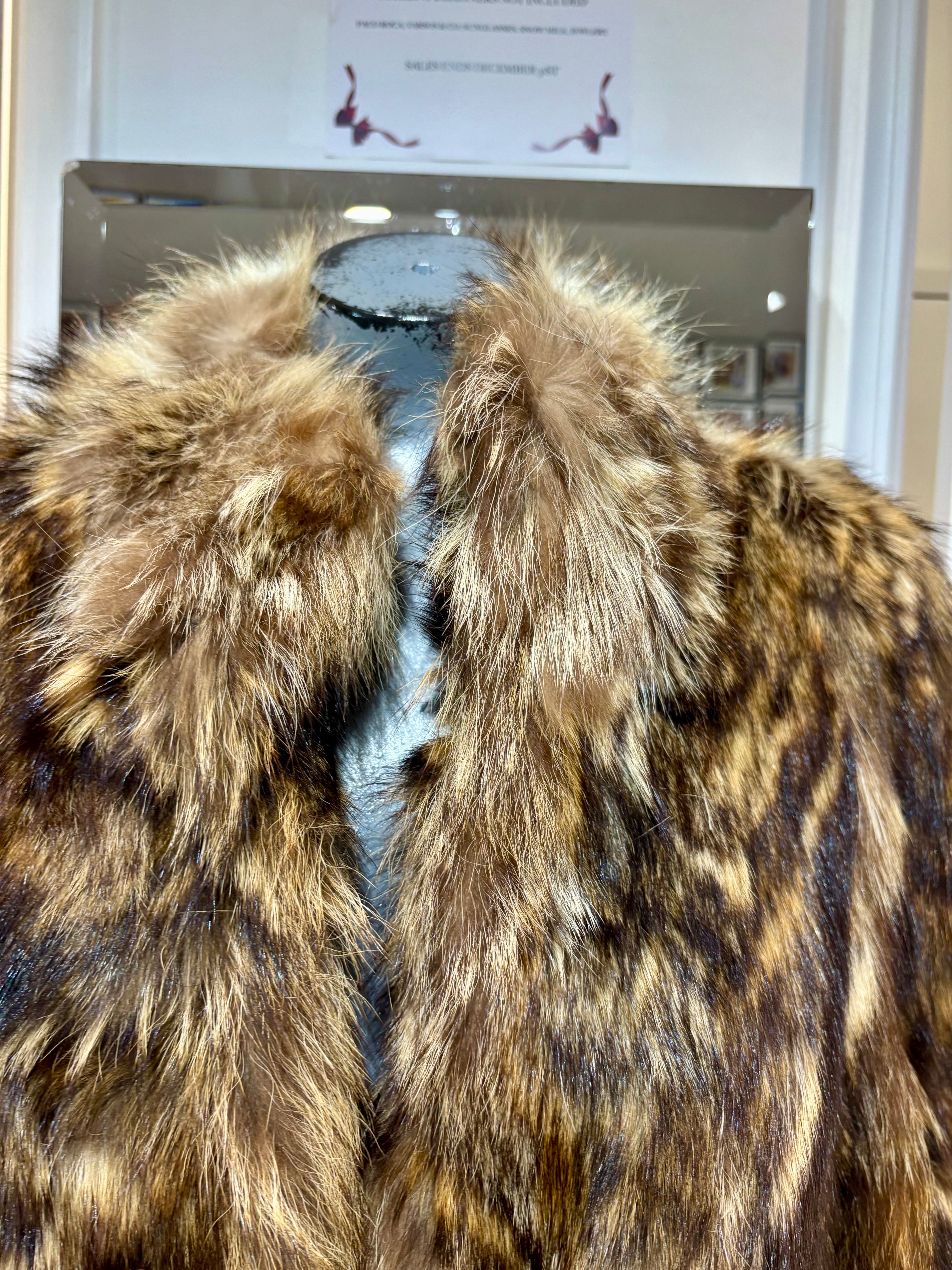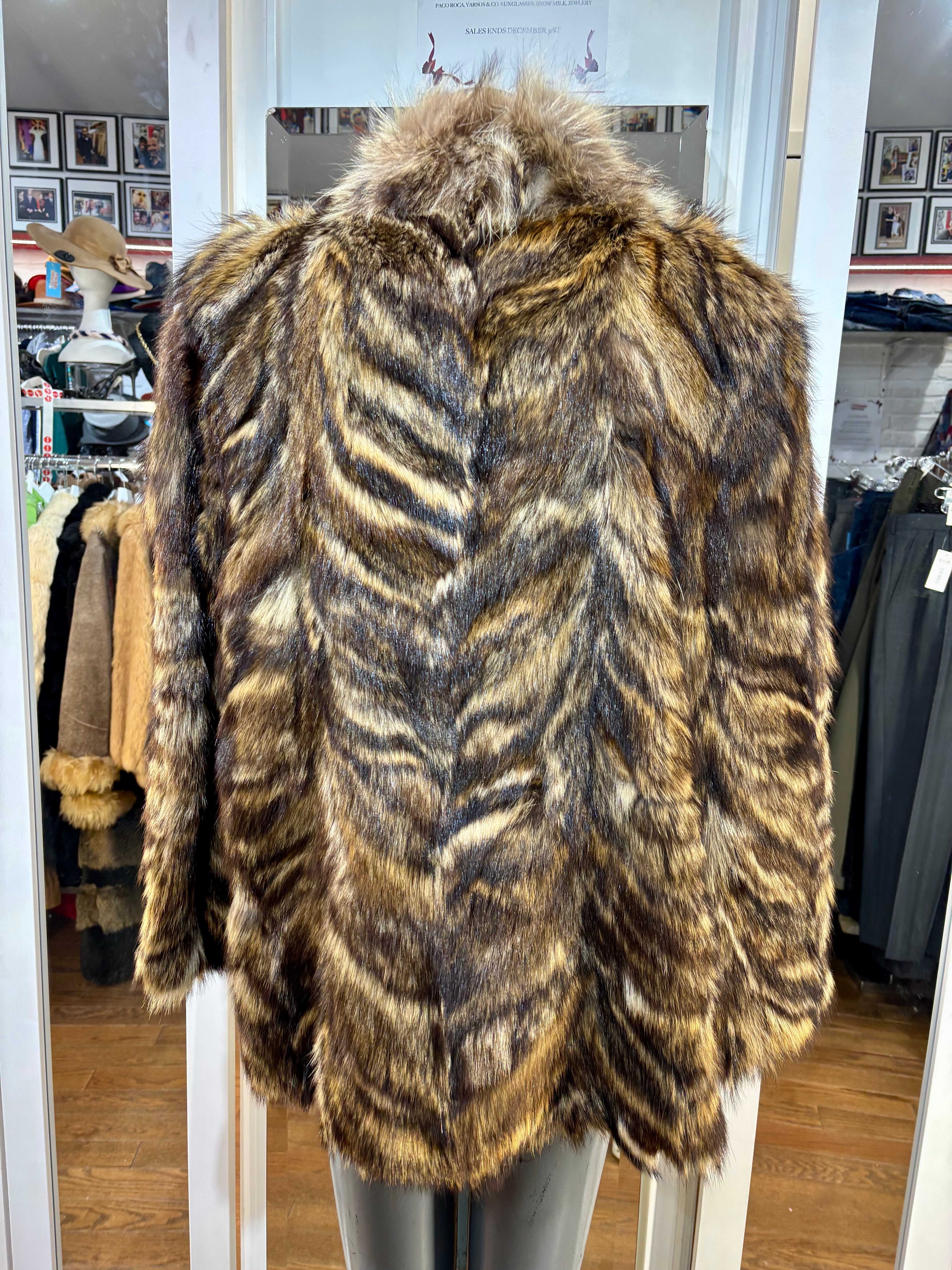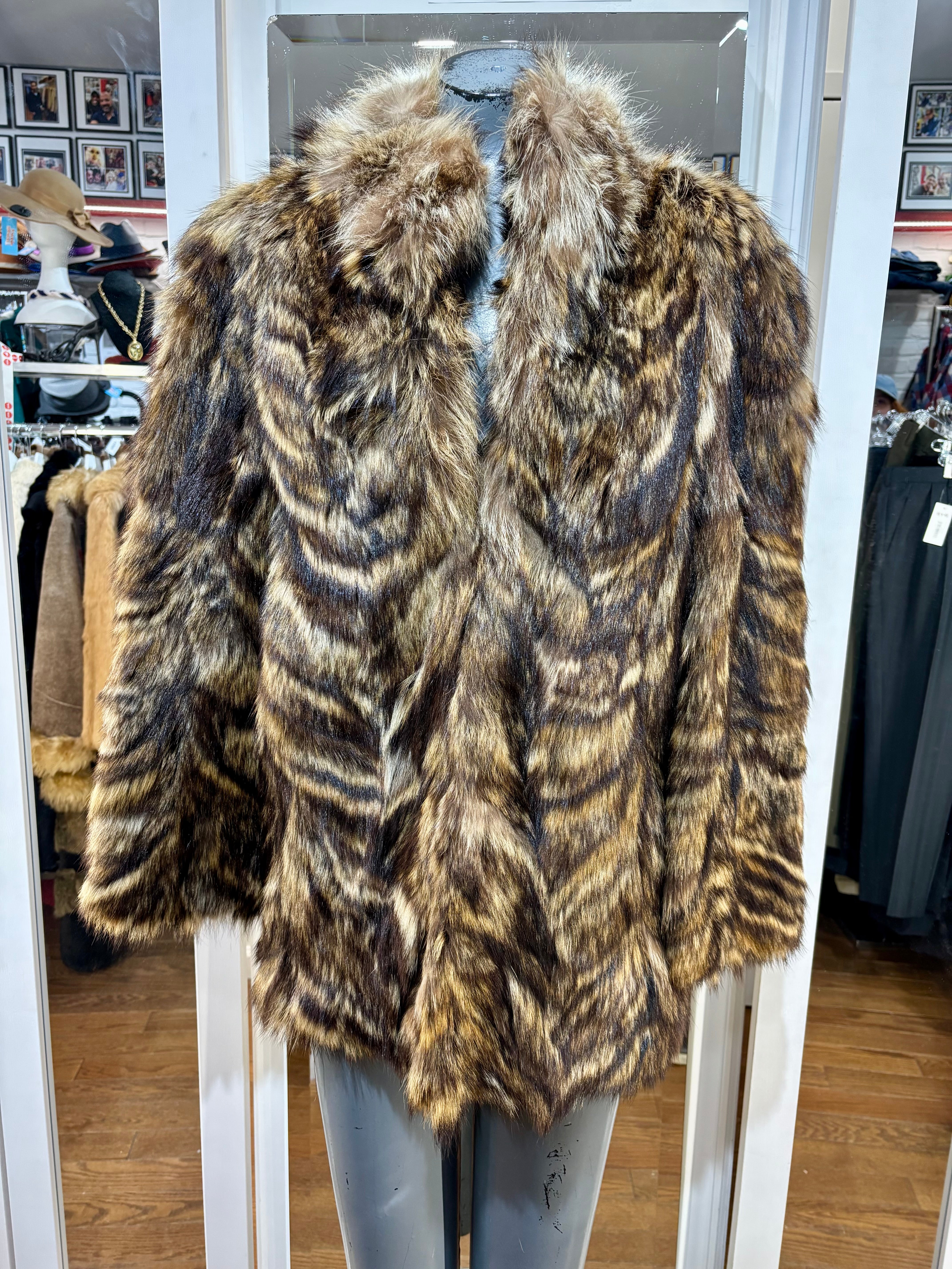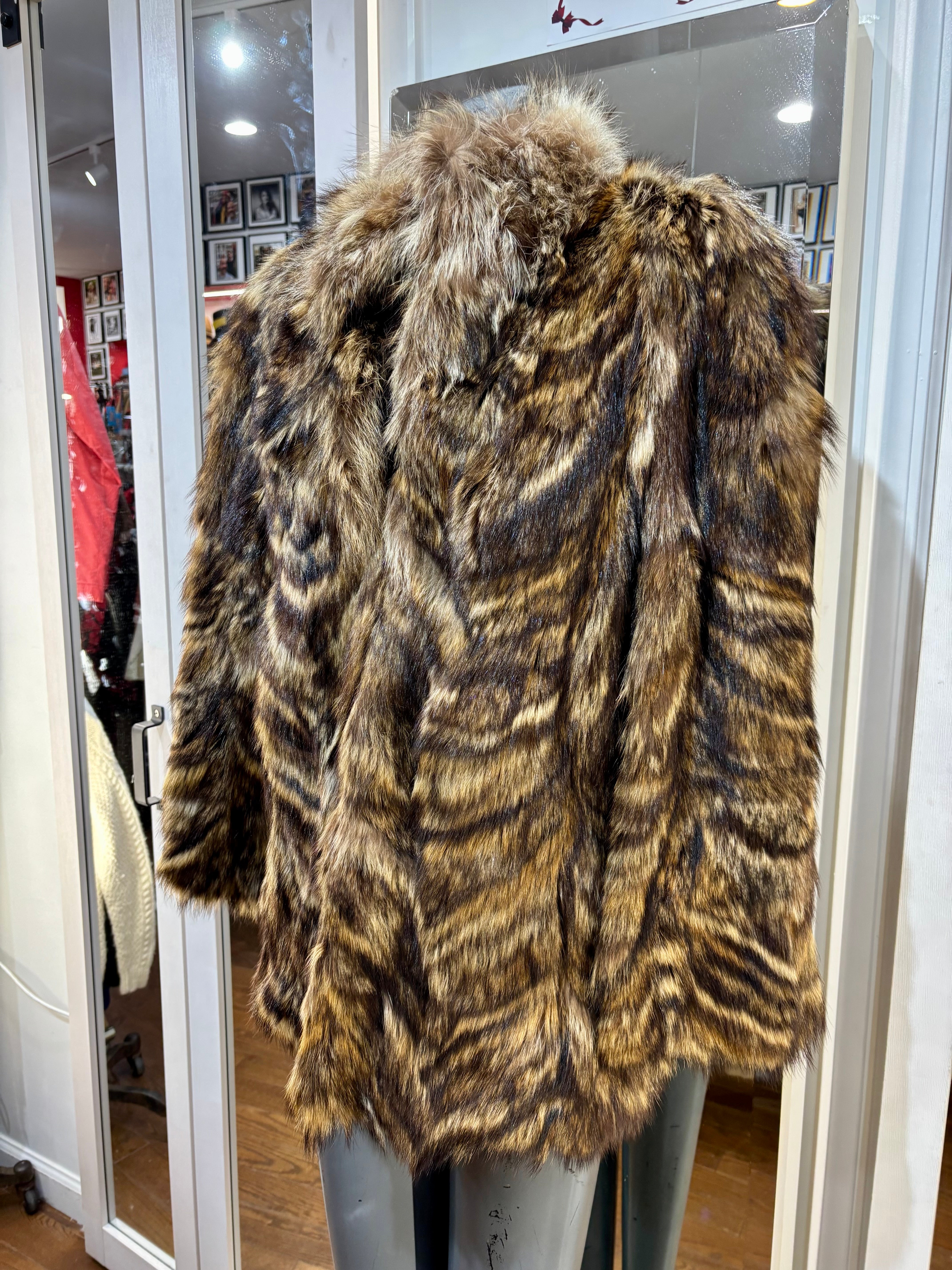 80’s Multicolor Brown Short Coyote Fur Coat By Topaz Furs