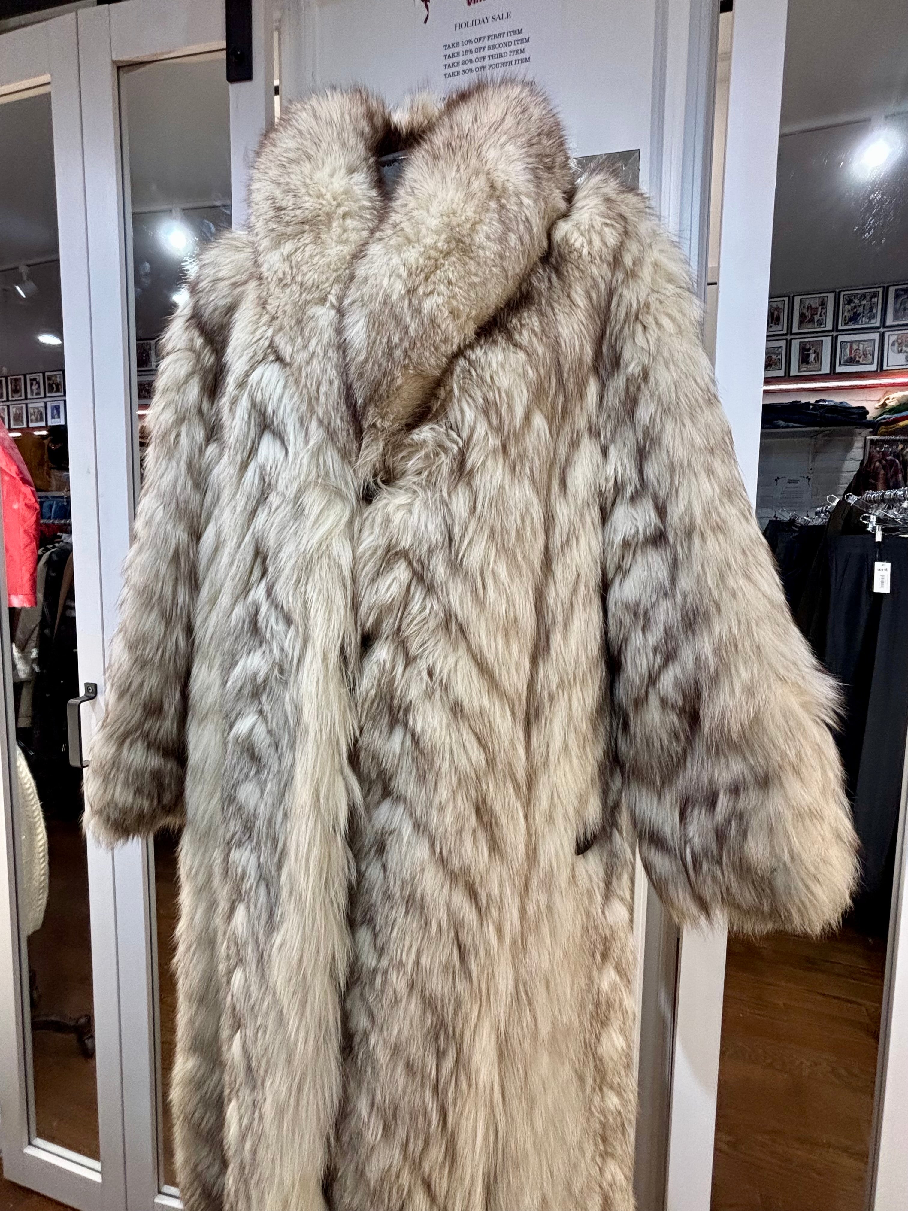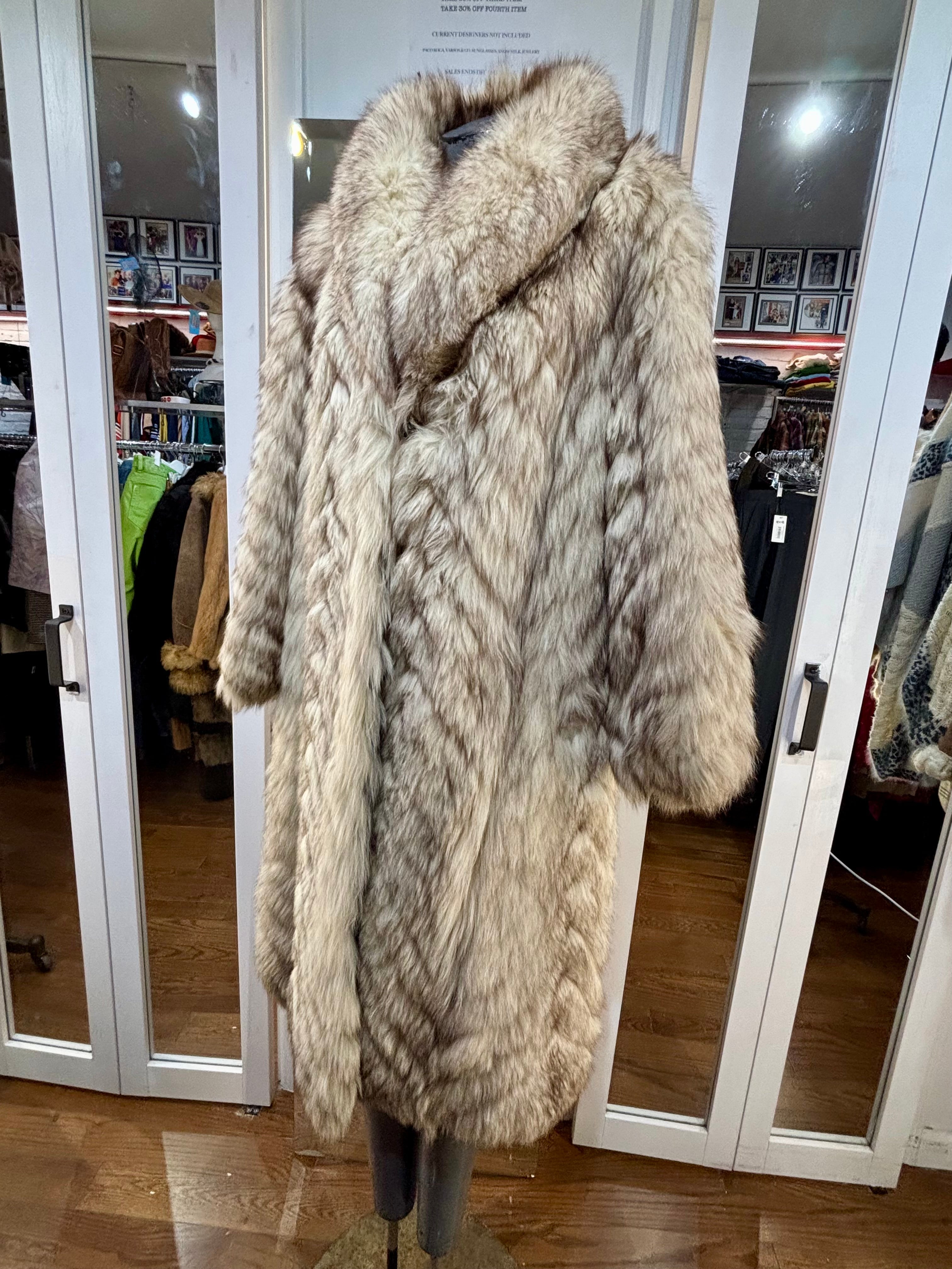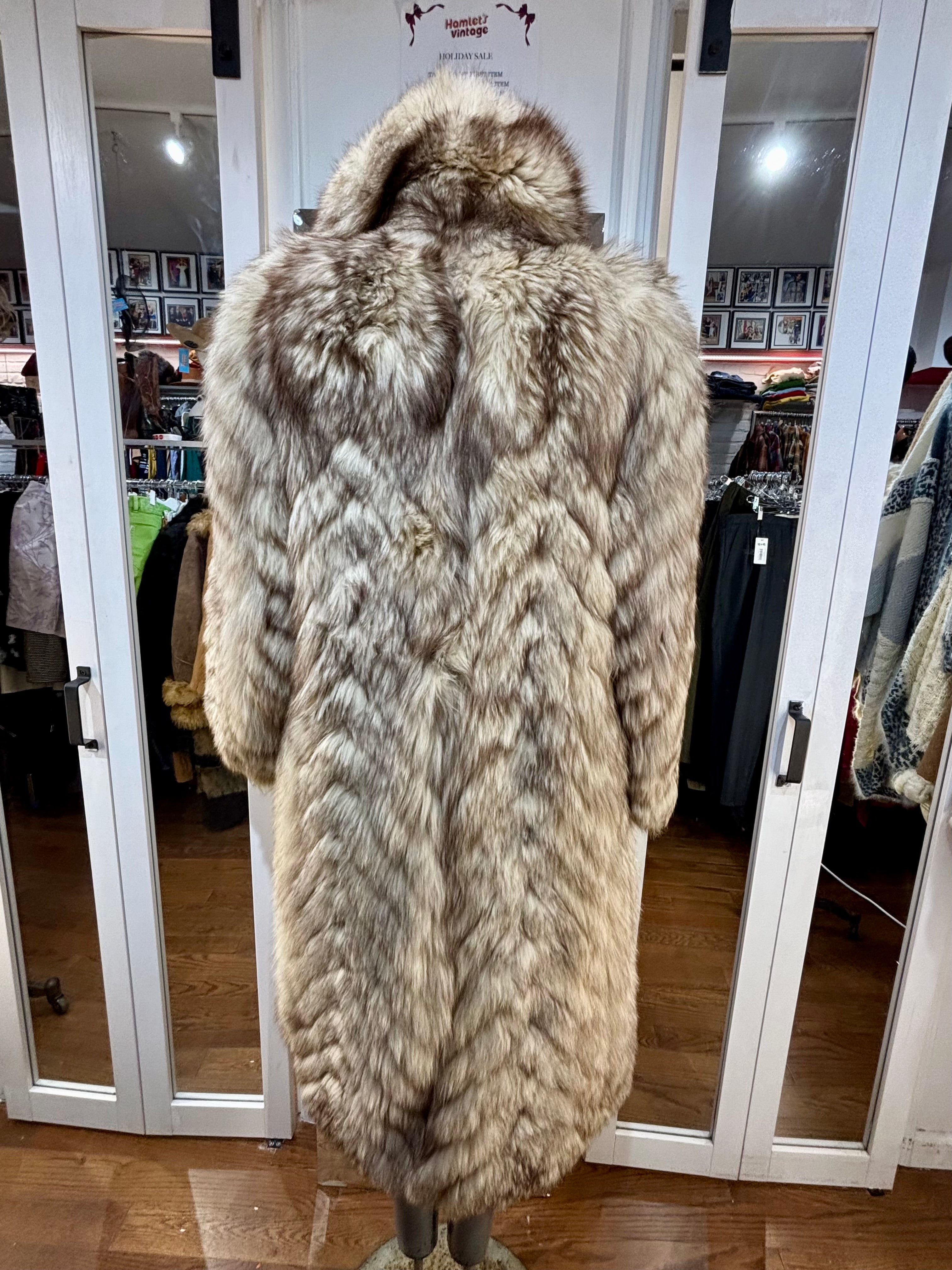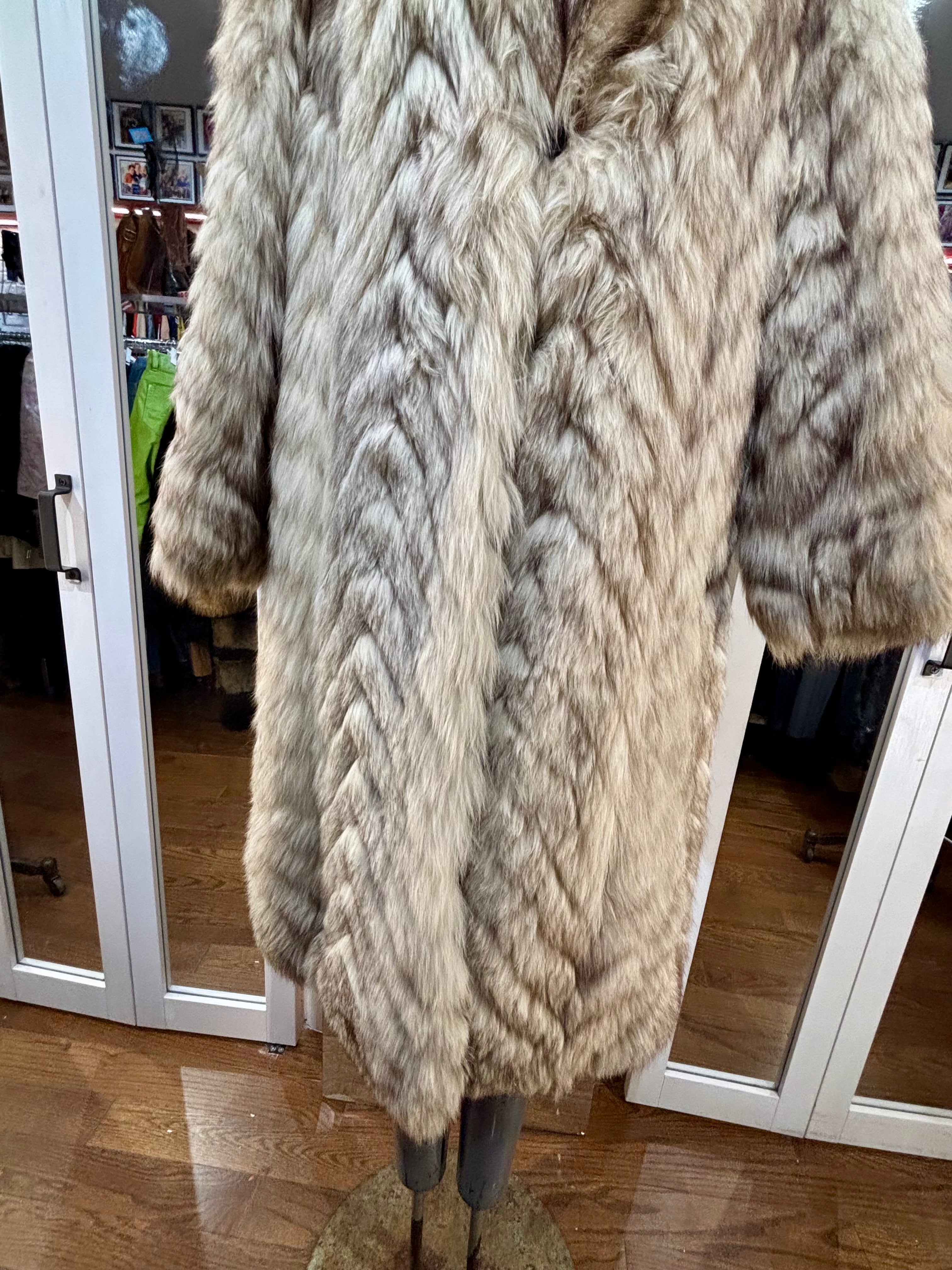 80’s Off White & Gray Full Length Fox Fur Coat