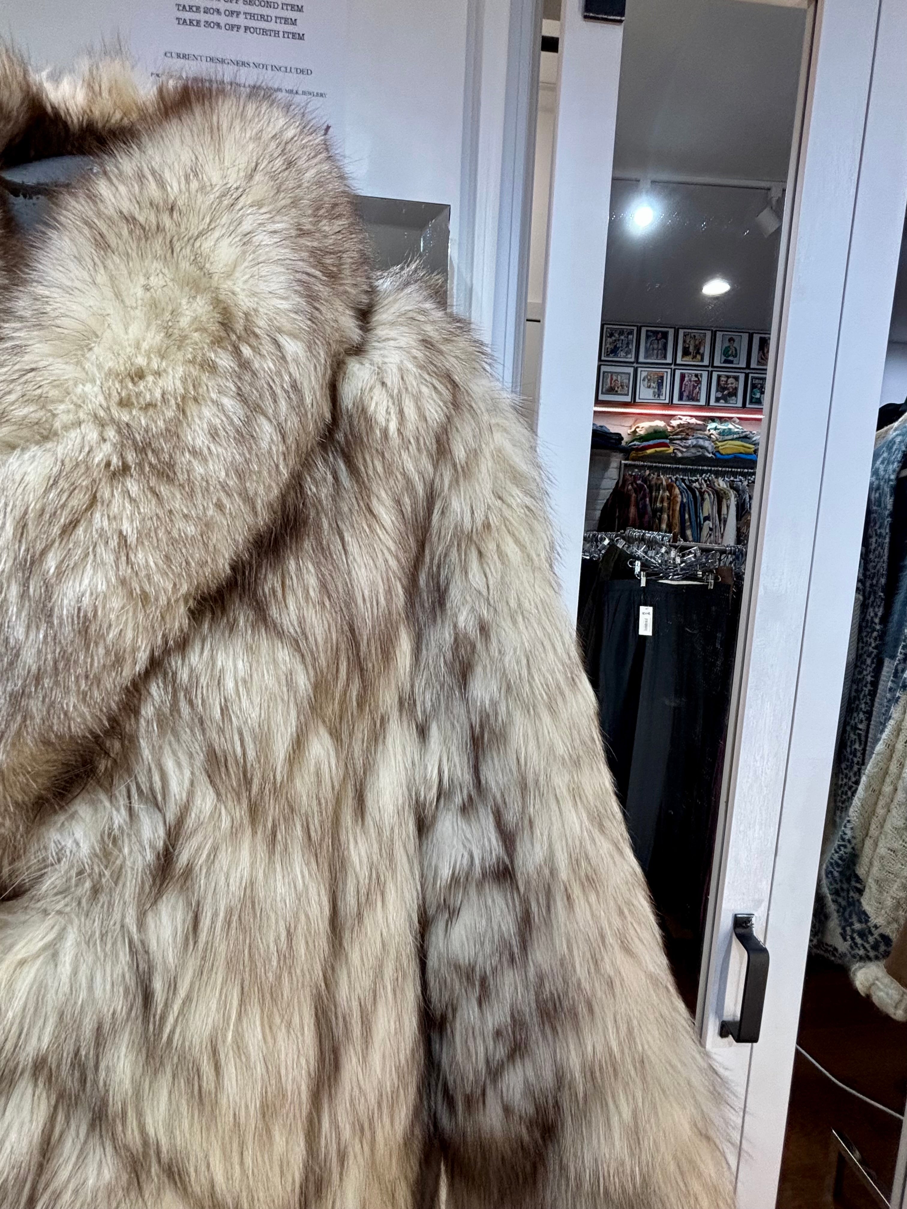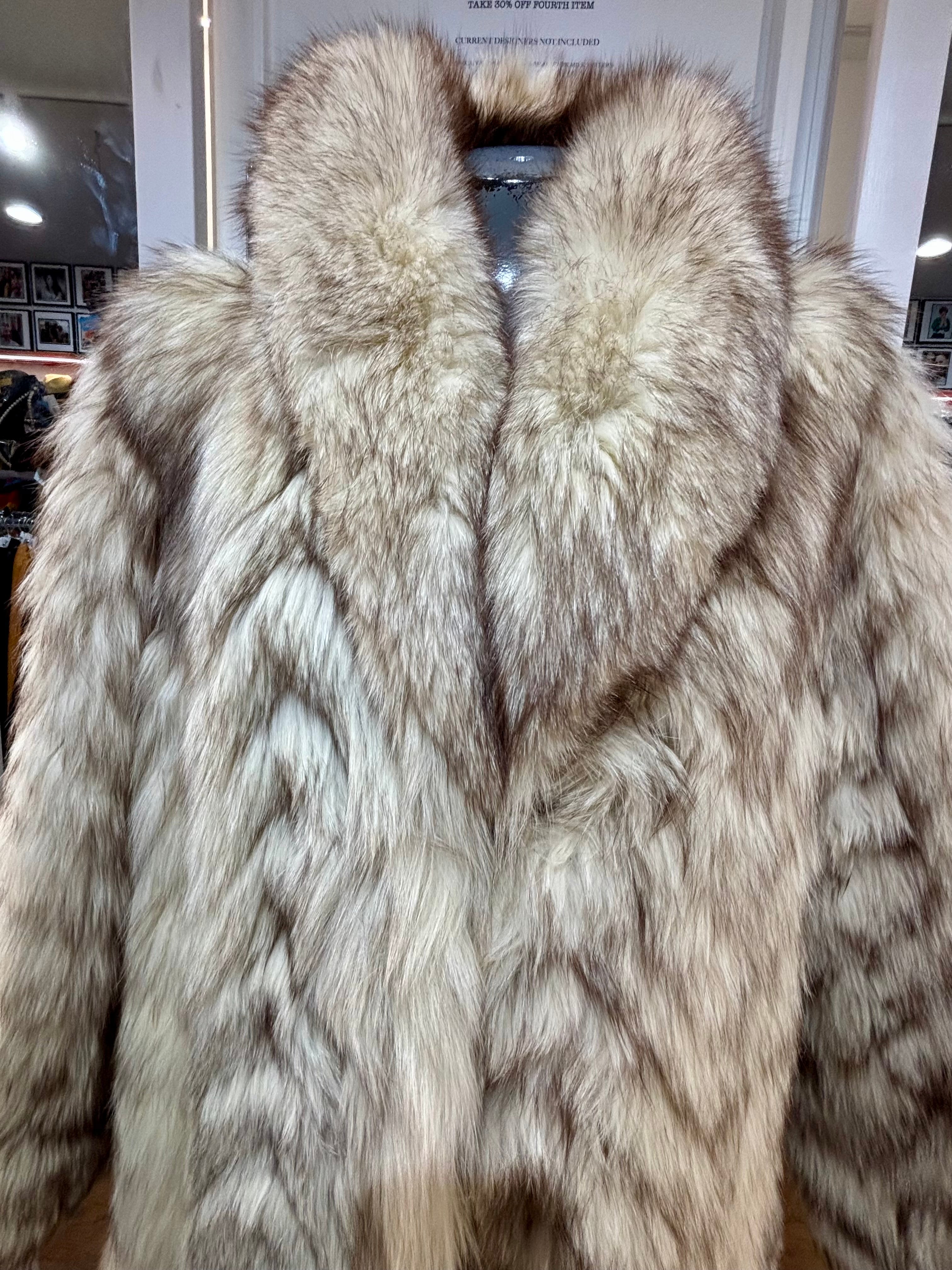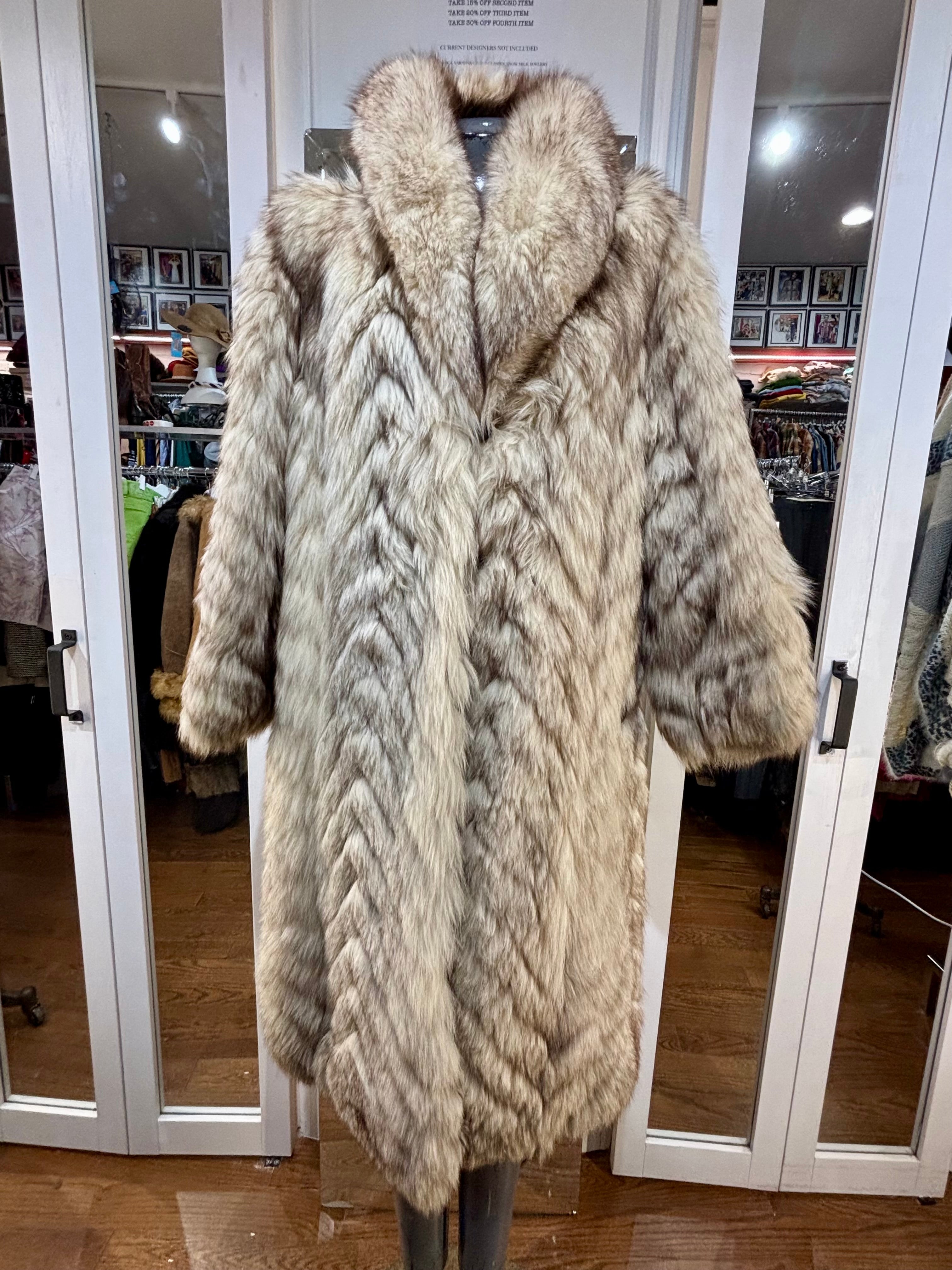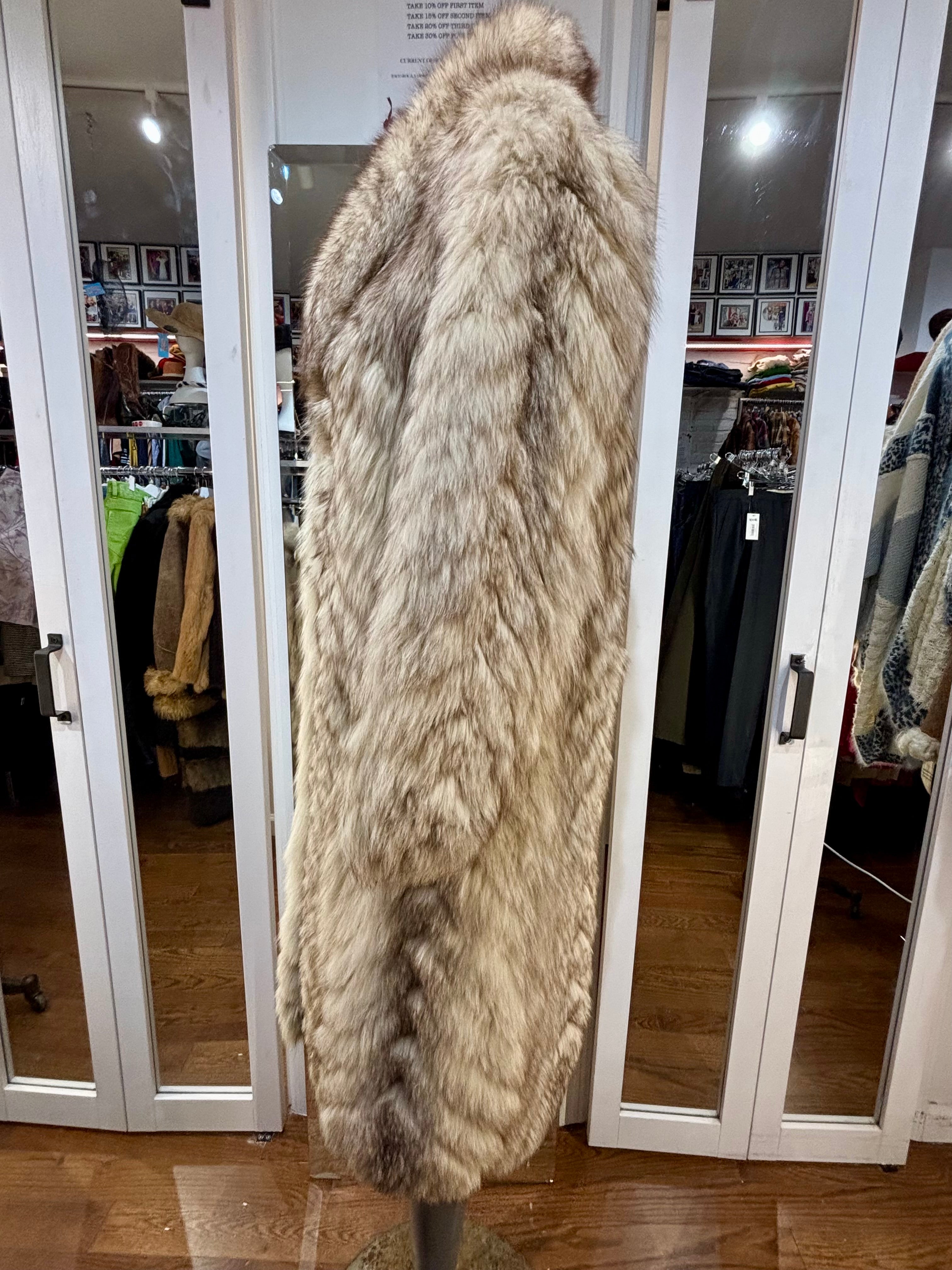 80’s Off White & Gray Full Length Fox Fur Coat