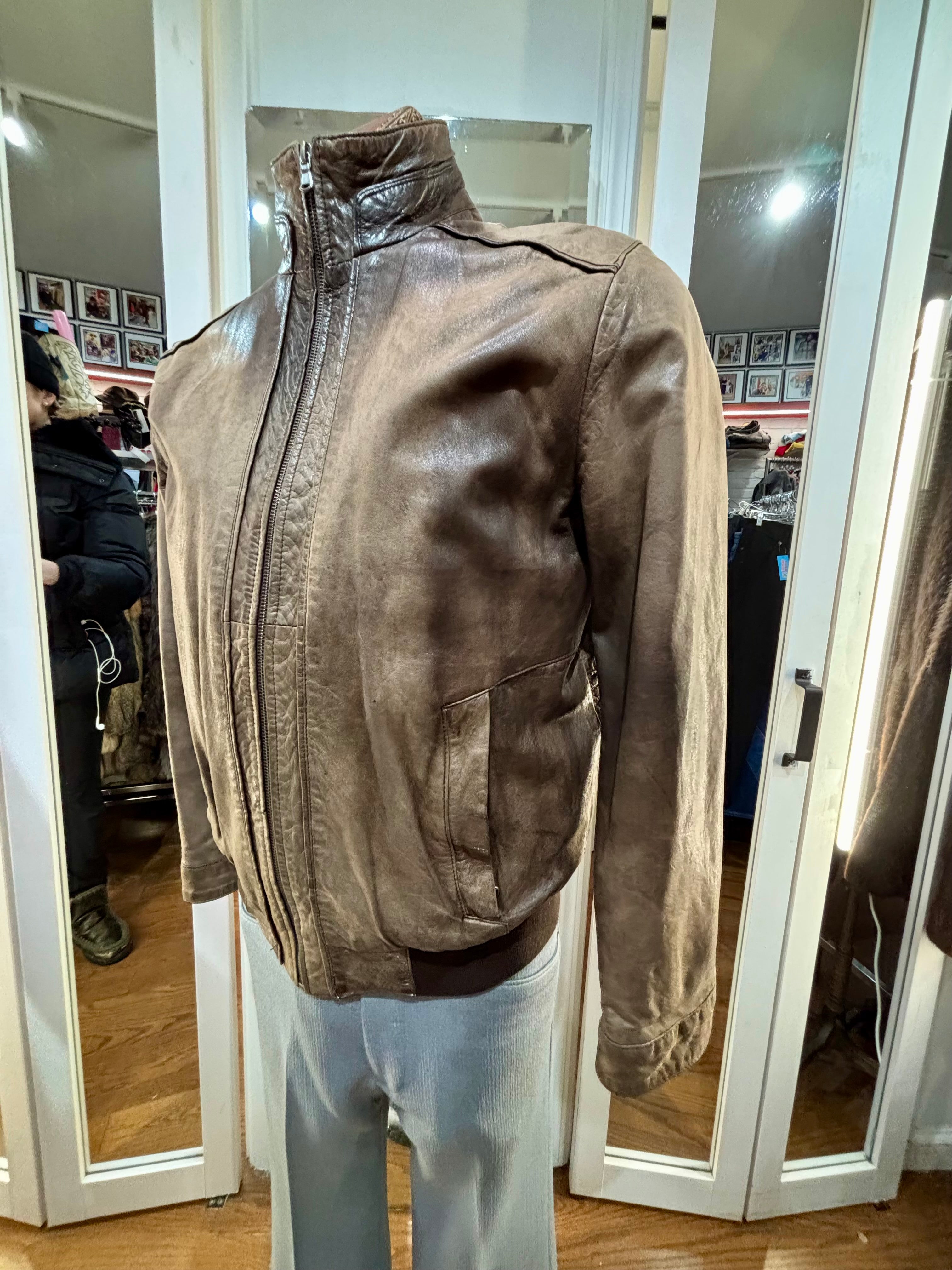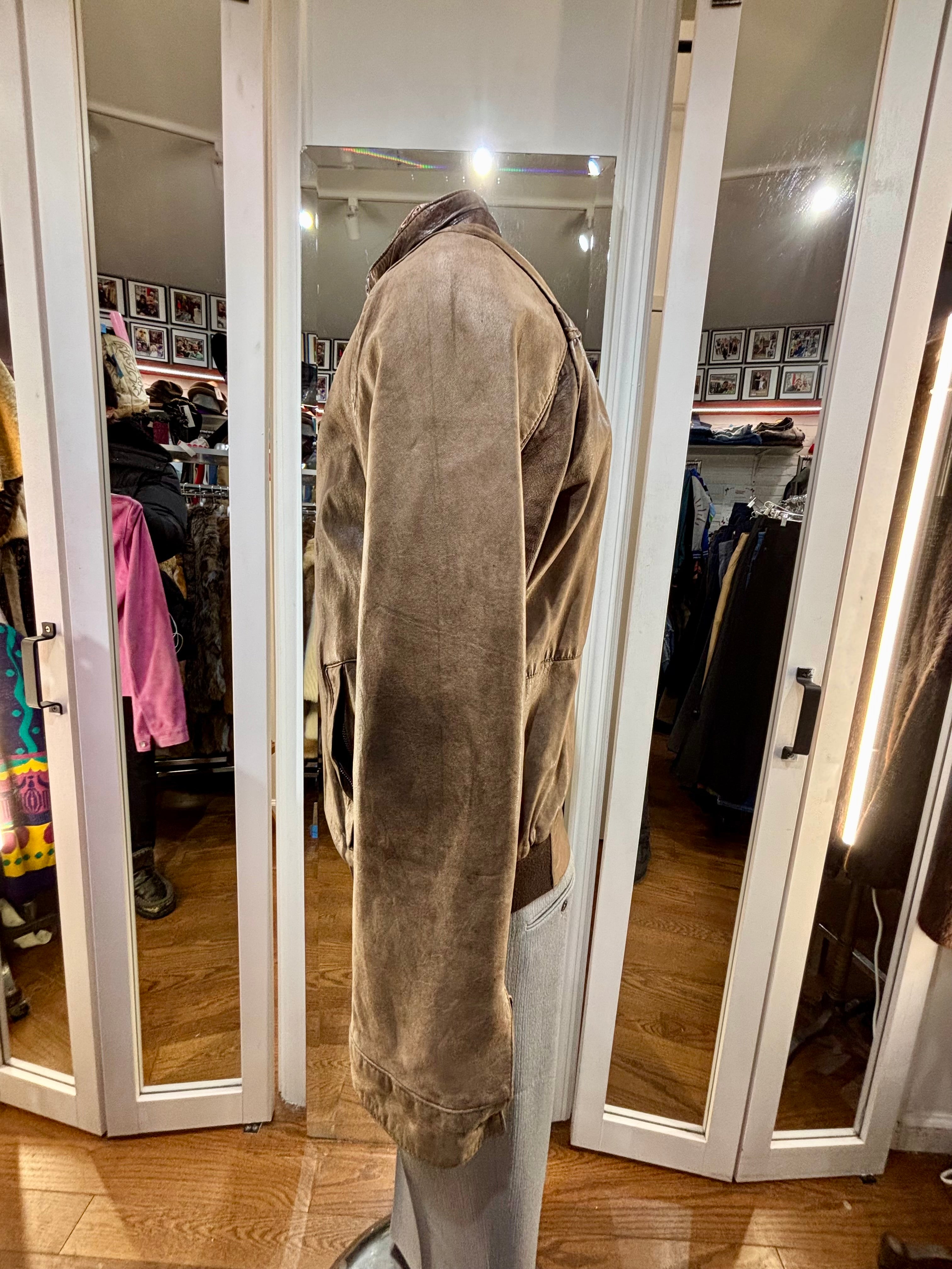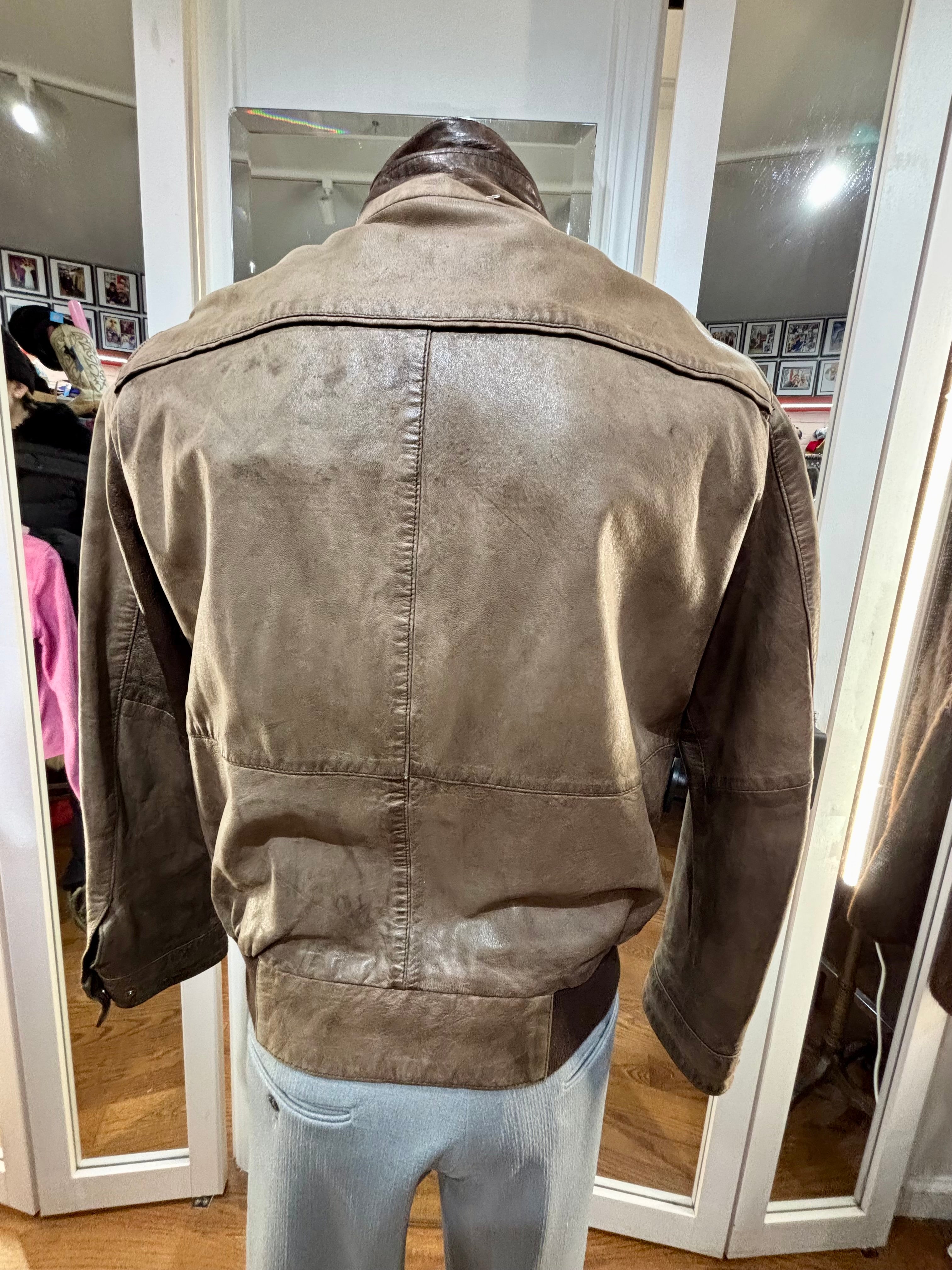 90’s Brown Distressed Leather Bomber Jacket By Qudro