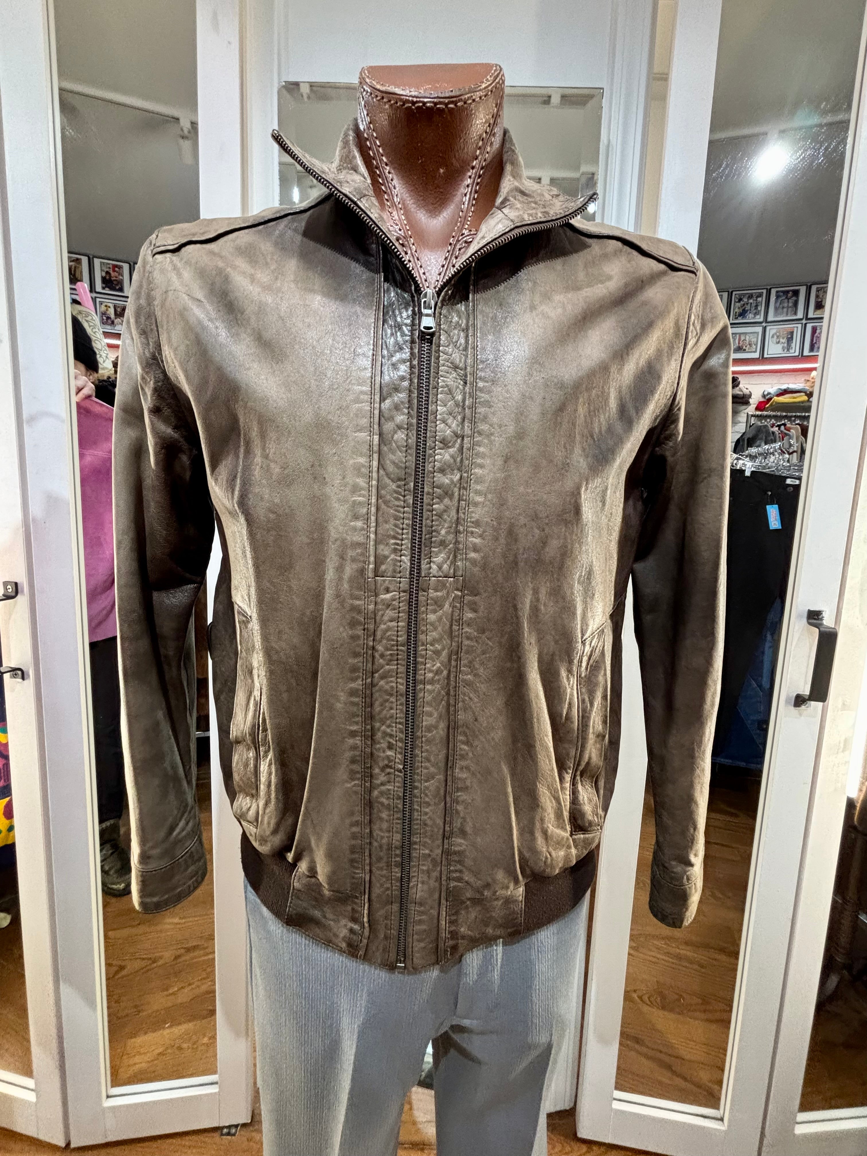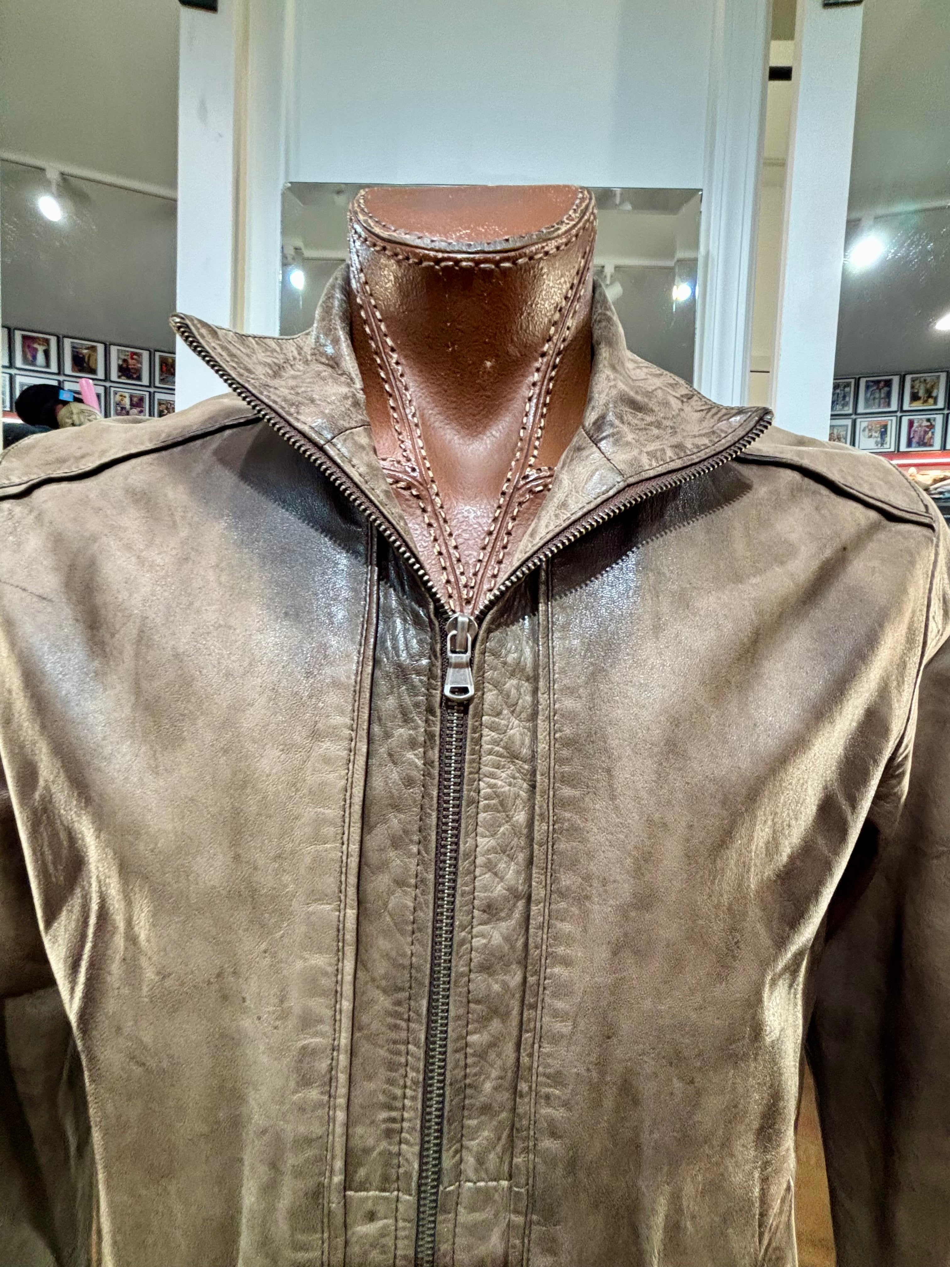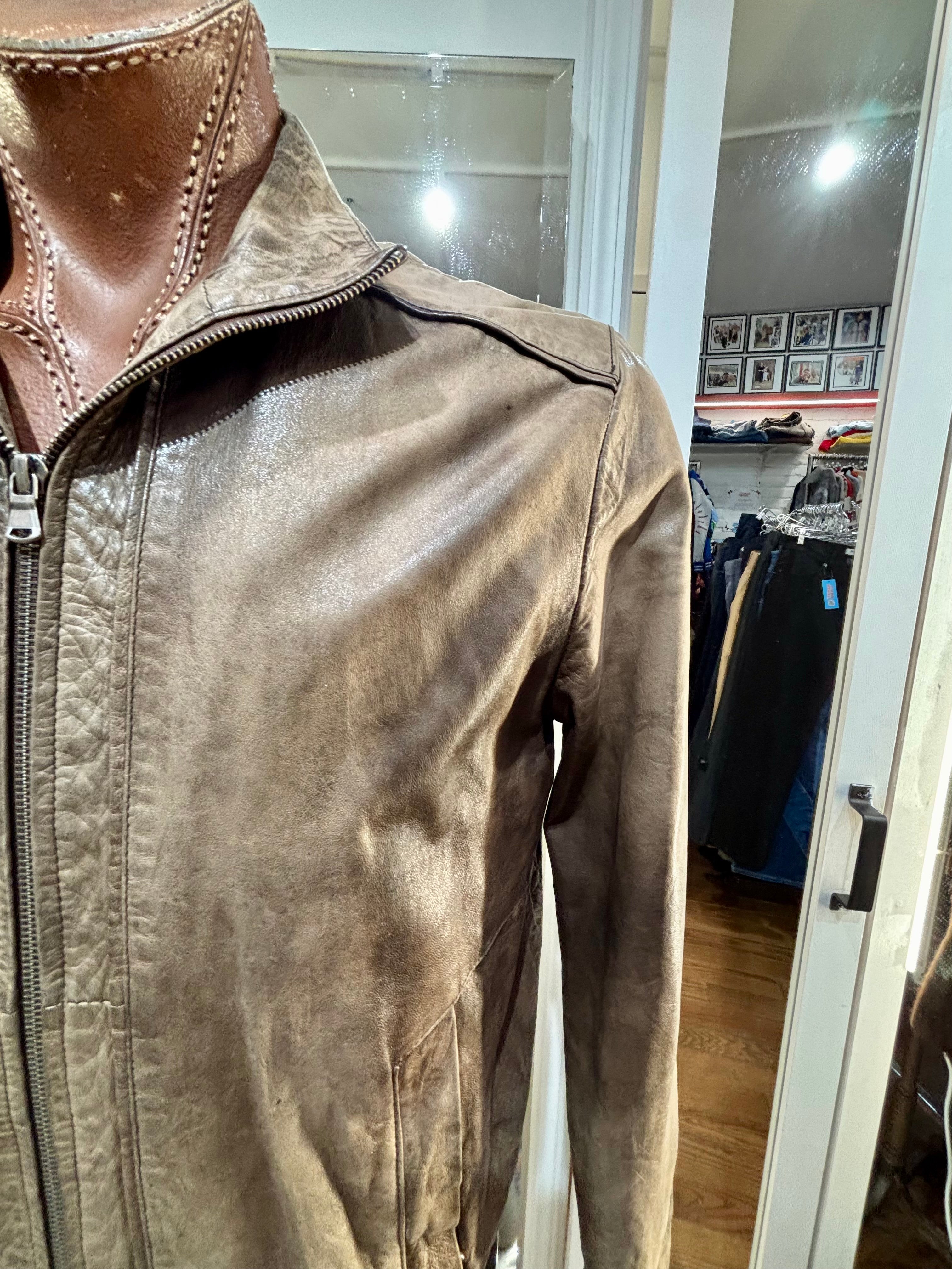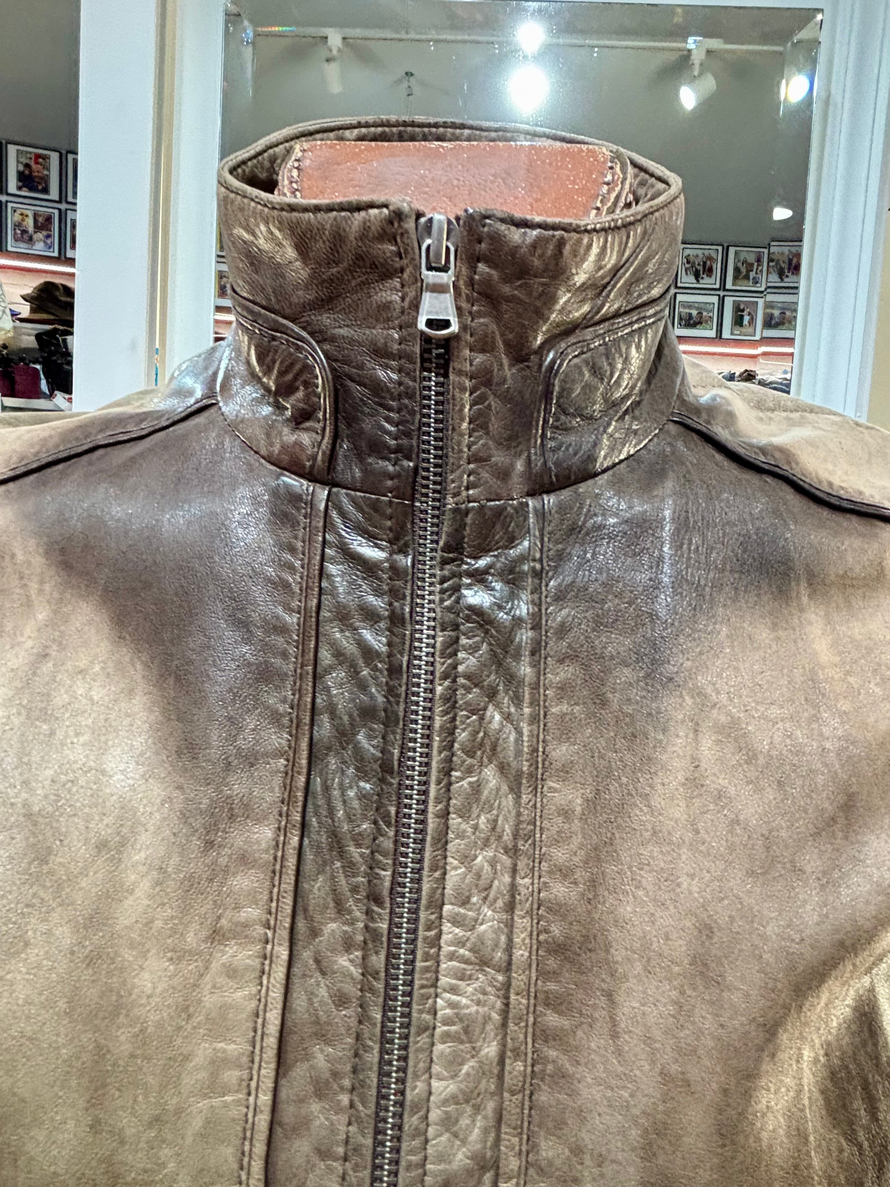 90’s Brown Distressed Leather Bomber Jacket By Qudro