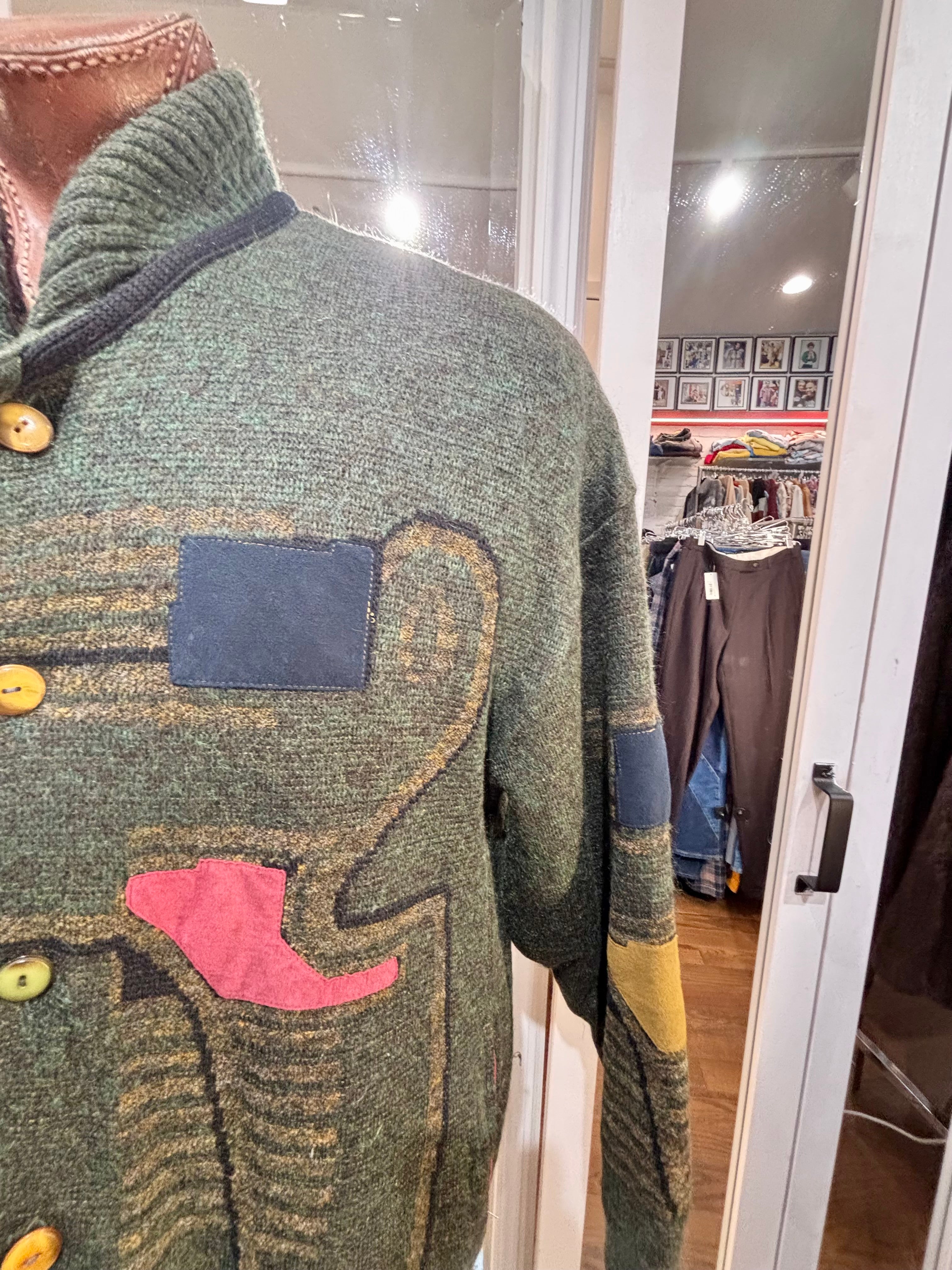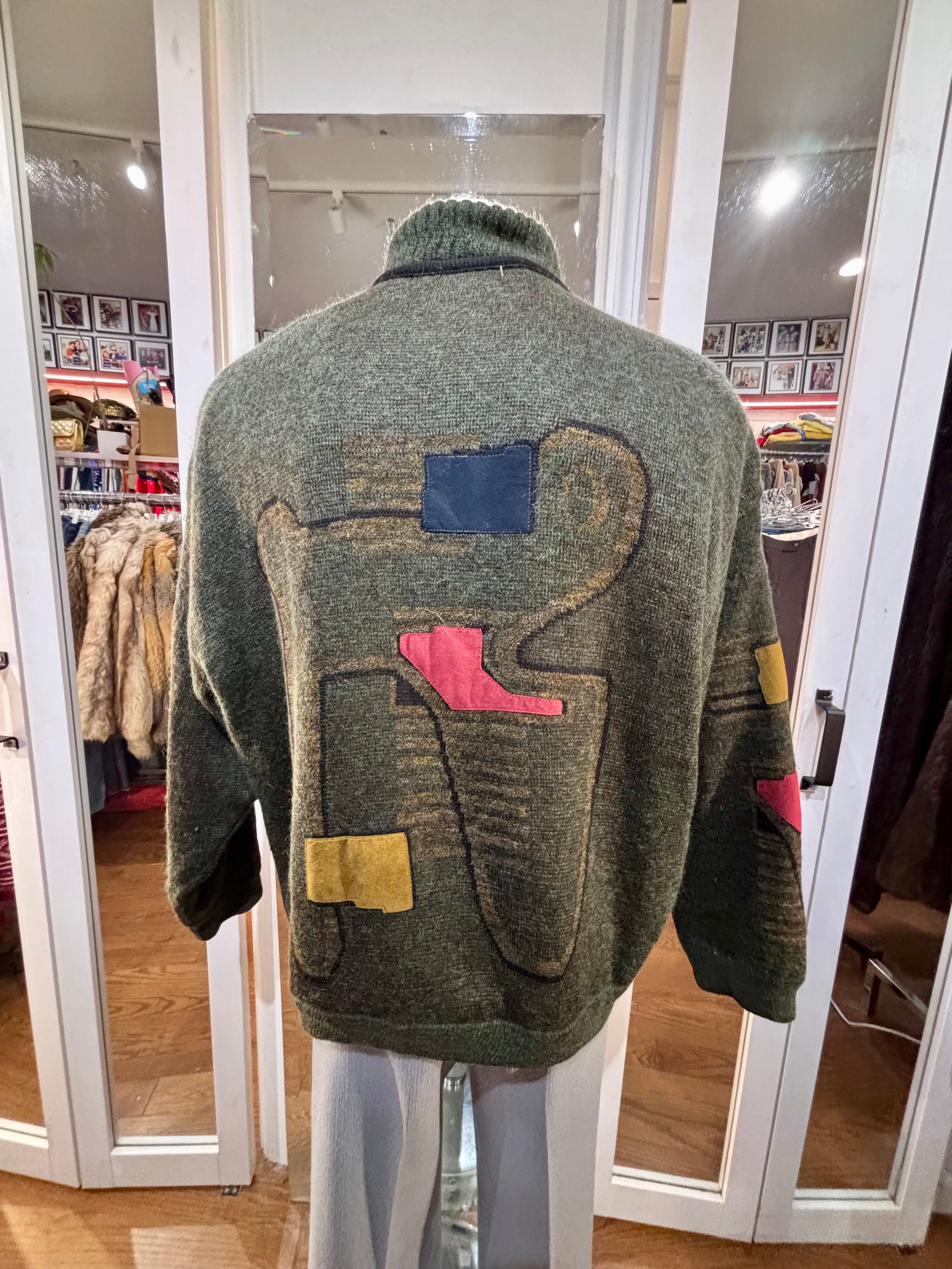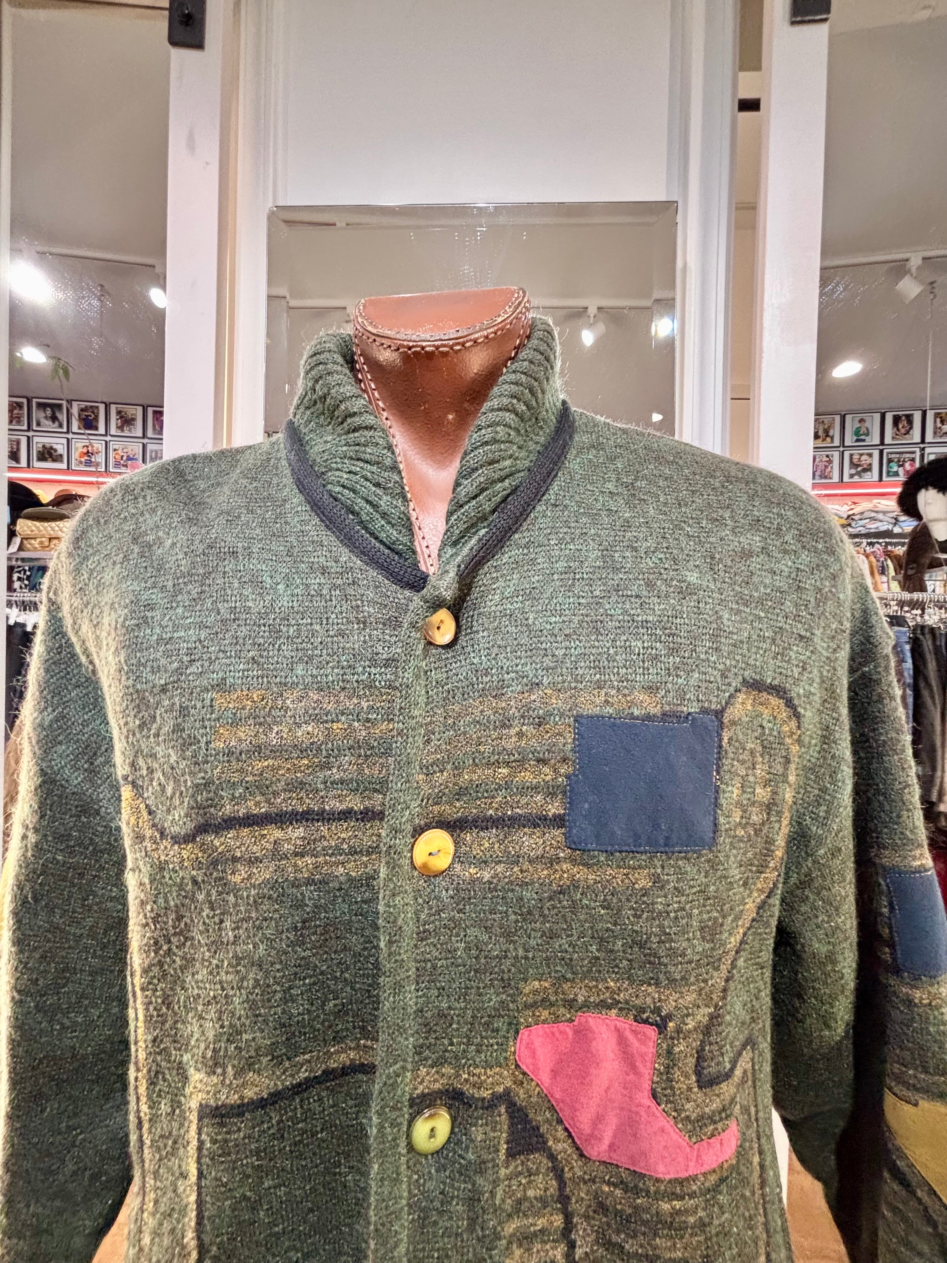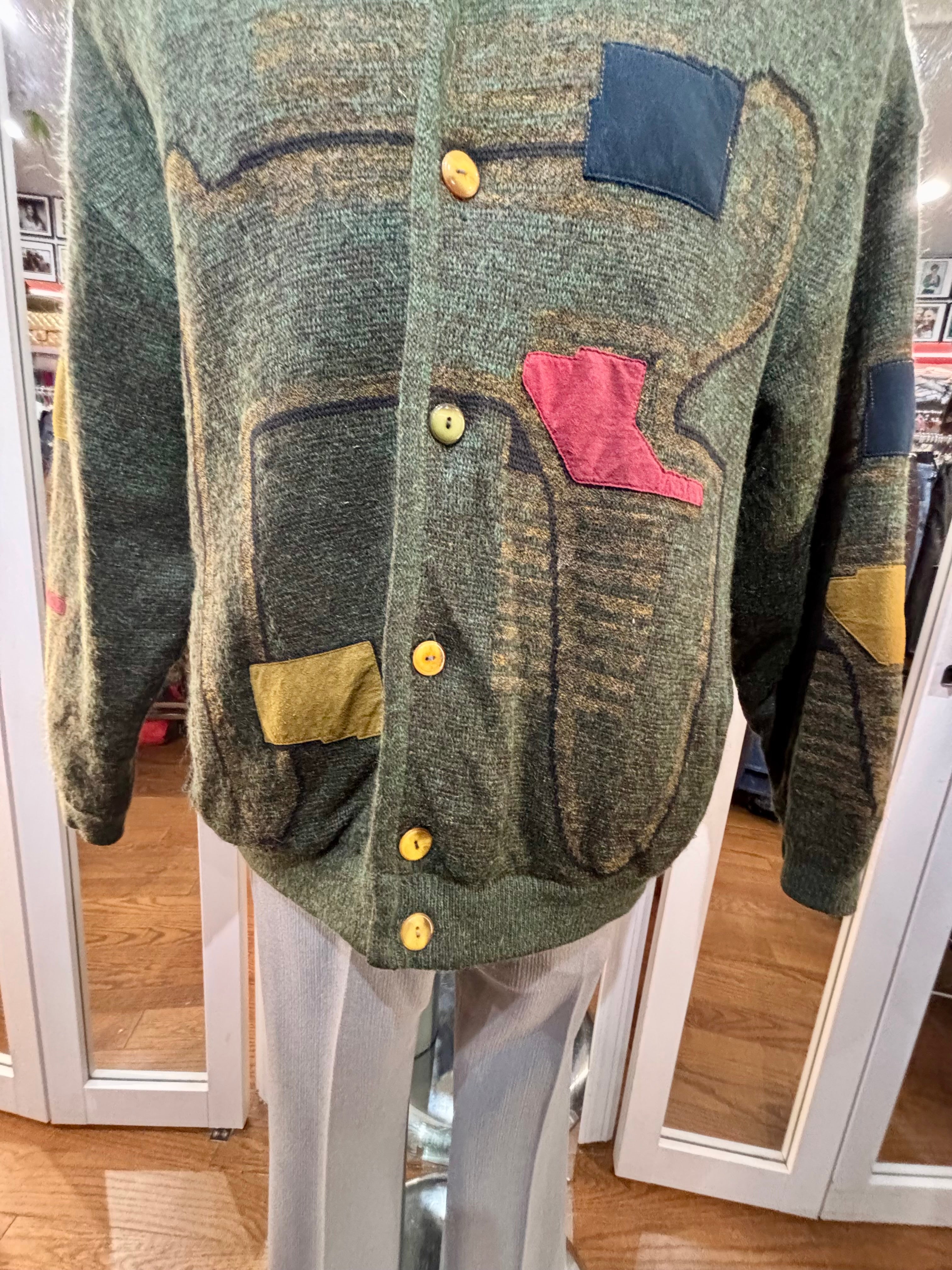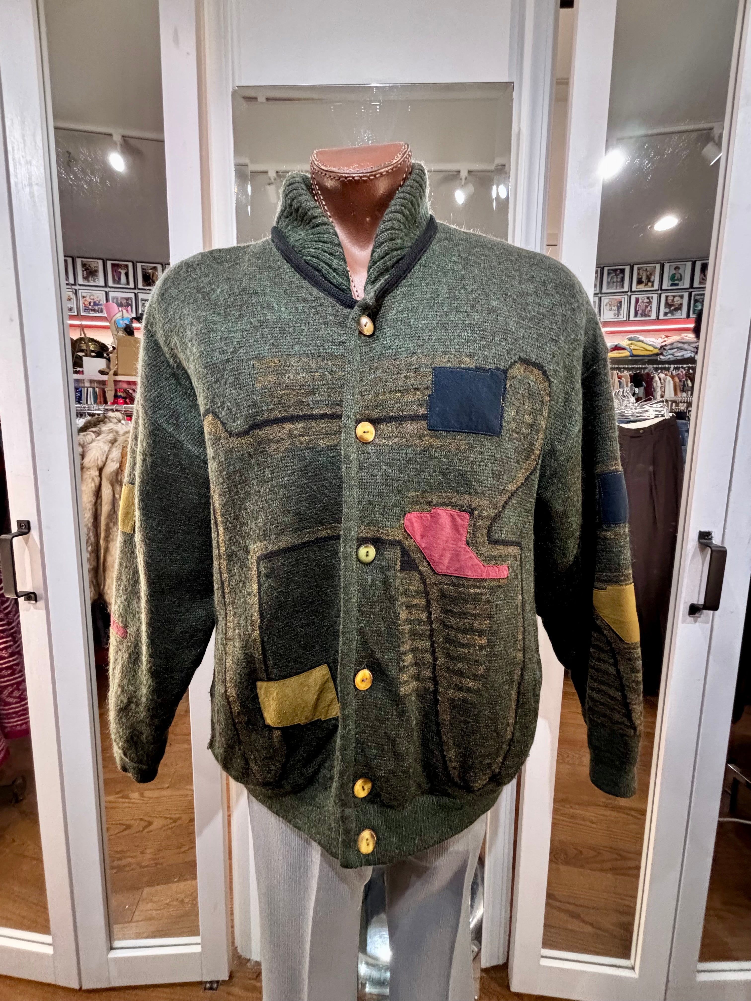 90’’s Knit Buttoned With Color Block Details Bomber Jacket By Bizzarro