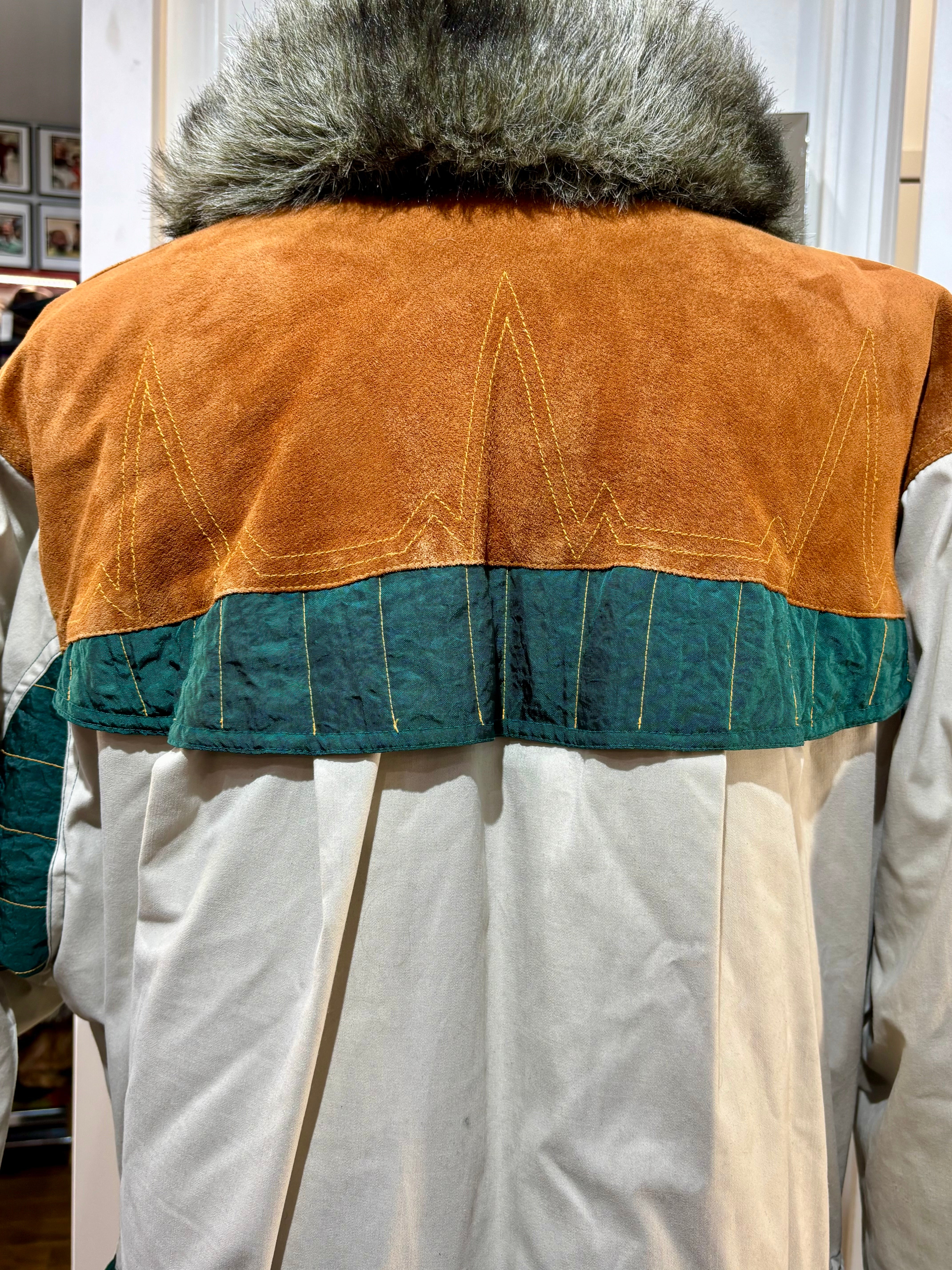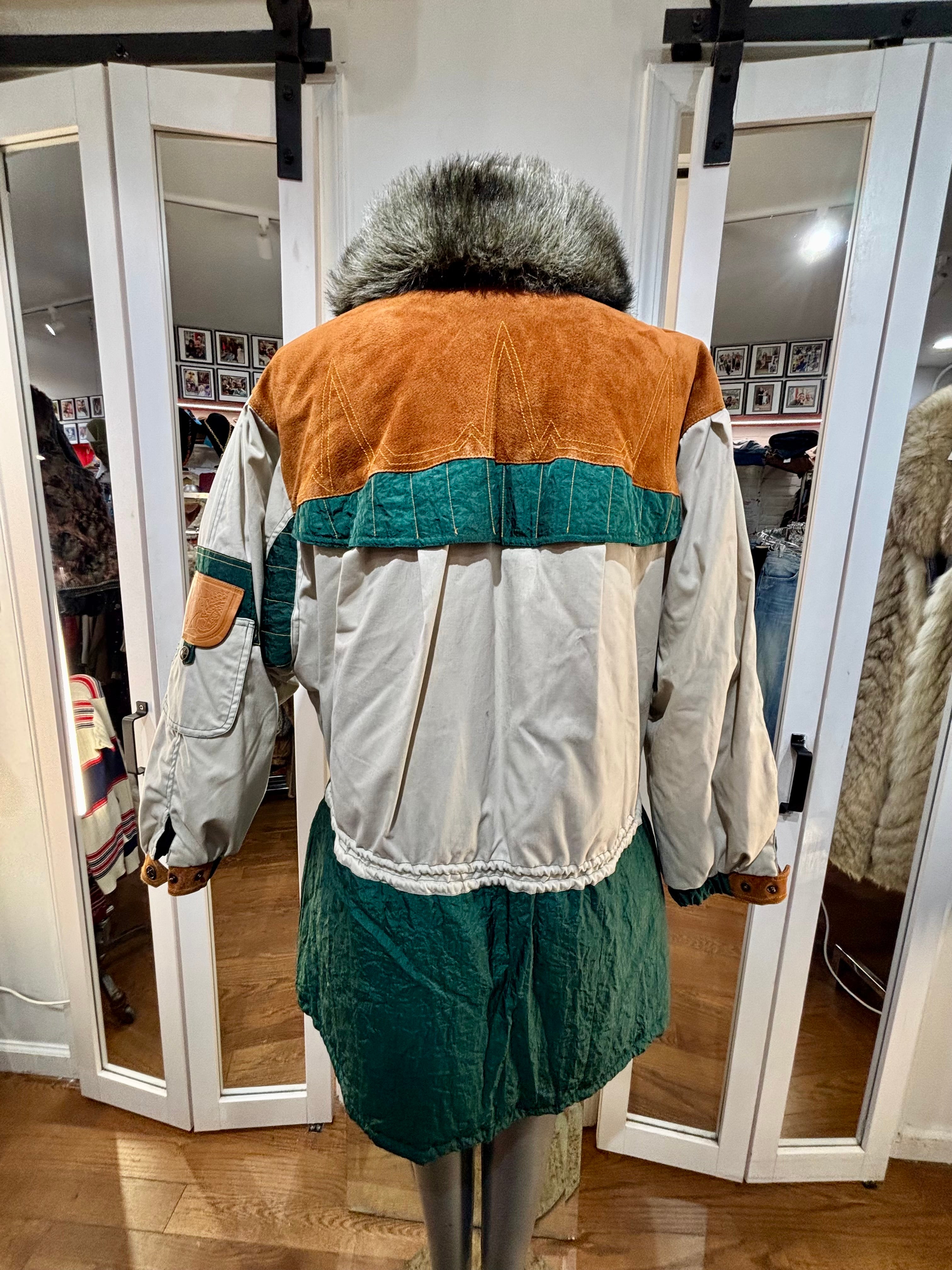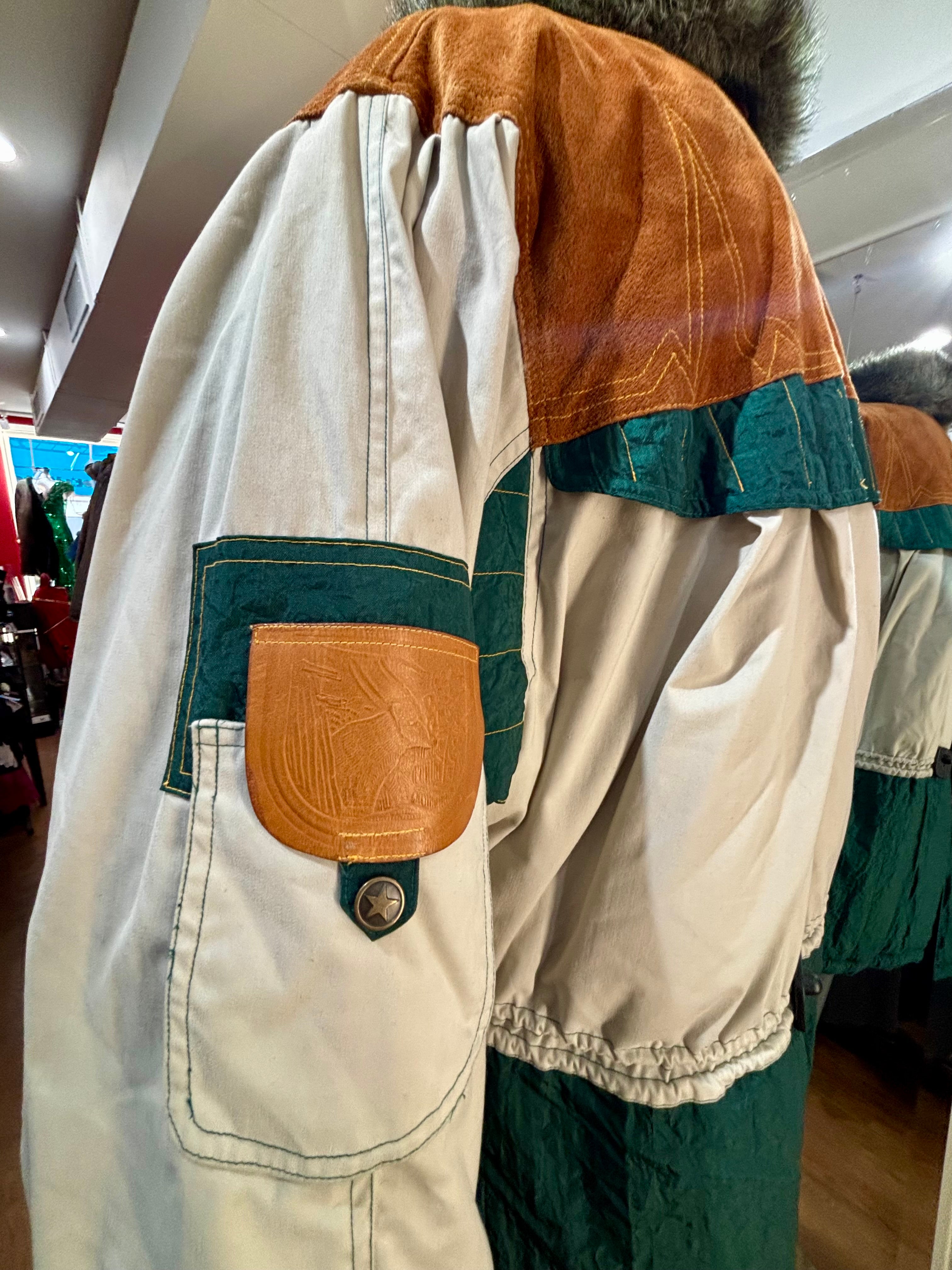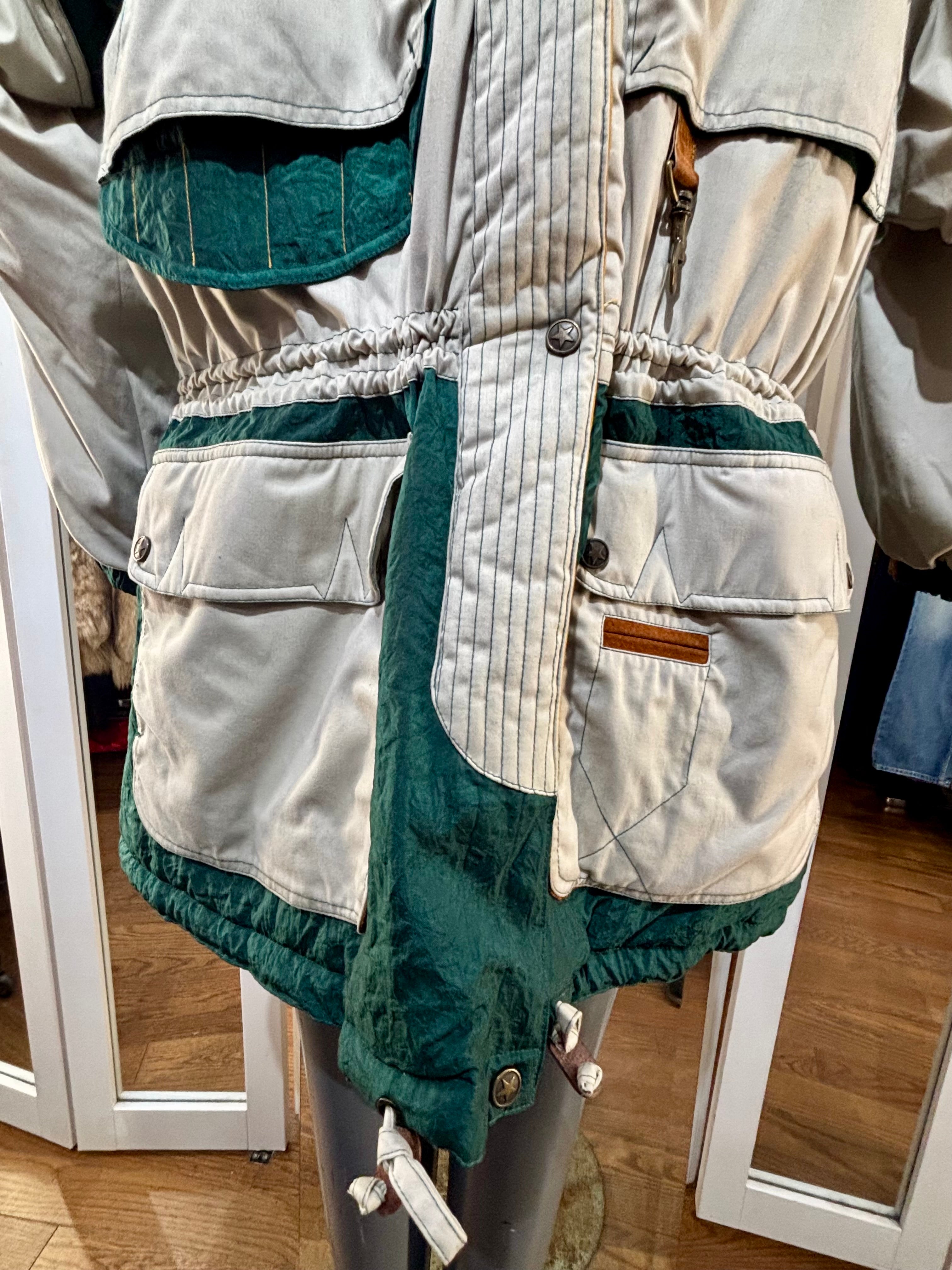 80’s Beige Down Color Block Coat Detailing By Gallery