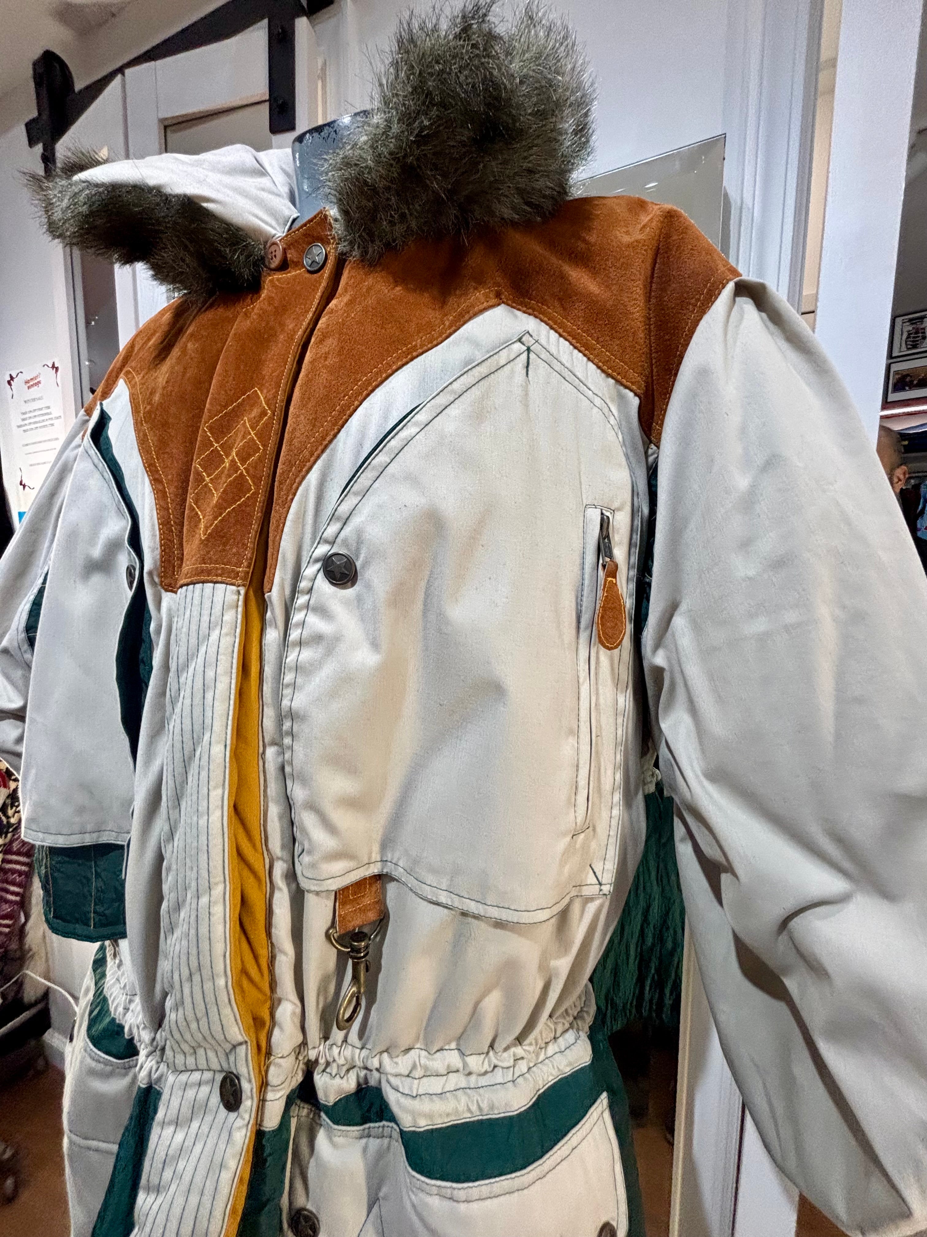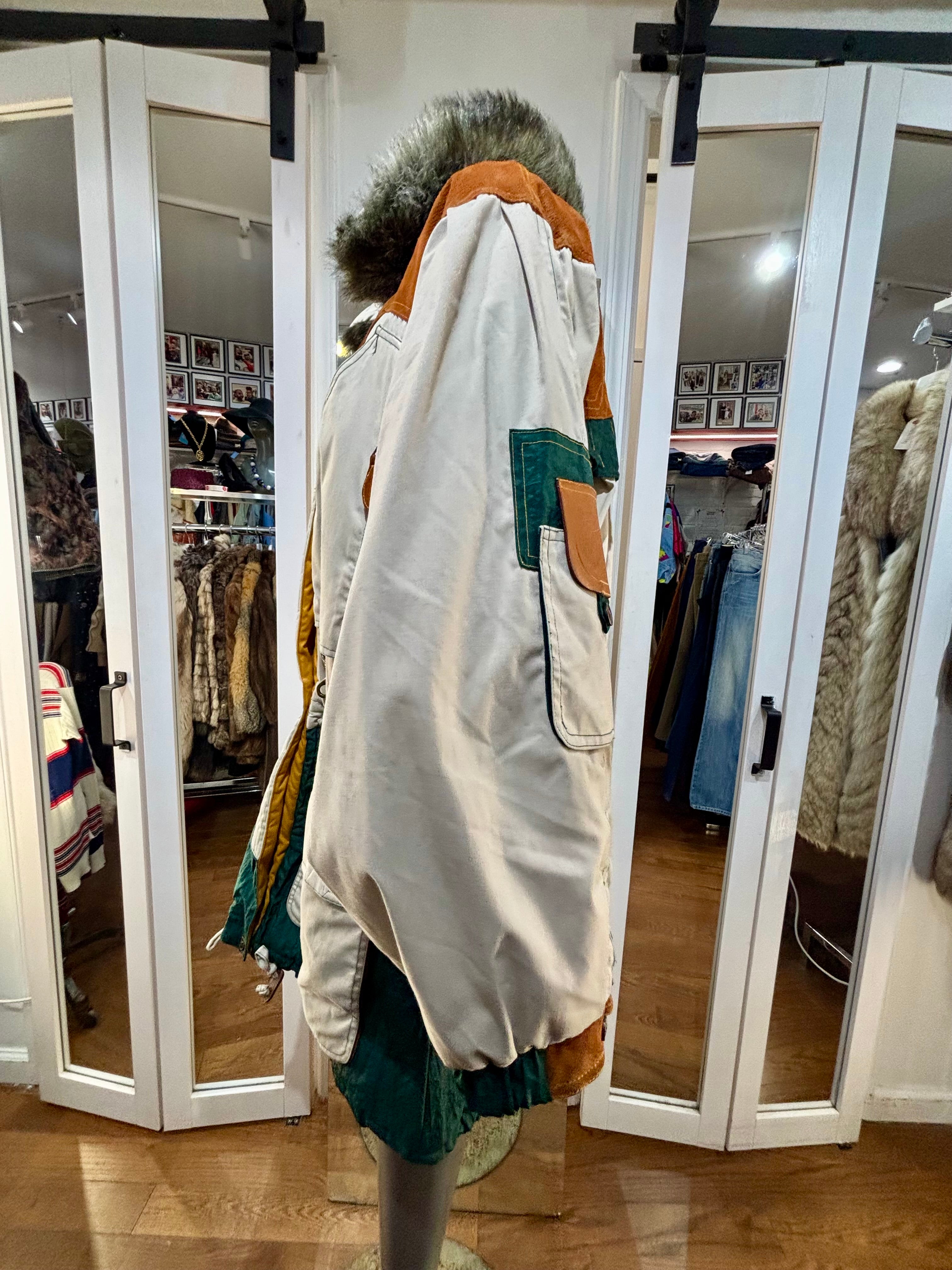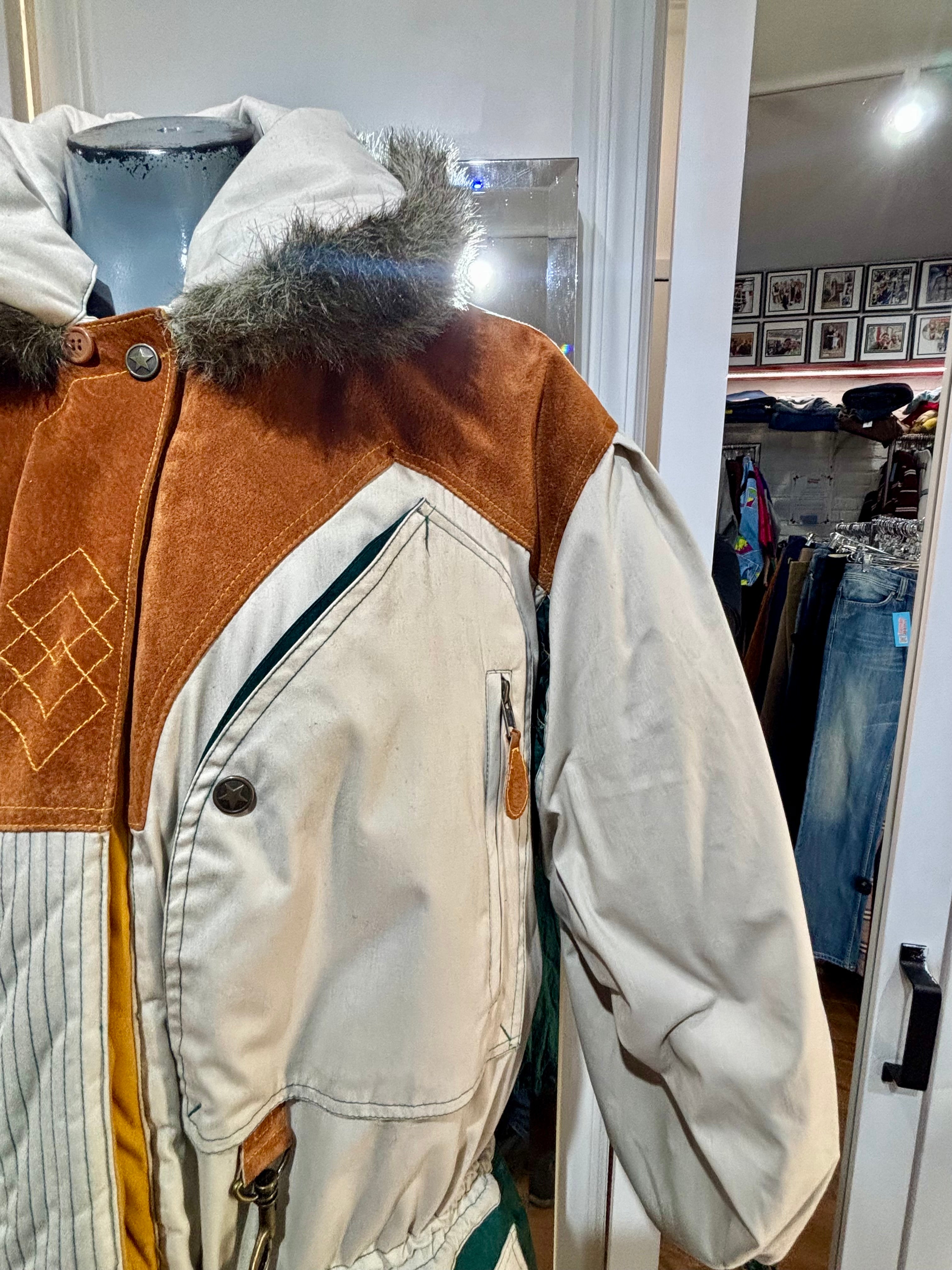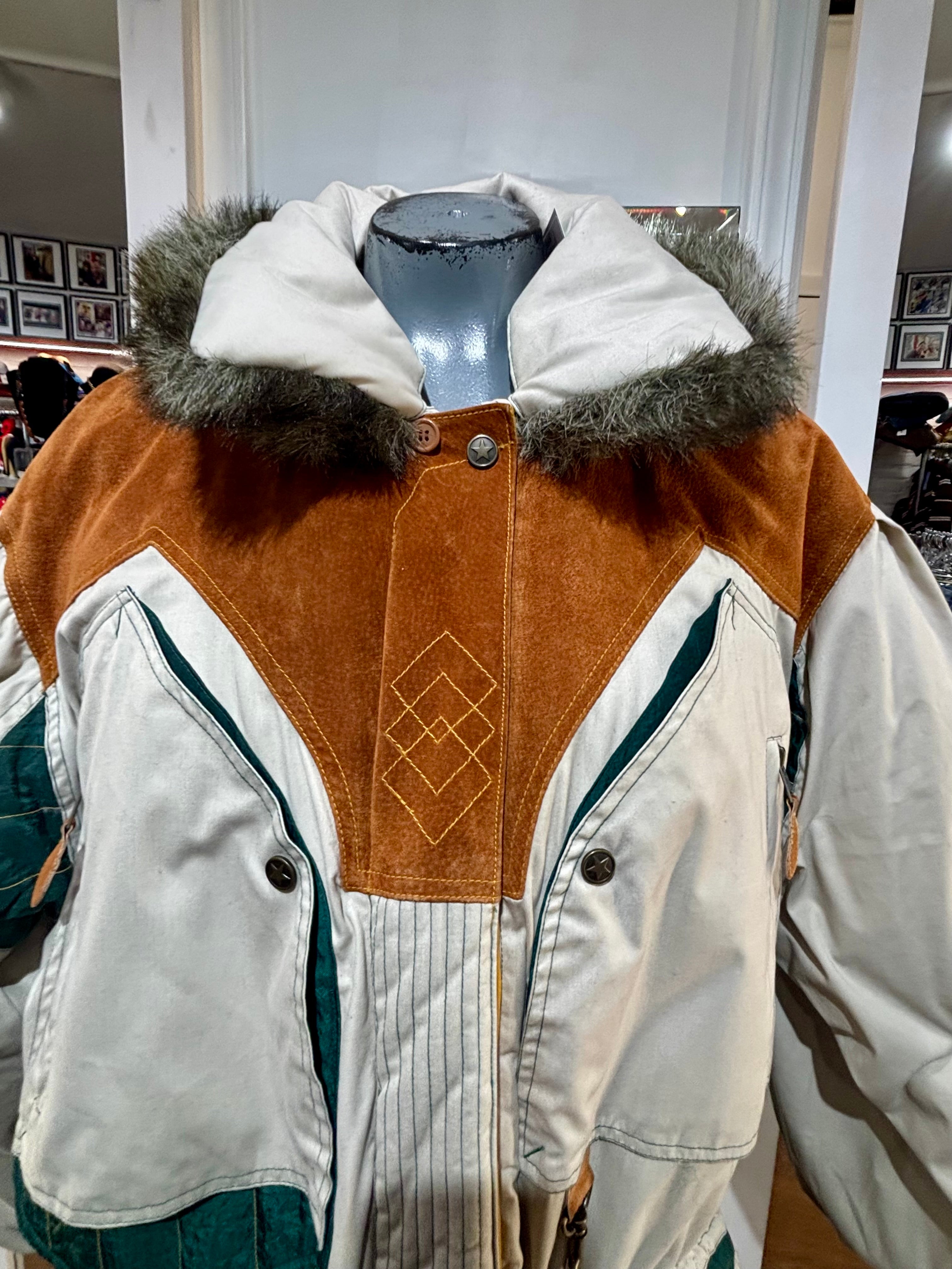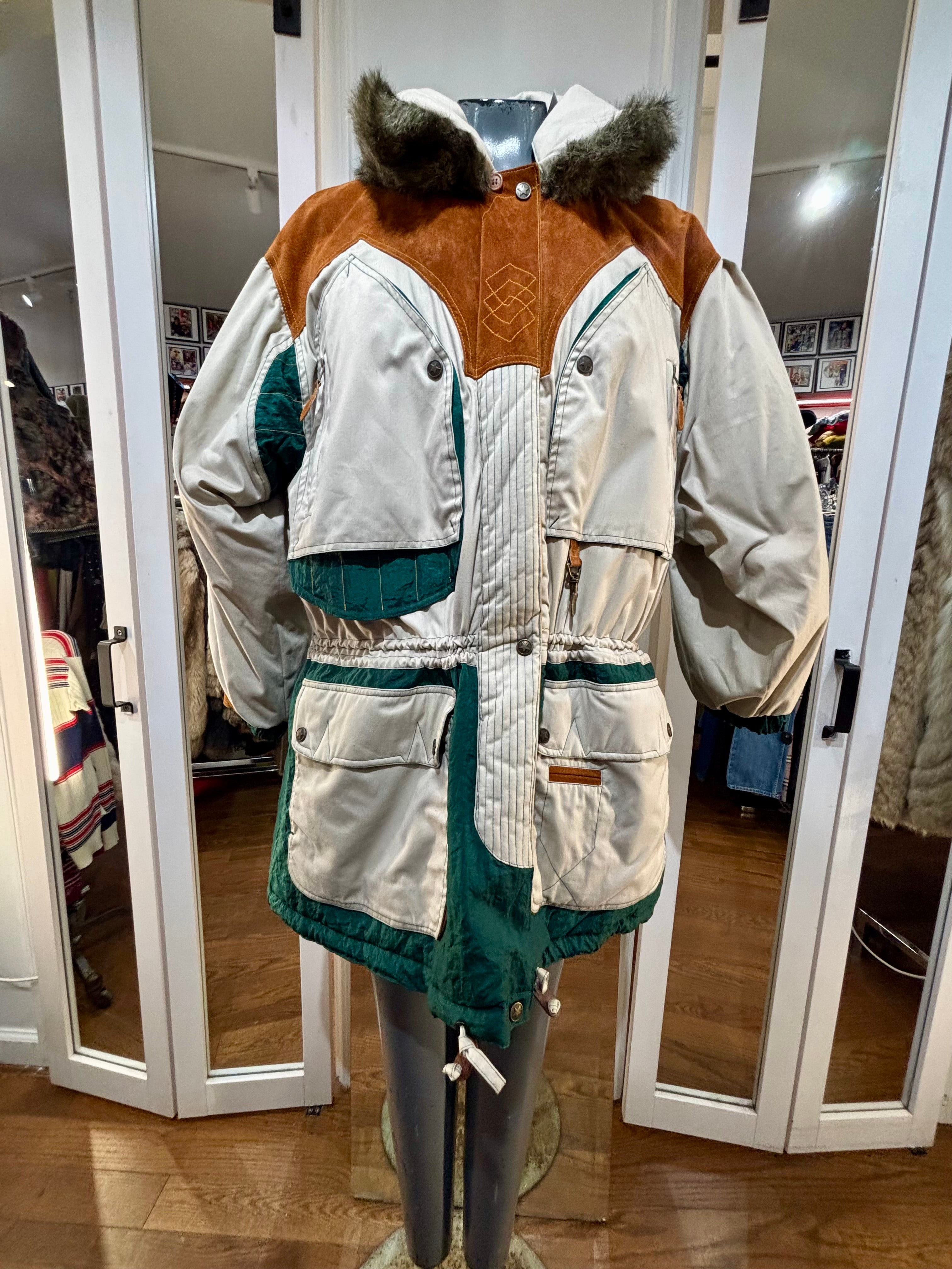 80’s Beige Down Color Block Coat Detailing By Gallery