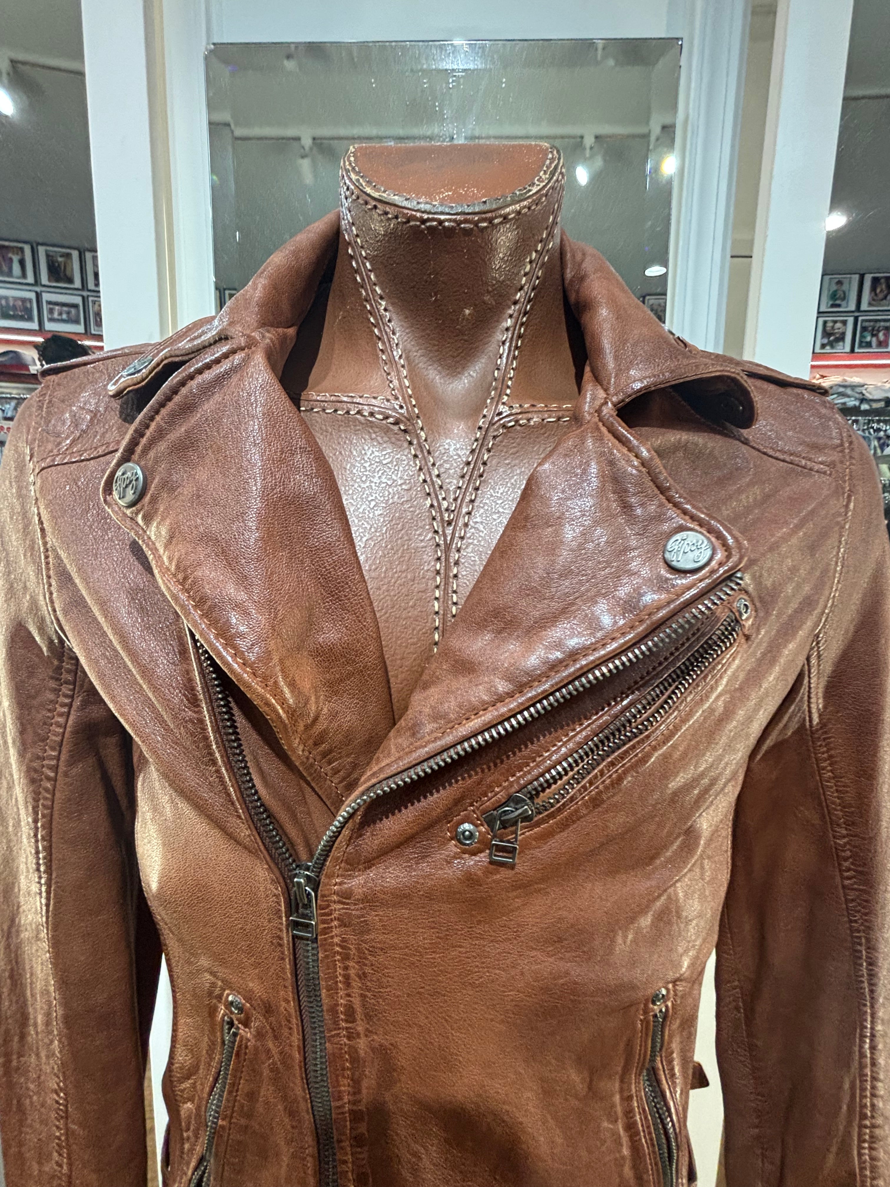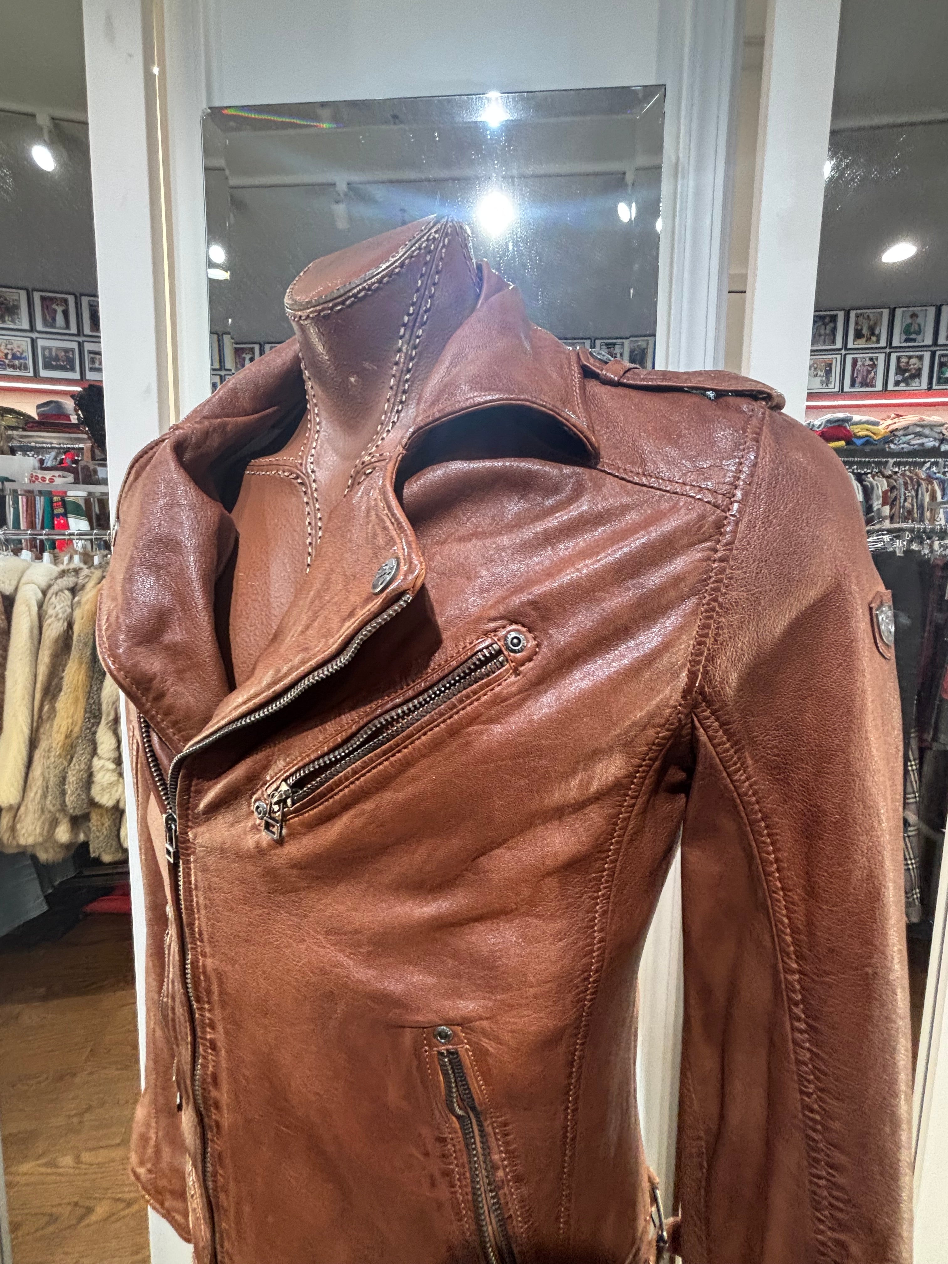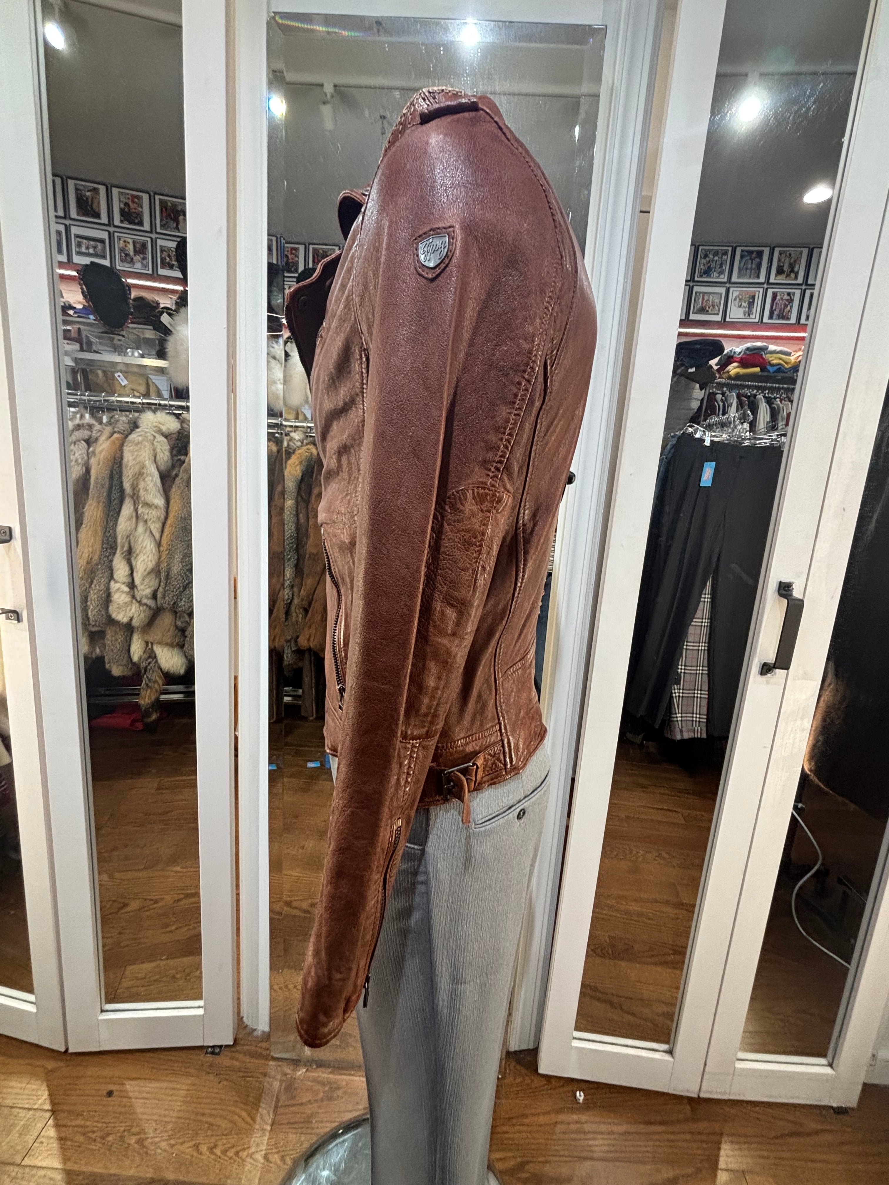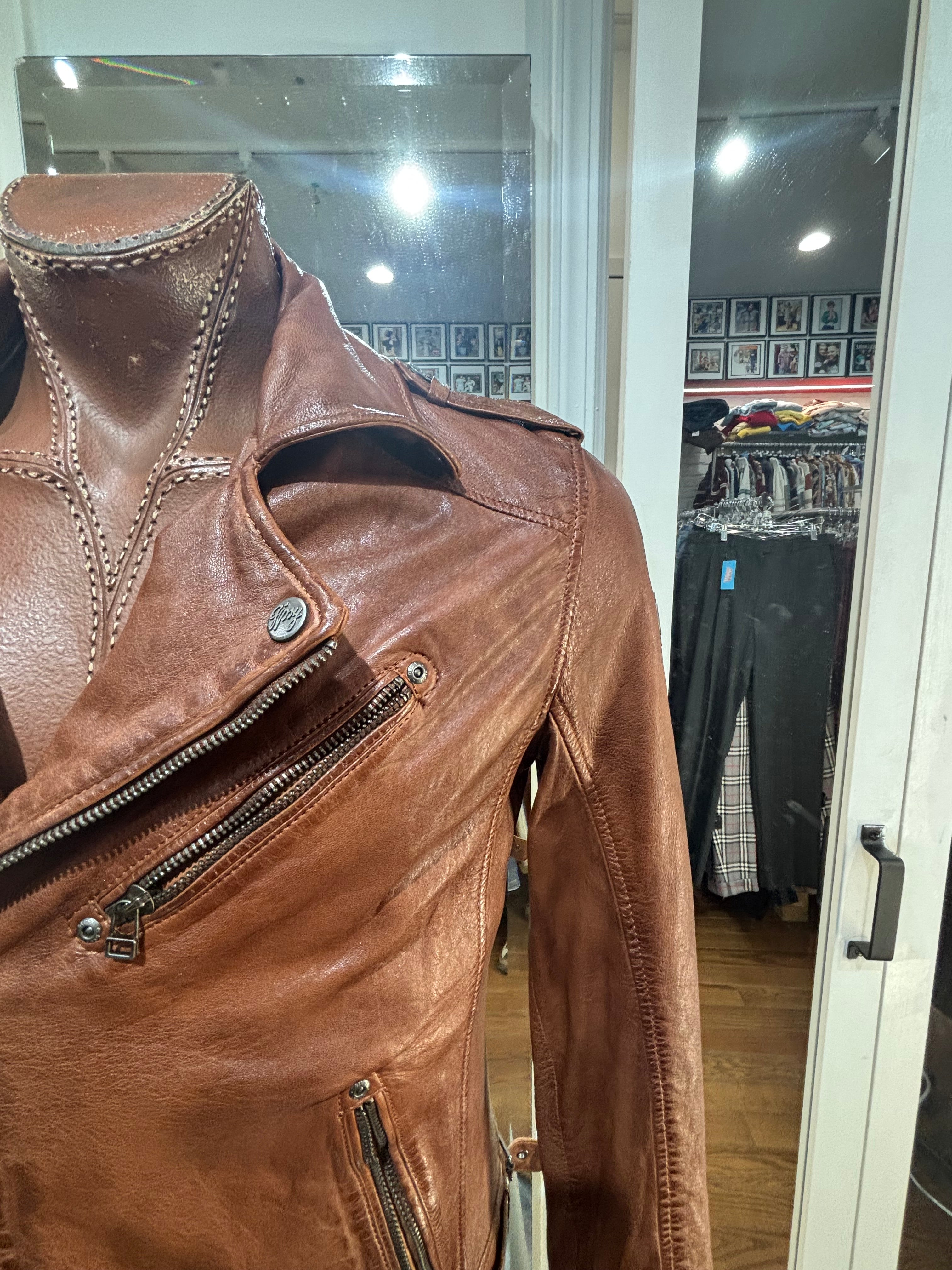 90’s Brown Leather Jacket Biker Inspired By Gypsy
