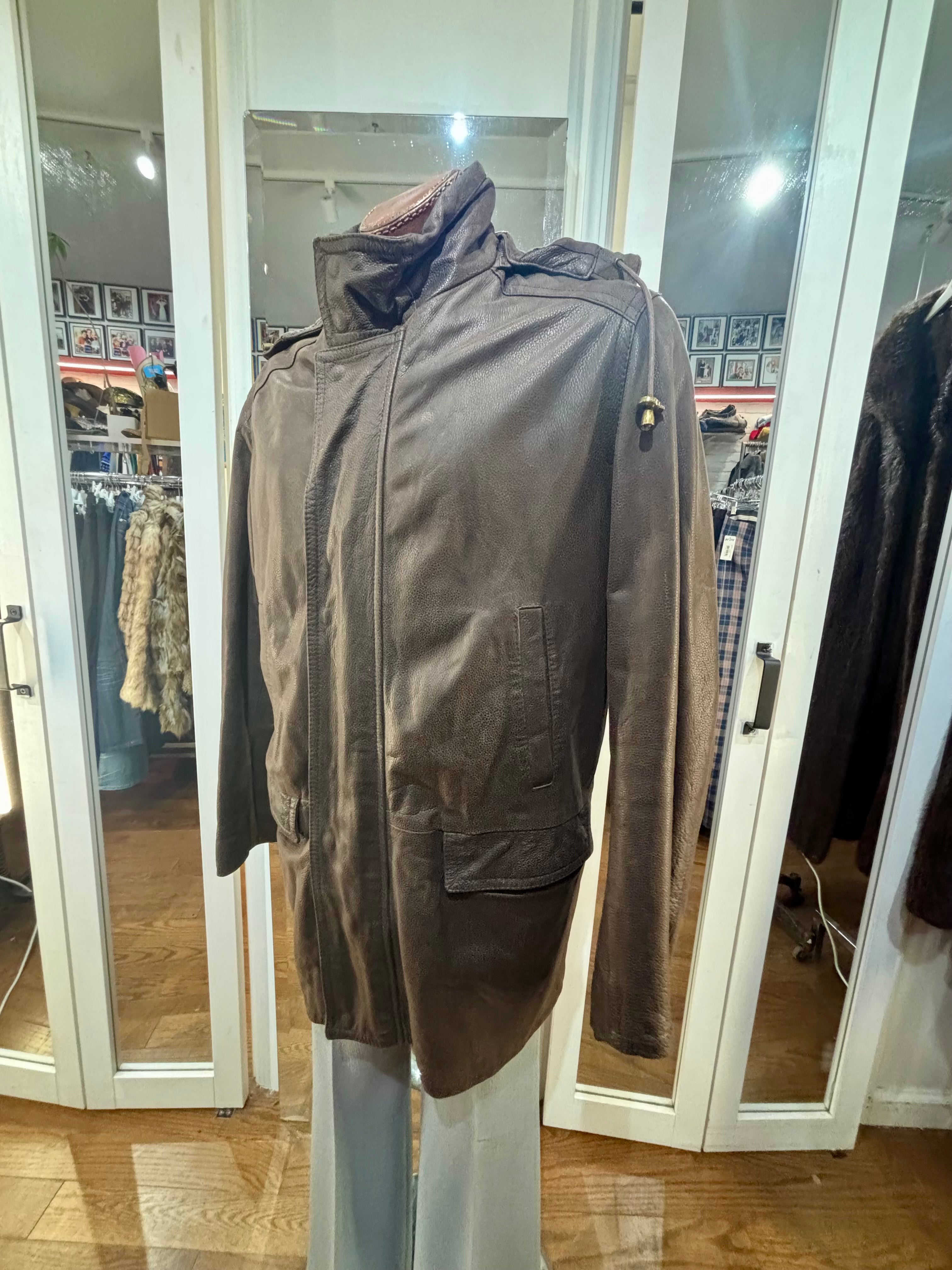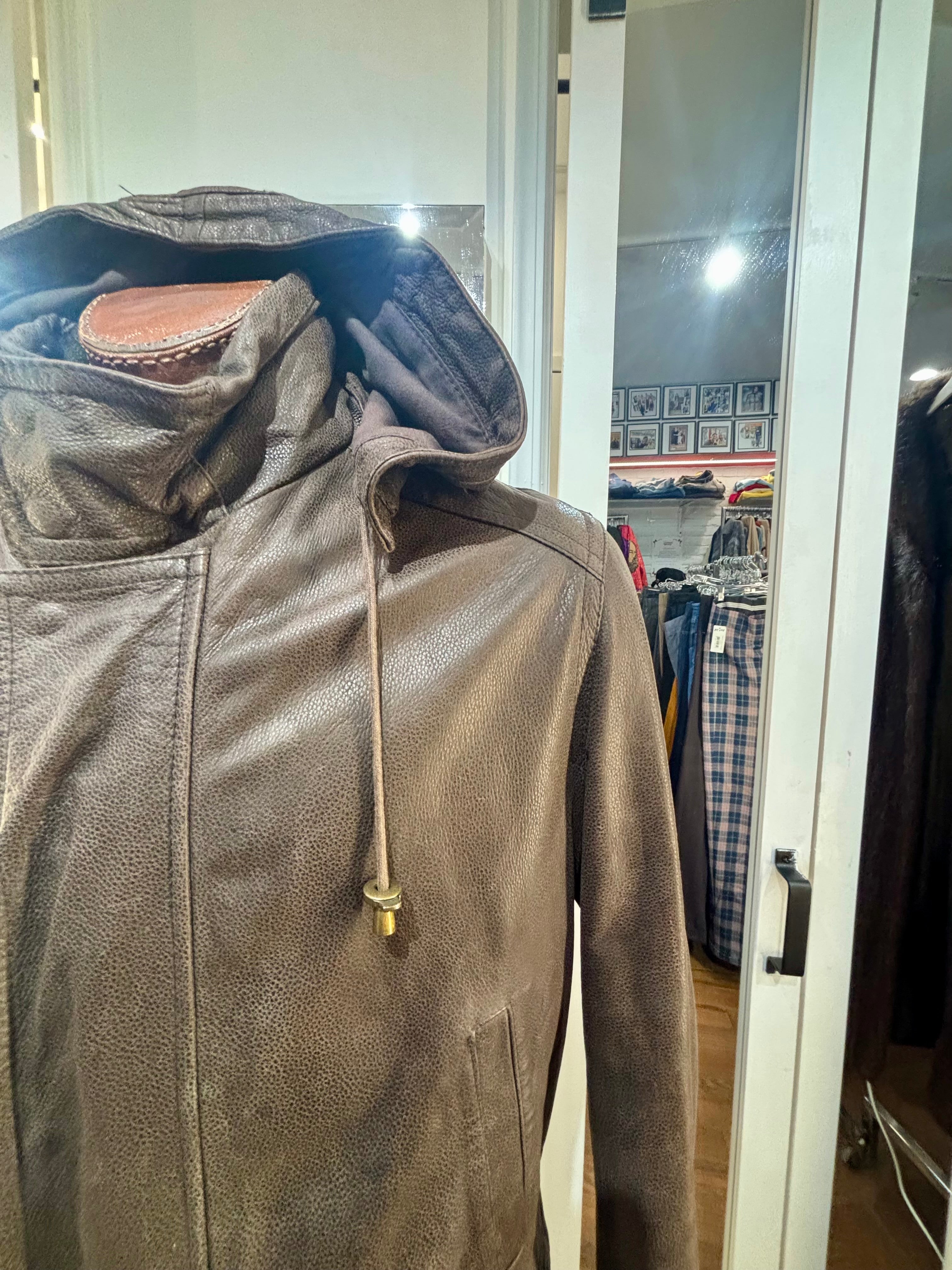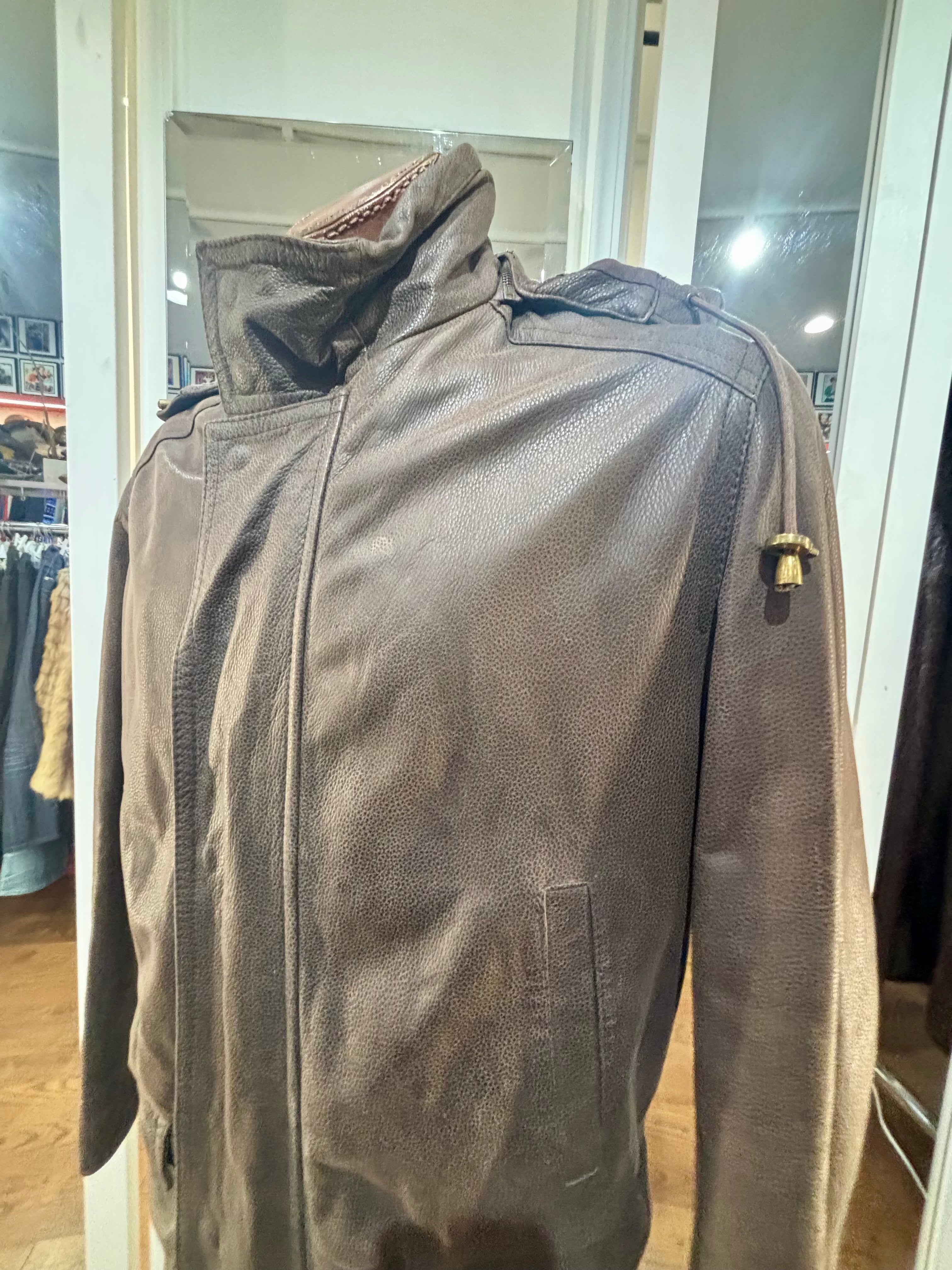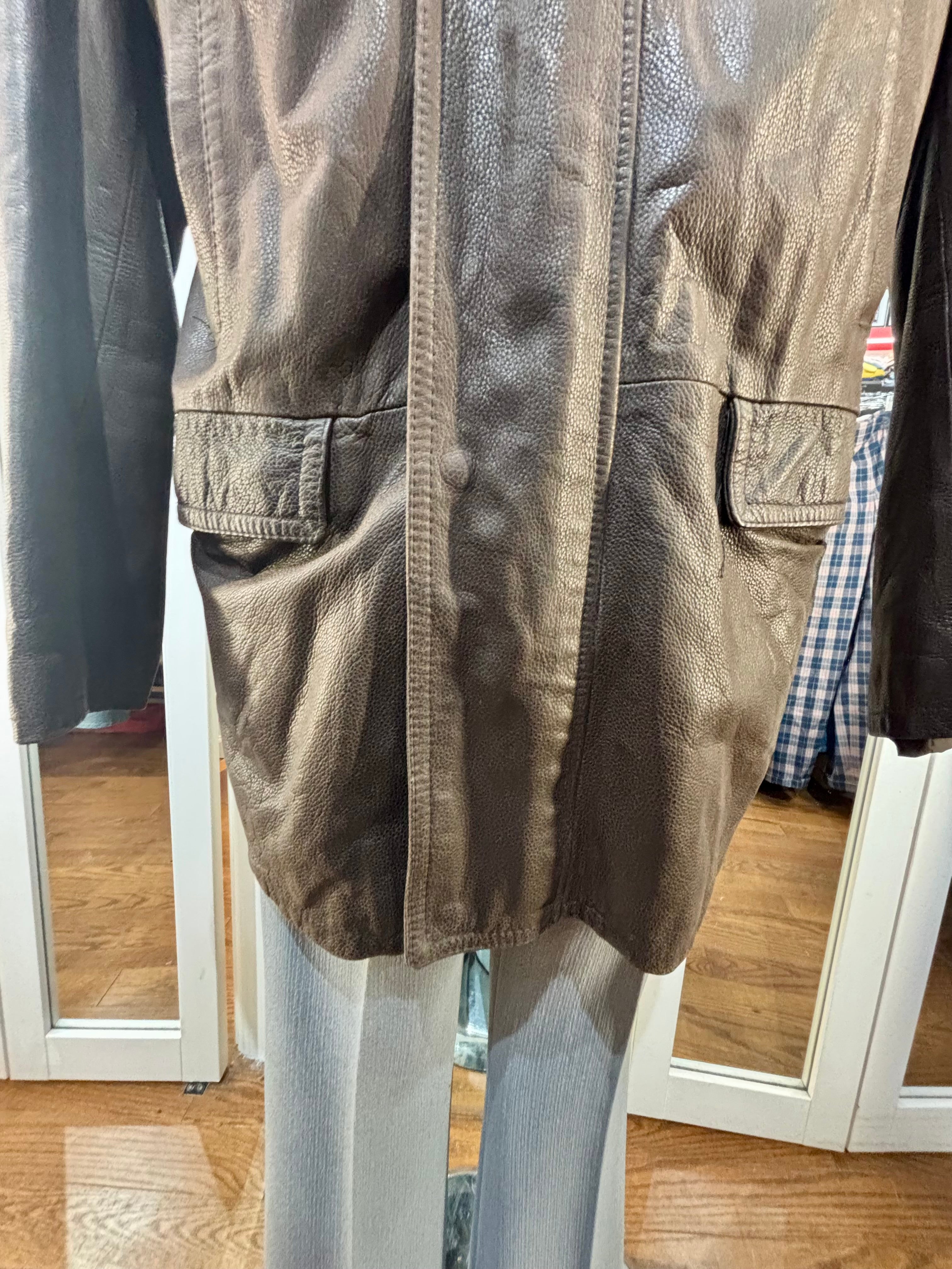 90’s Brown Zipper Removable Hooded 3/4 Coat By Conbipel