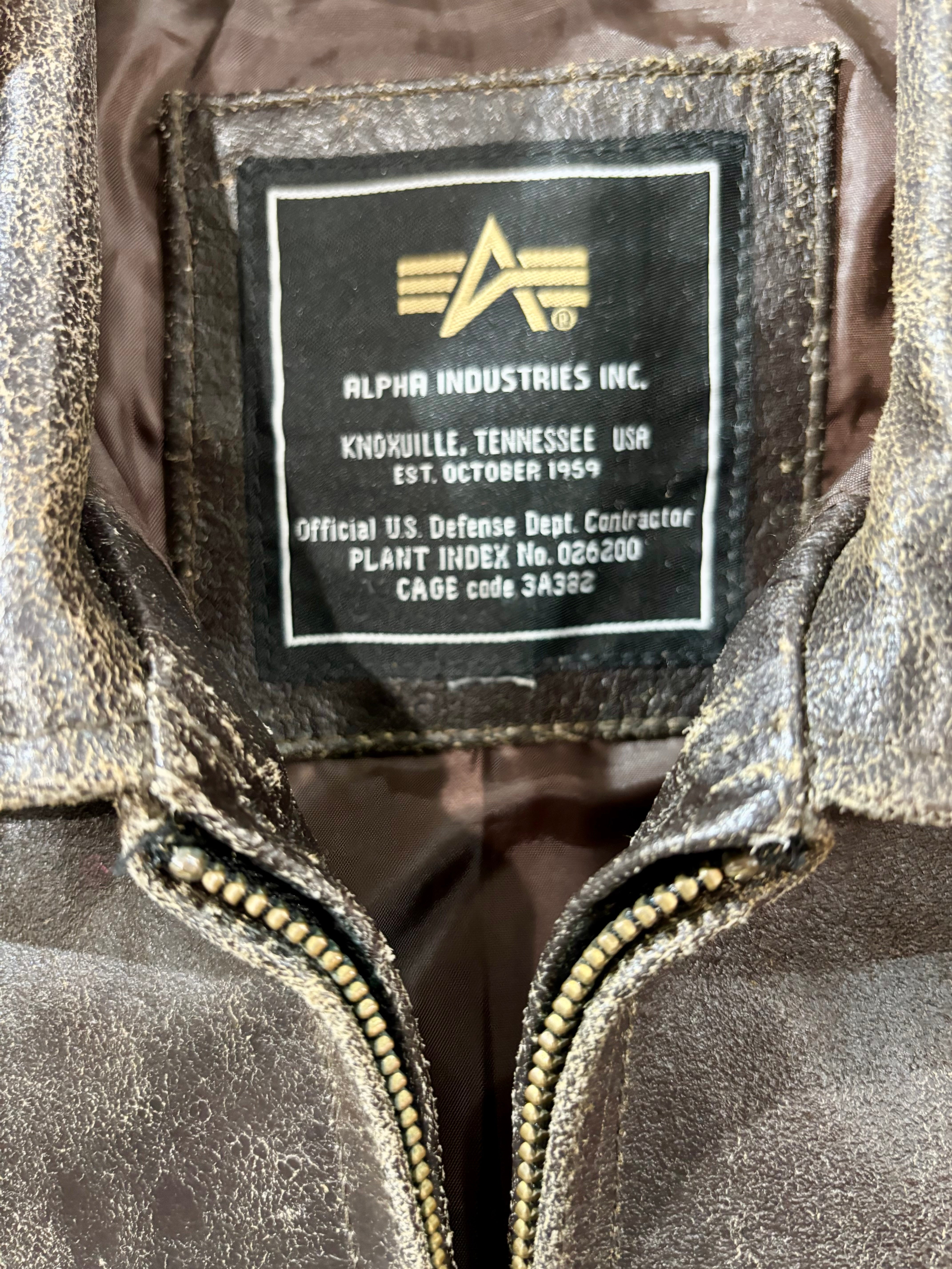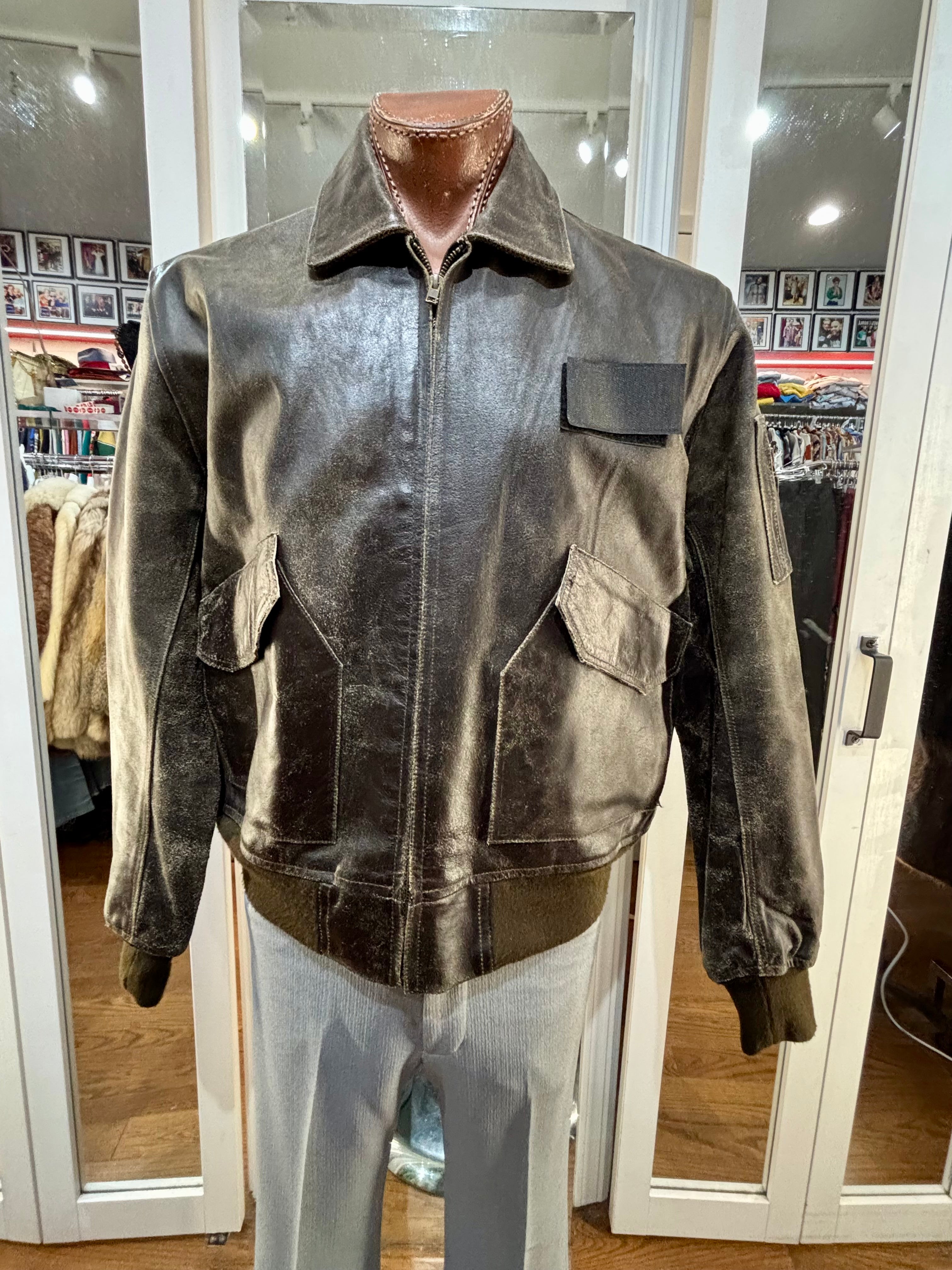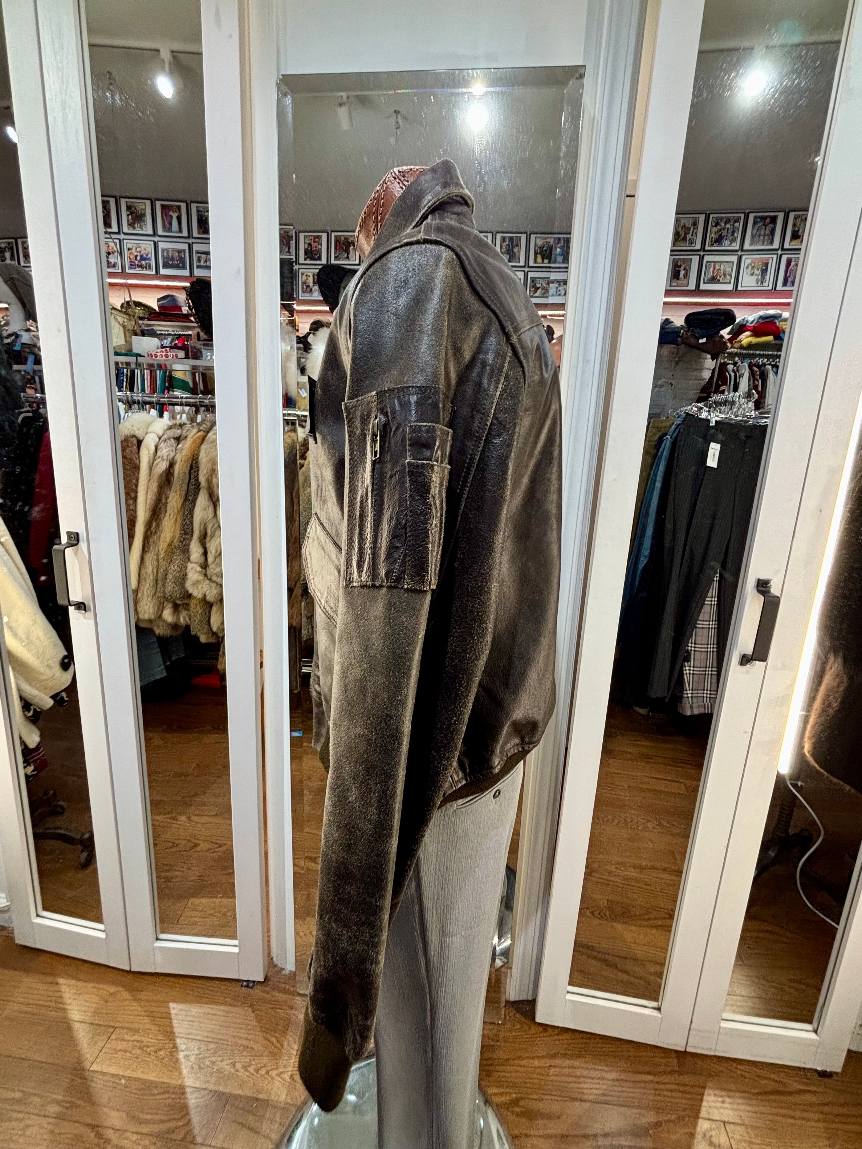 90’s Dark Brown Distressed Bomber Jacket By Alpha Industries Inc