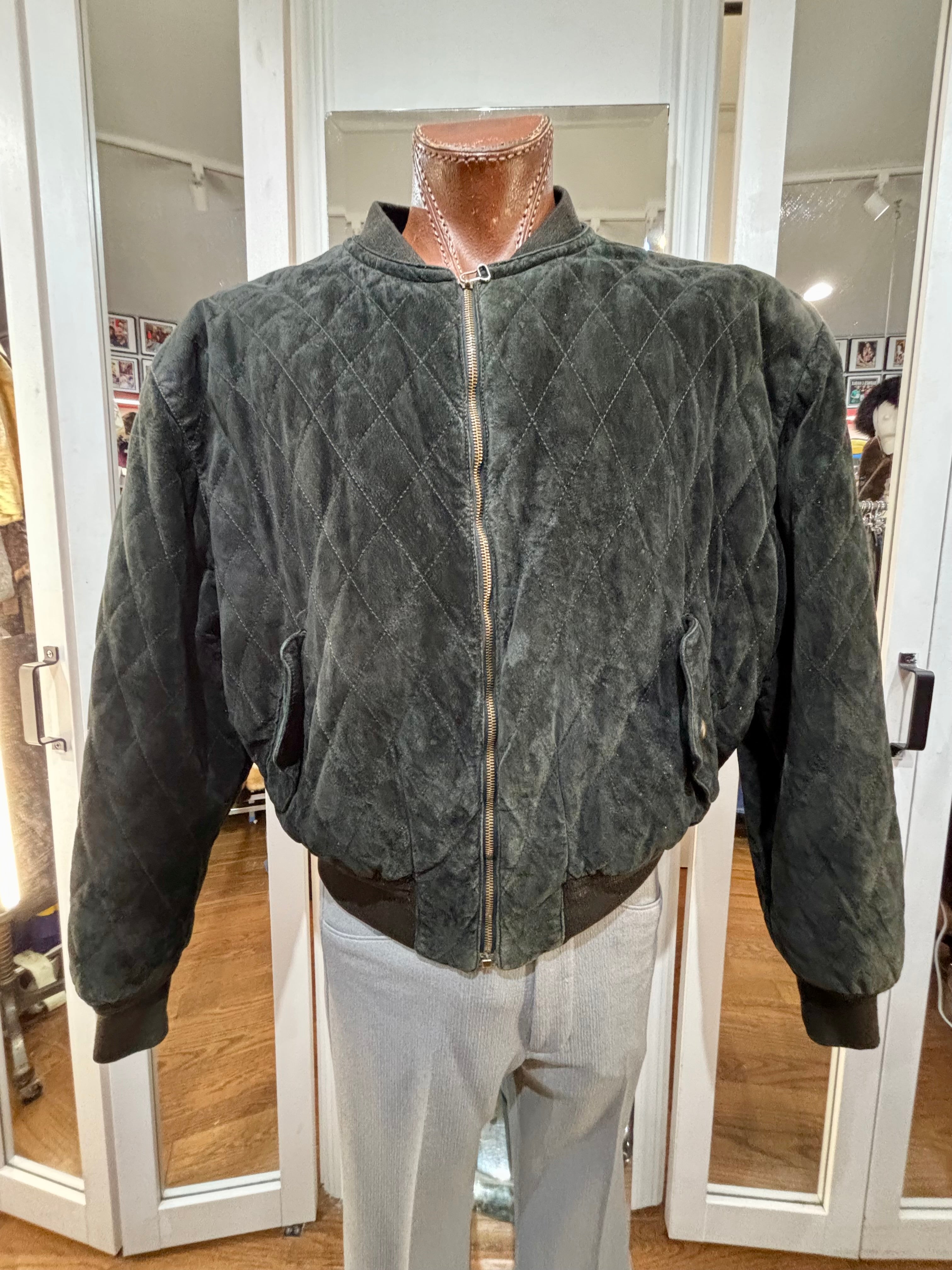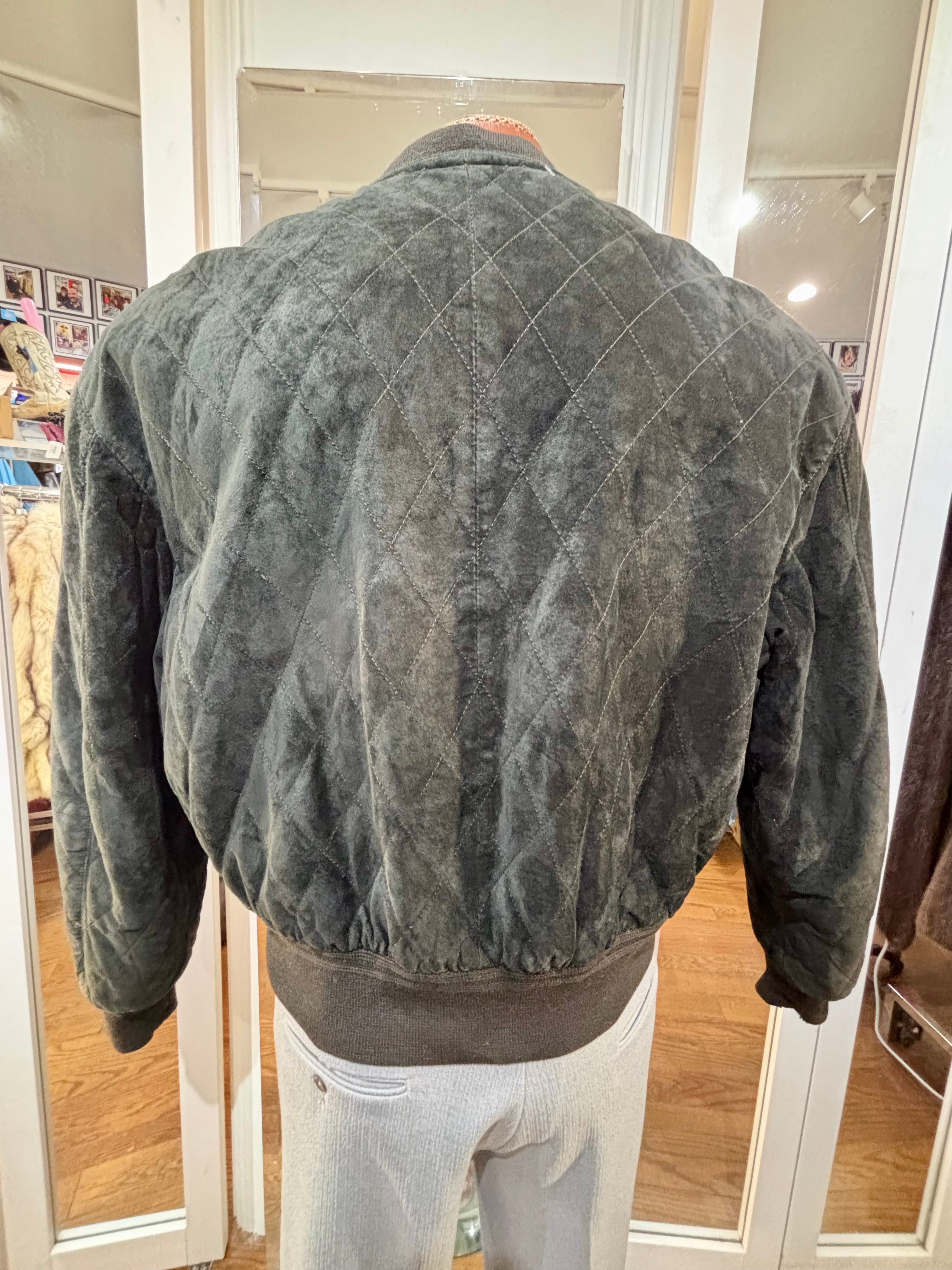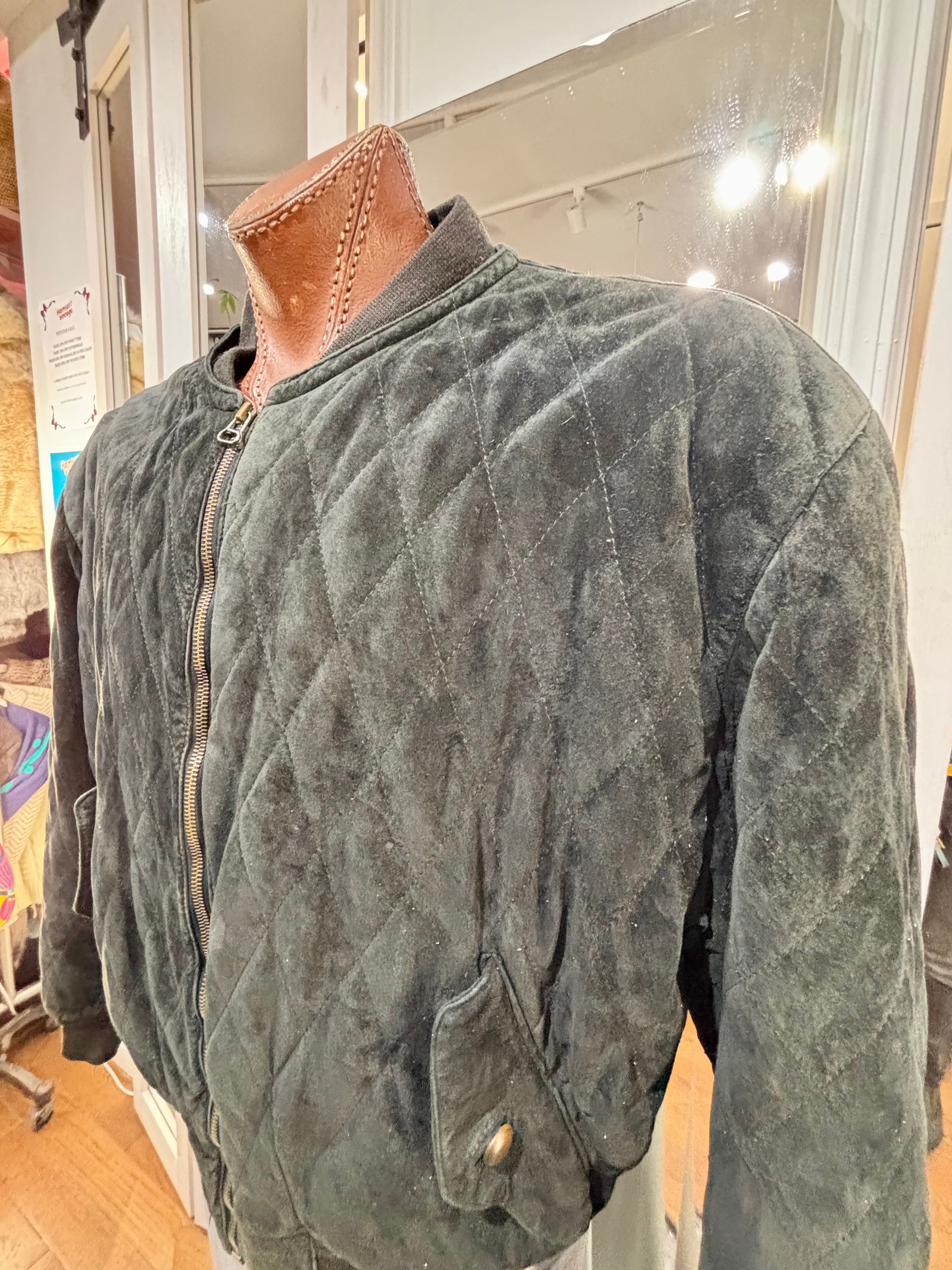 90’s Faded Black Quilted Bomber Suede Zip Jacket