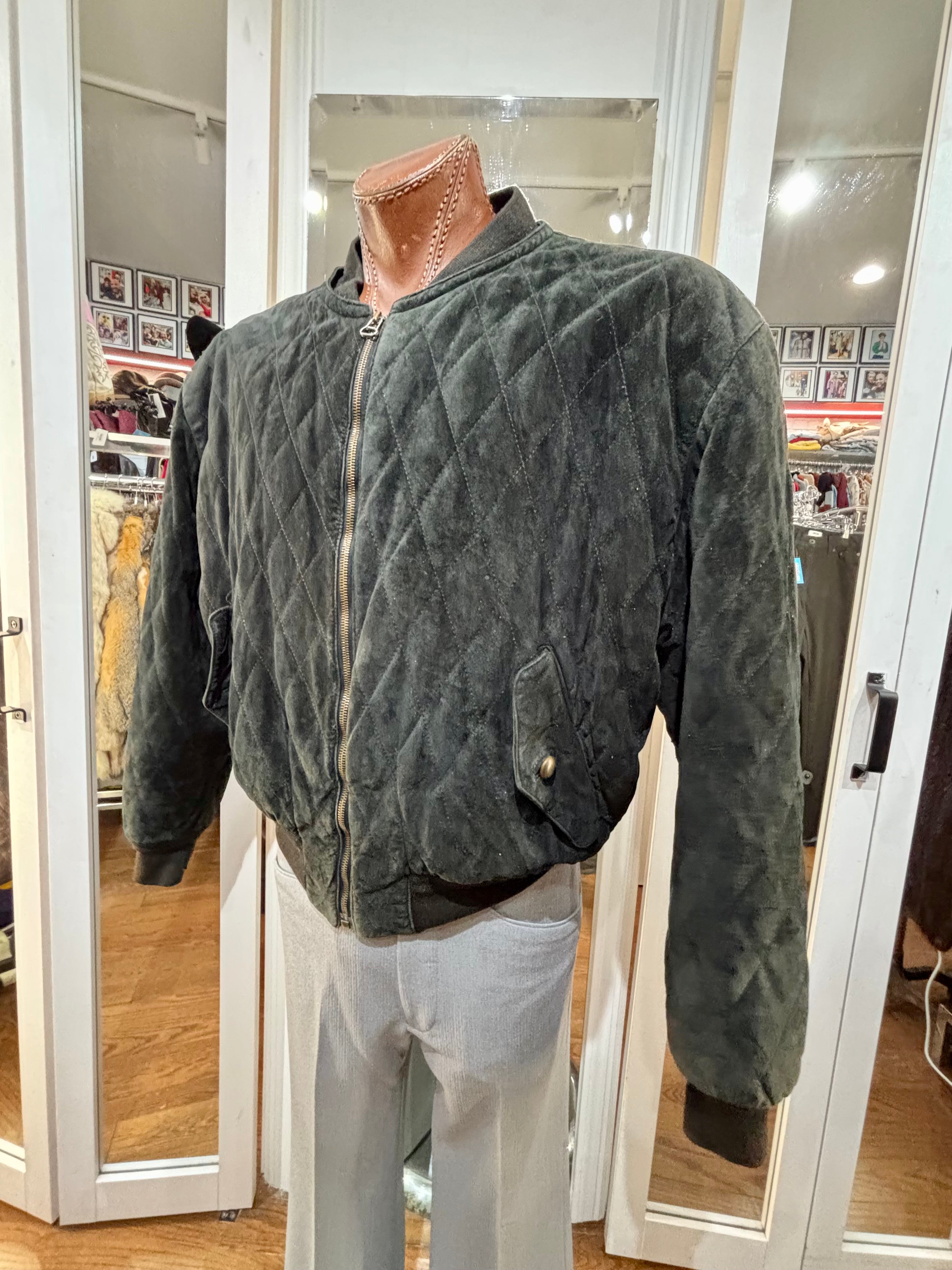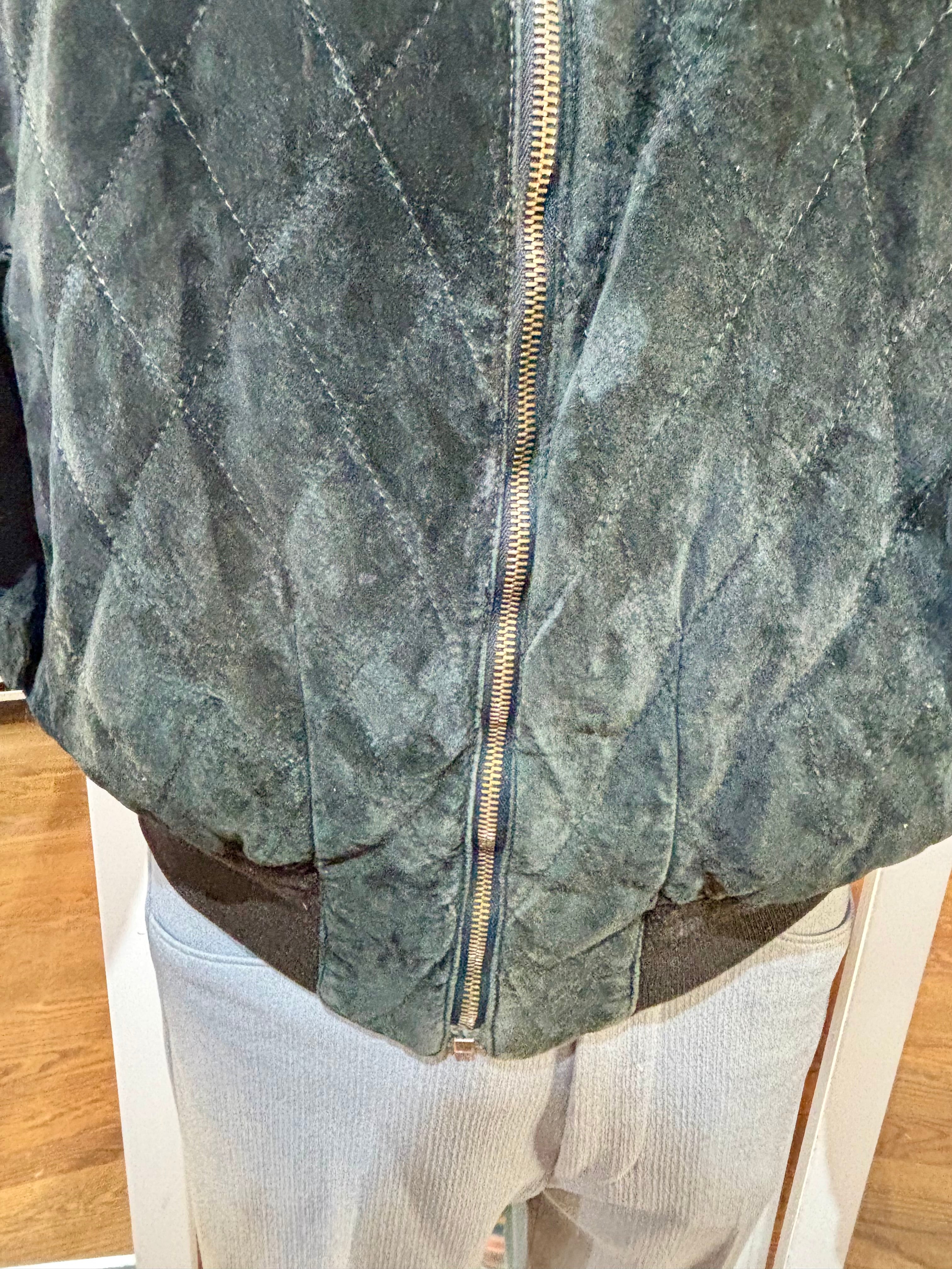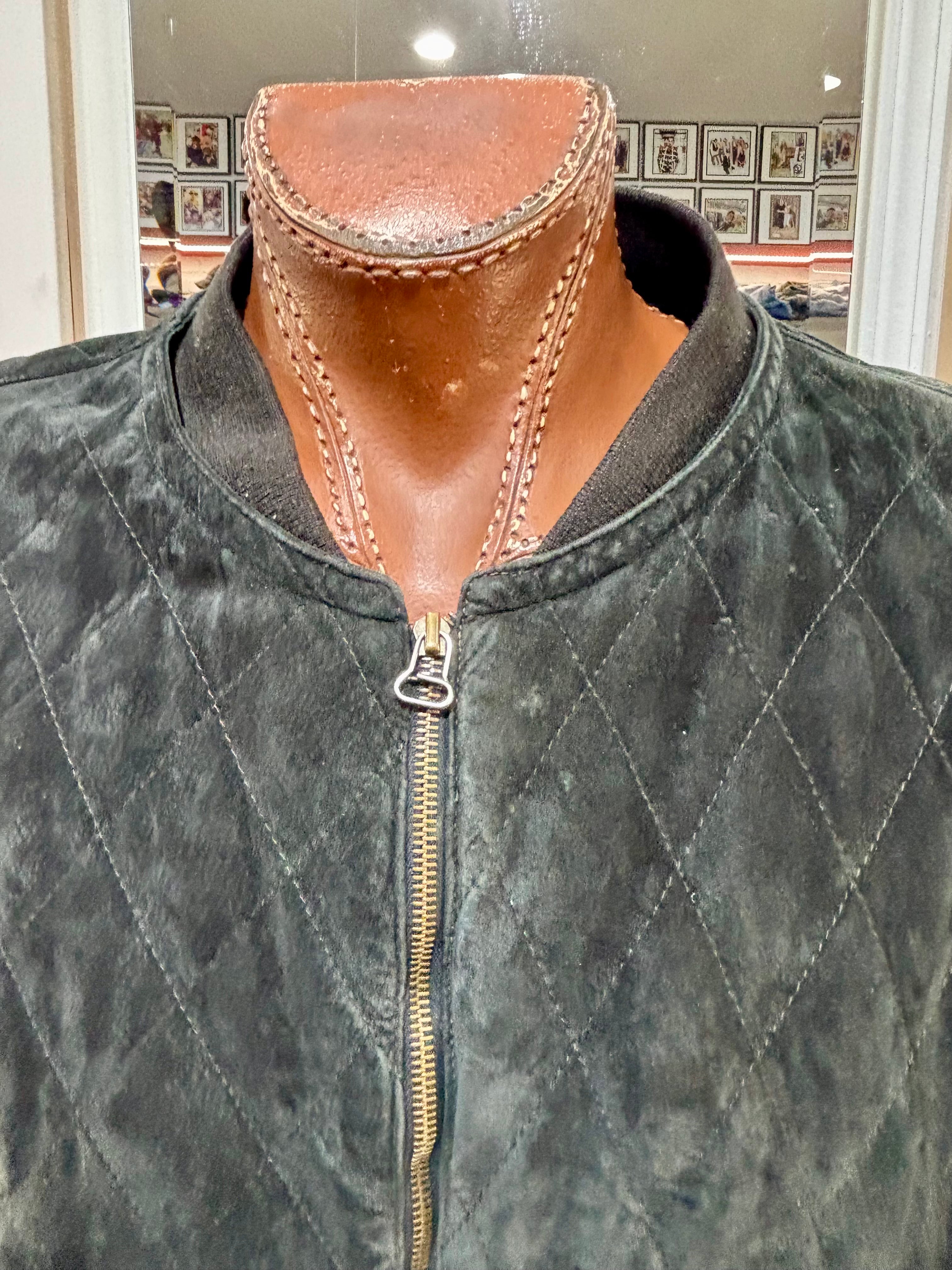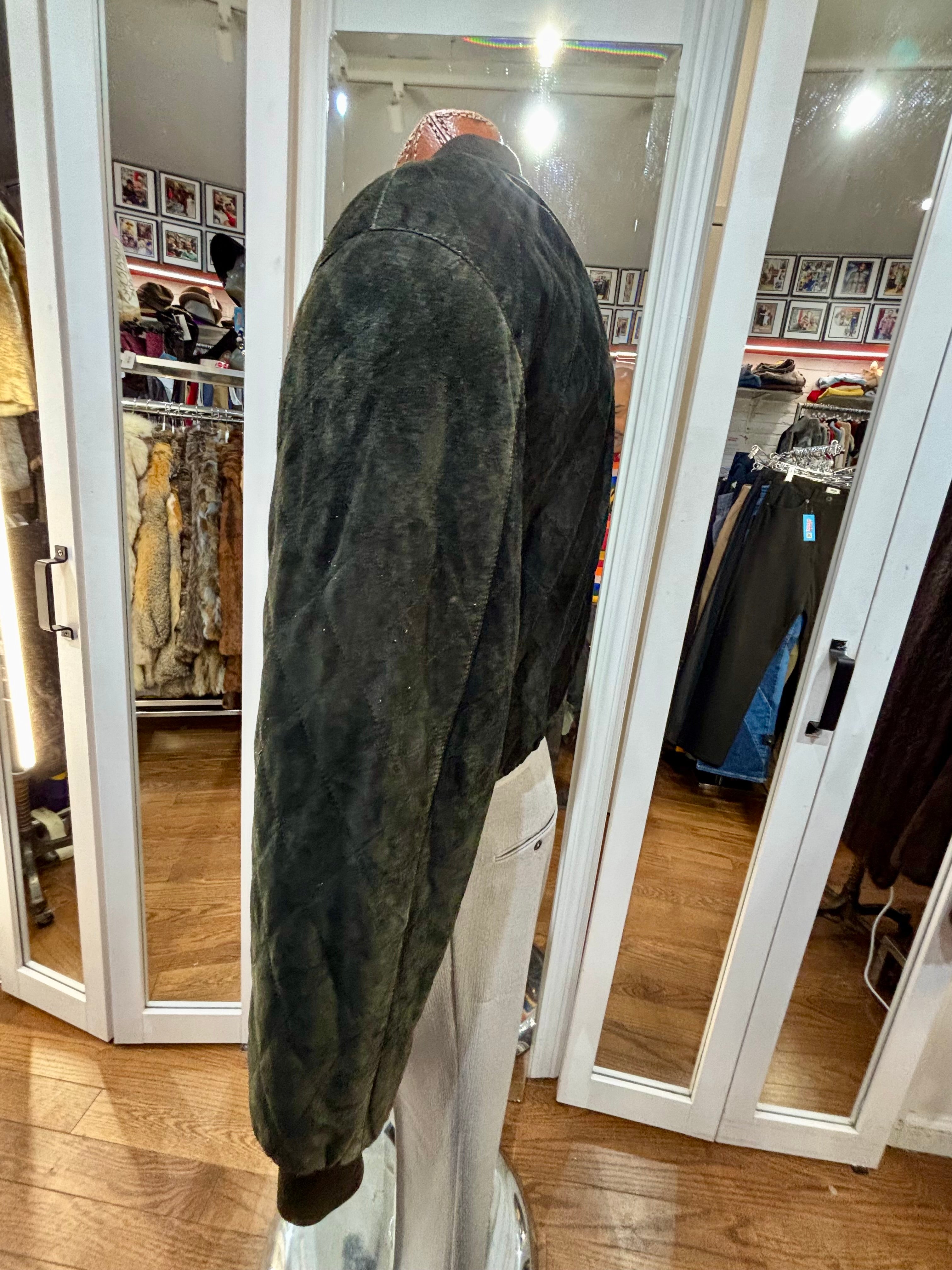 90’s Faded Black Quilted Bomber Suede Zip Jacket